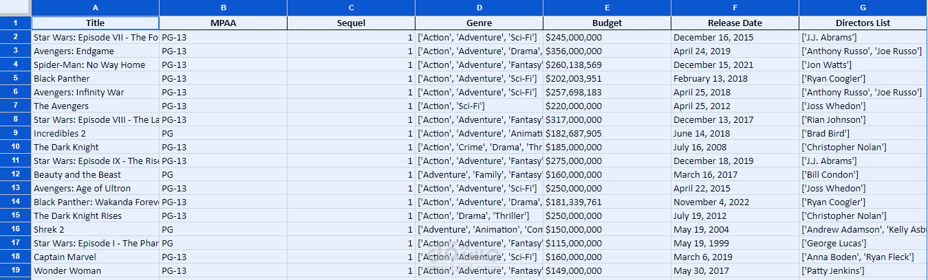 استخرجت قاعدة البيانات بأكملها من موقع BoxOfficeMojo.com.
