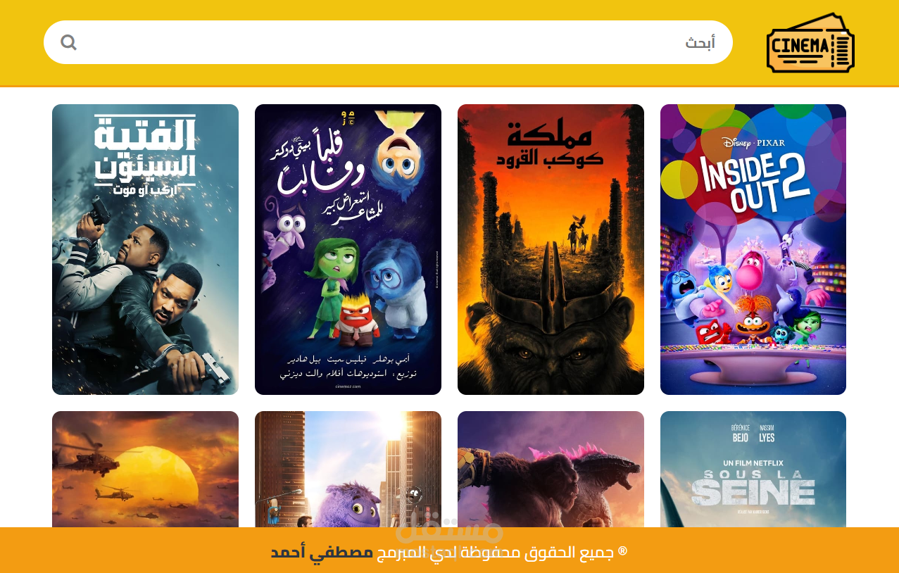 هذا مشروع سينما يستخدم Sass للتصميم و React Js للمنطق وعرض البيانات من API.