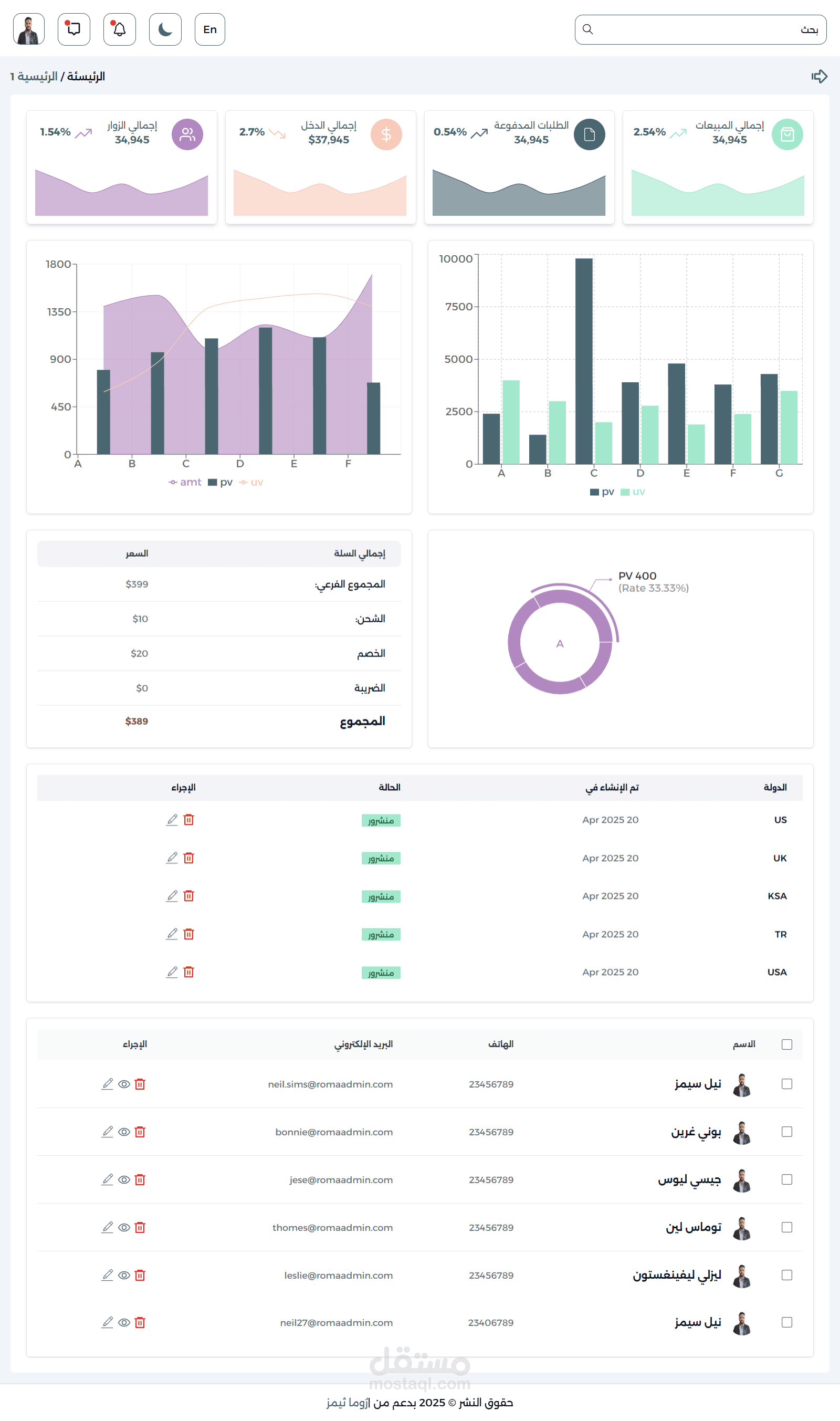 Admin Dashboard by React