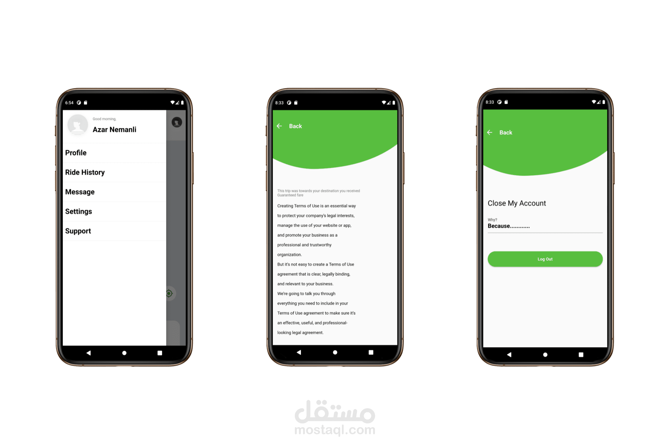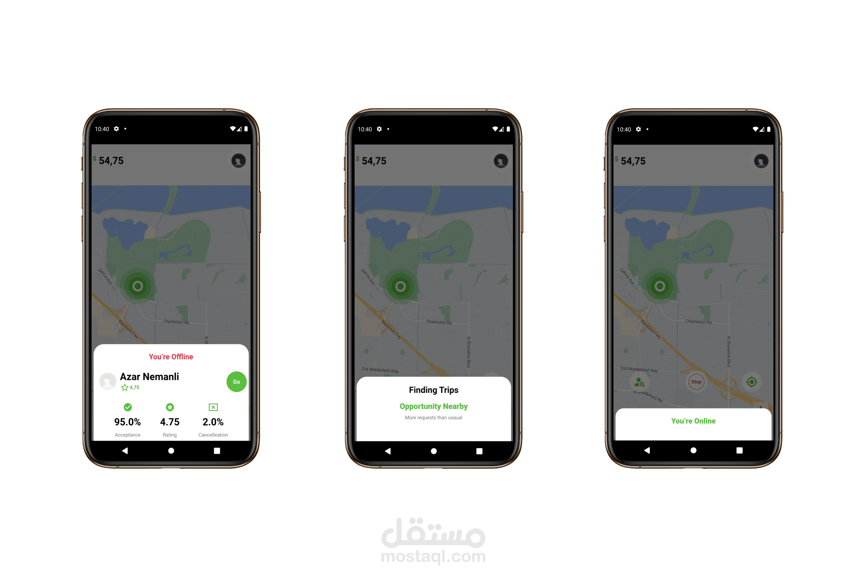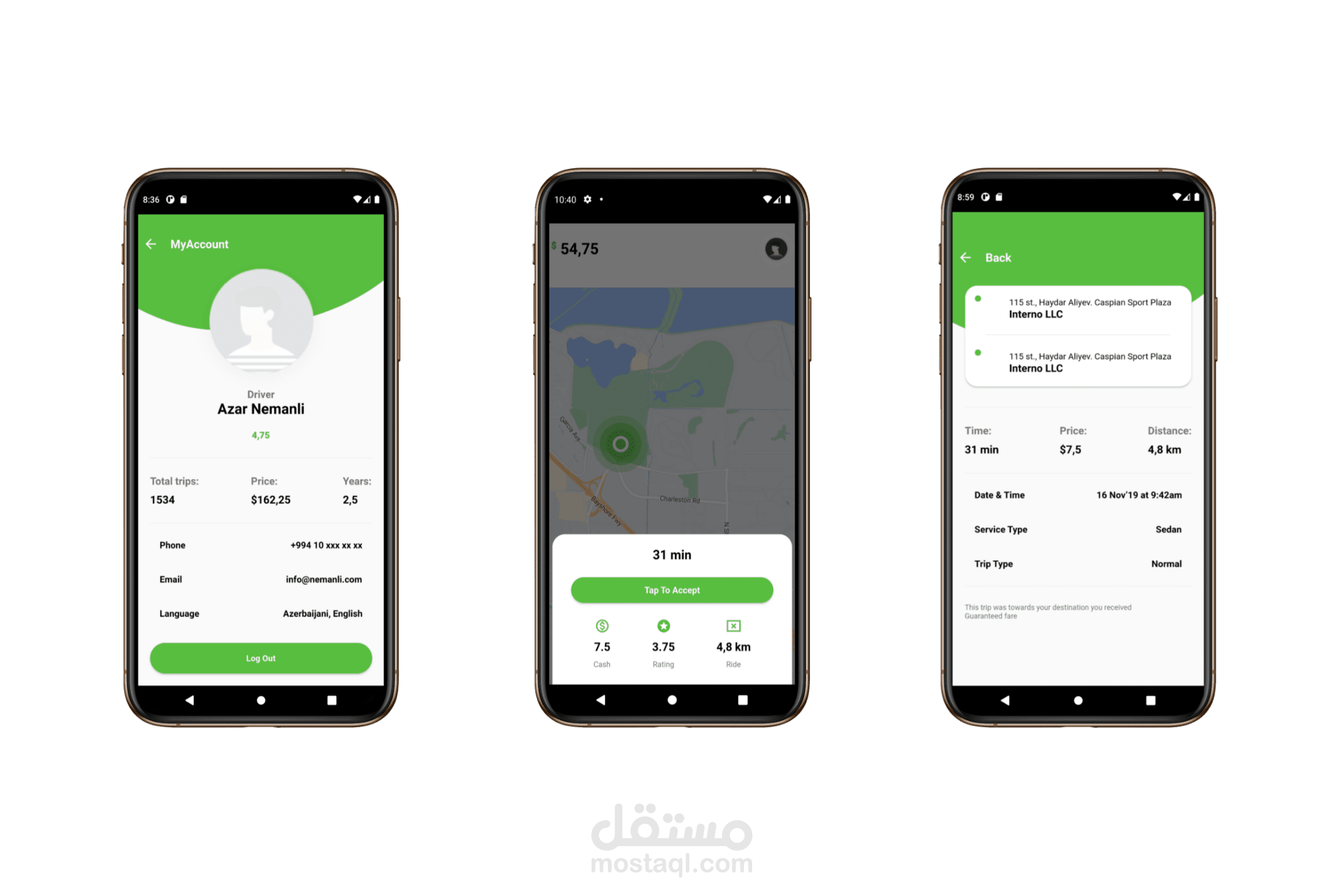 تطبيق موبايل Taxi تم تصميم واجهات التطبيق باستخدام Flutter مع استخدام خرائط غوغل