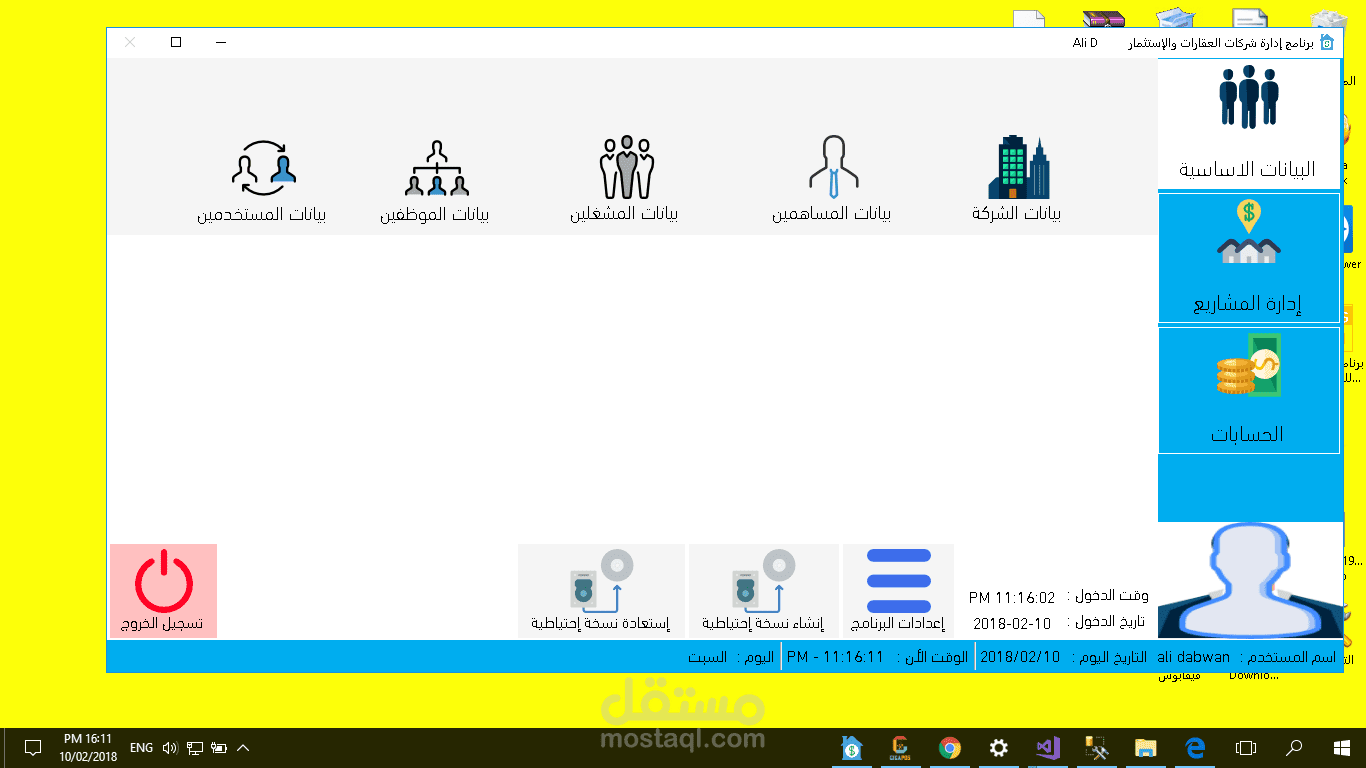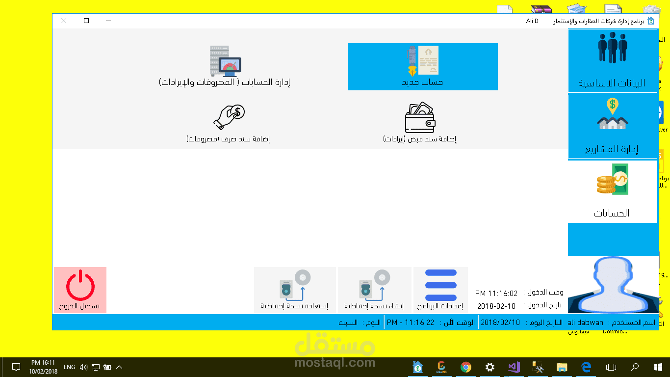 تم برمجته بإستخدام لغة البرمجة c#.net وإستخدام احدث مكتبة رسومات dev componentsواحدث الخطوط المدموجة.