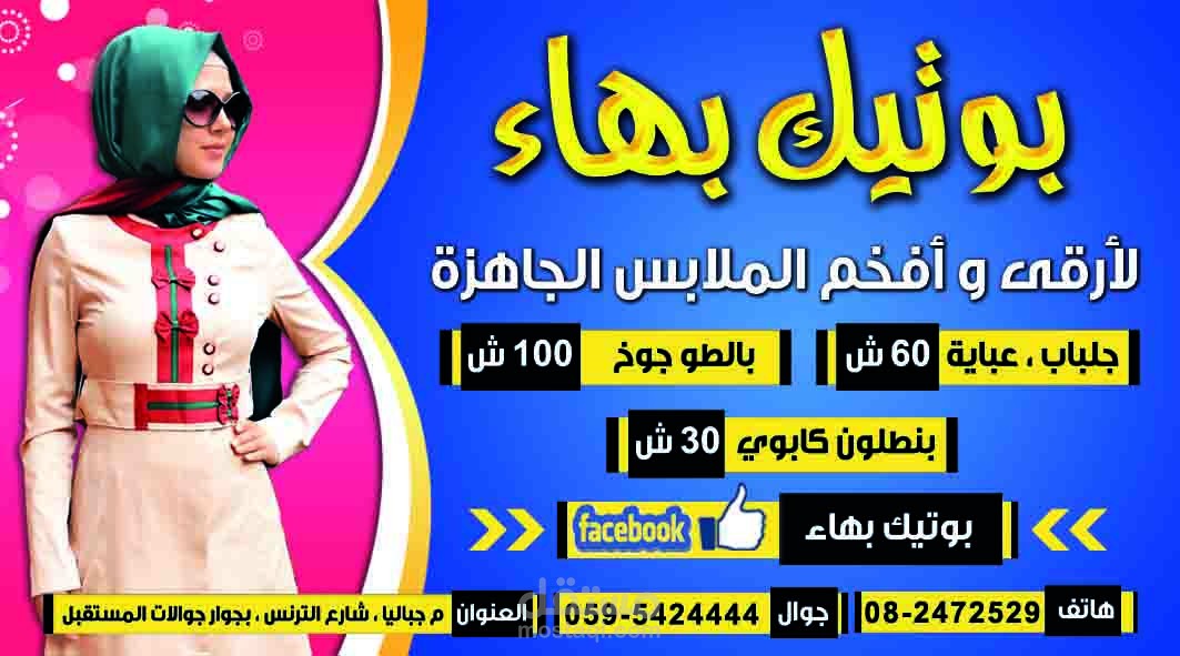 تصميم و طباعة يافطة و كروت فزت و اعلانات محل ملابس بهاء