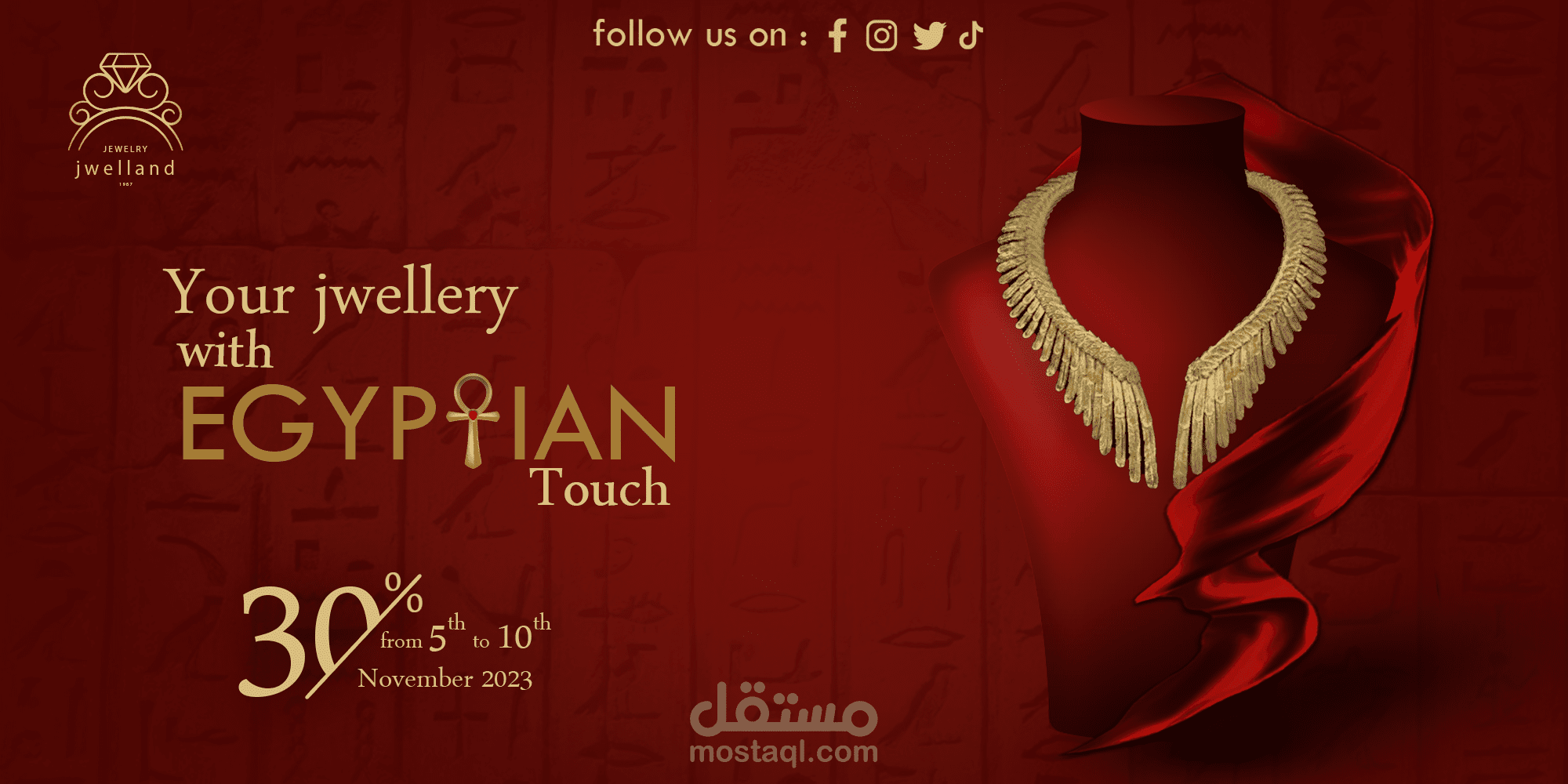 عمل اعلان سوشيال ميديا لمصنع و معرض للمجوهرات للاعلان عن افتتاح مجموعة جديدة من المجوهرات ذات التراث المصري الفرعوني