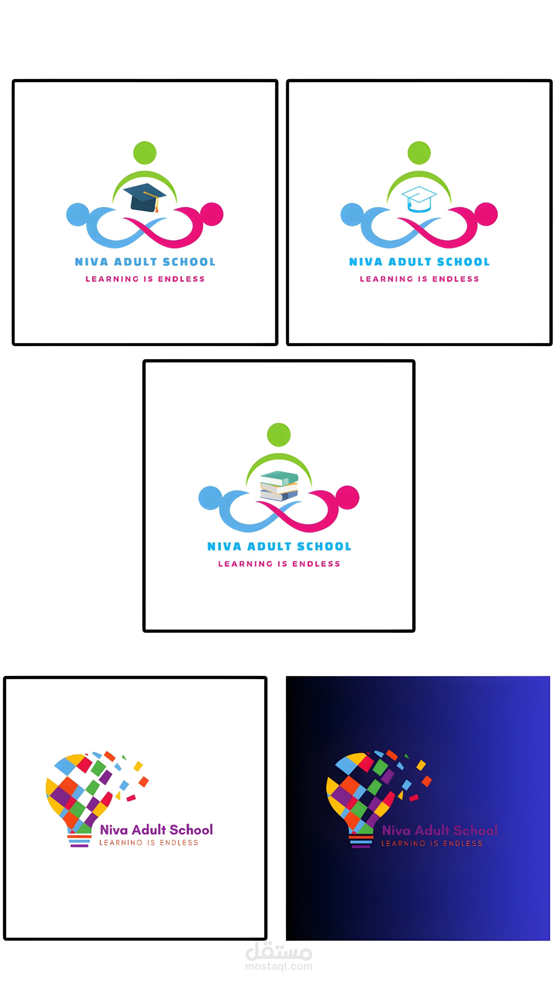 تحتوي الصورة على شعار التعليم من خمسة موديلات من نفس النوع