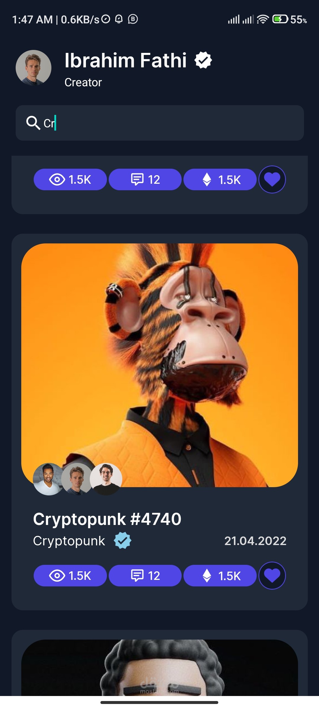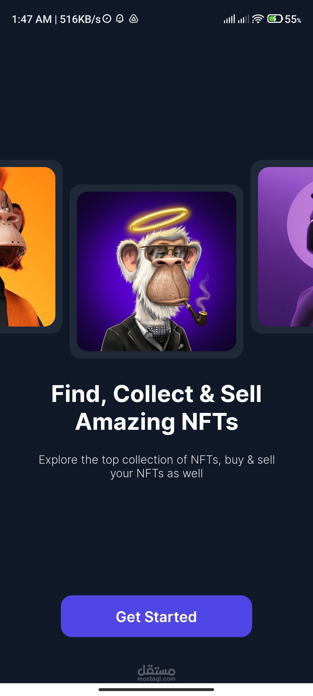 NFT MarketPlace is a Mobile Application Using React Native & Expo & React Navigations and Animations.