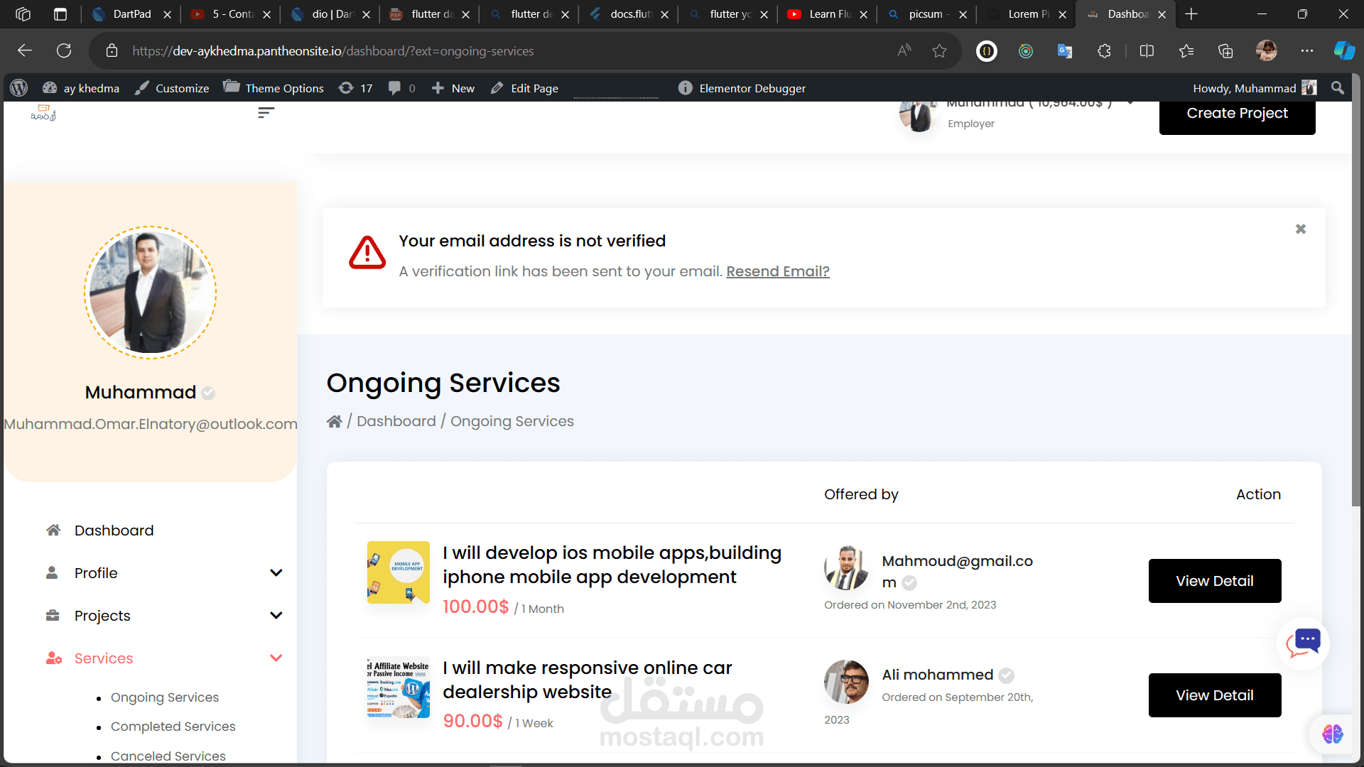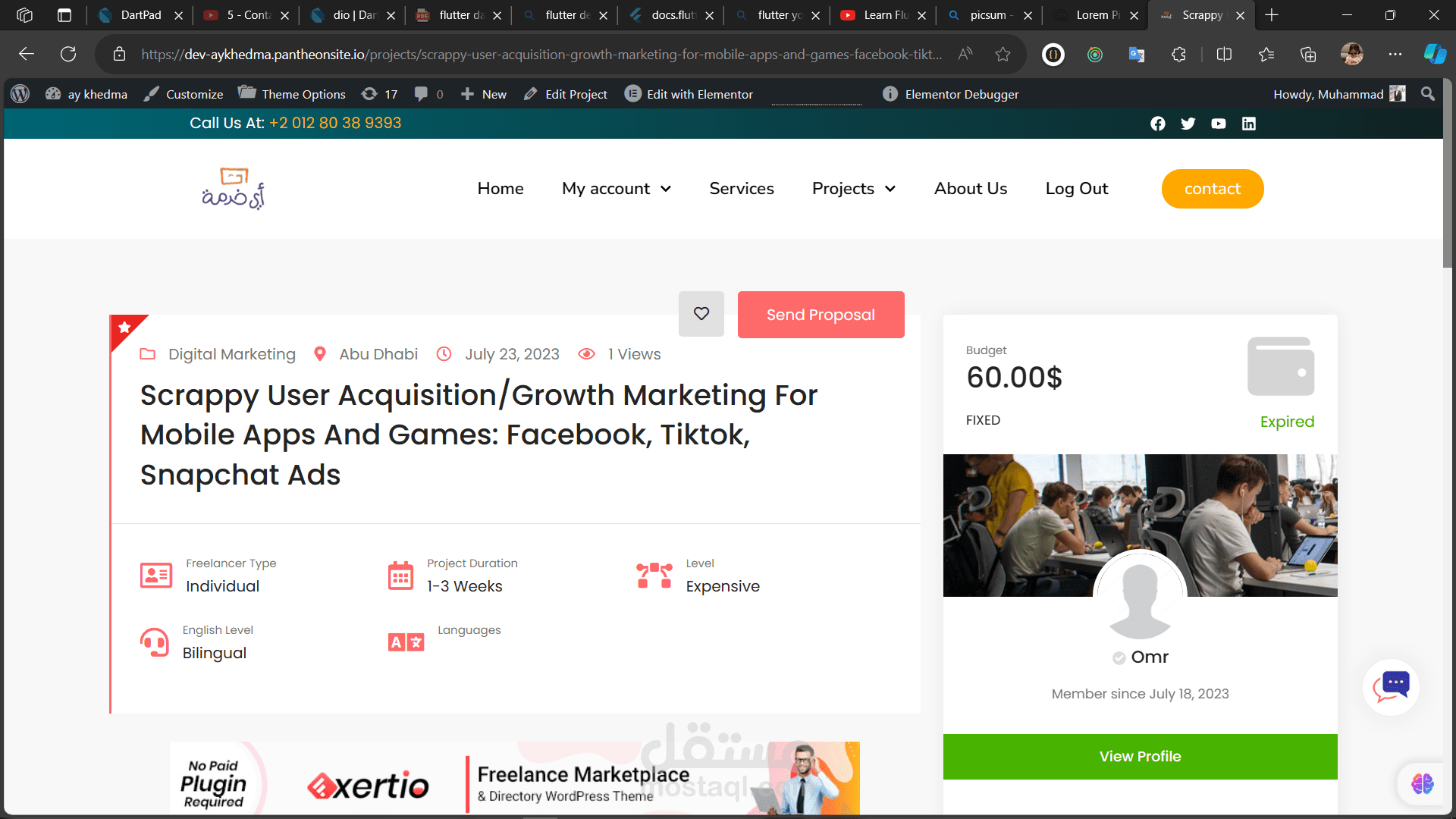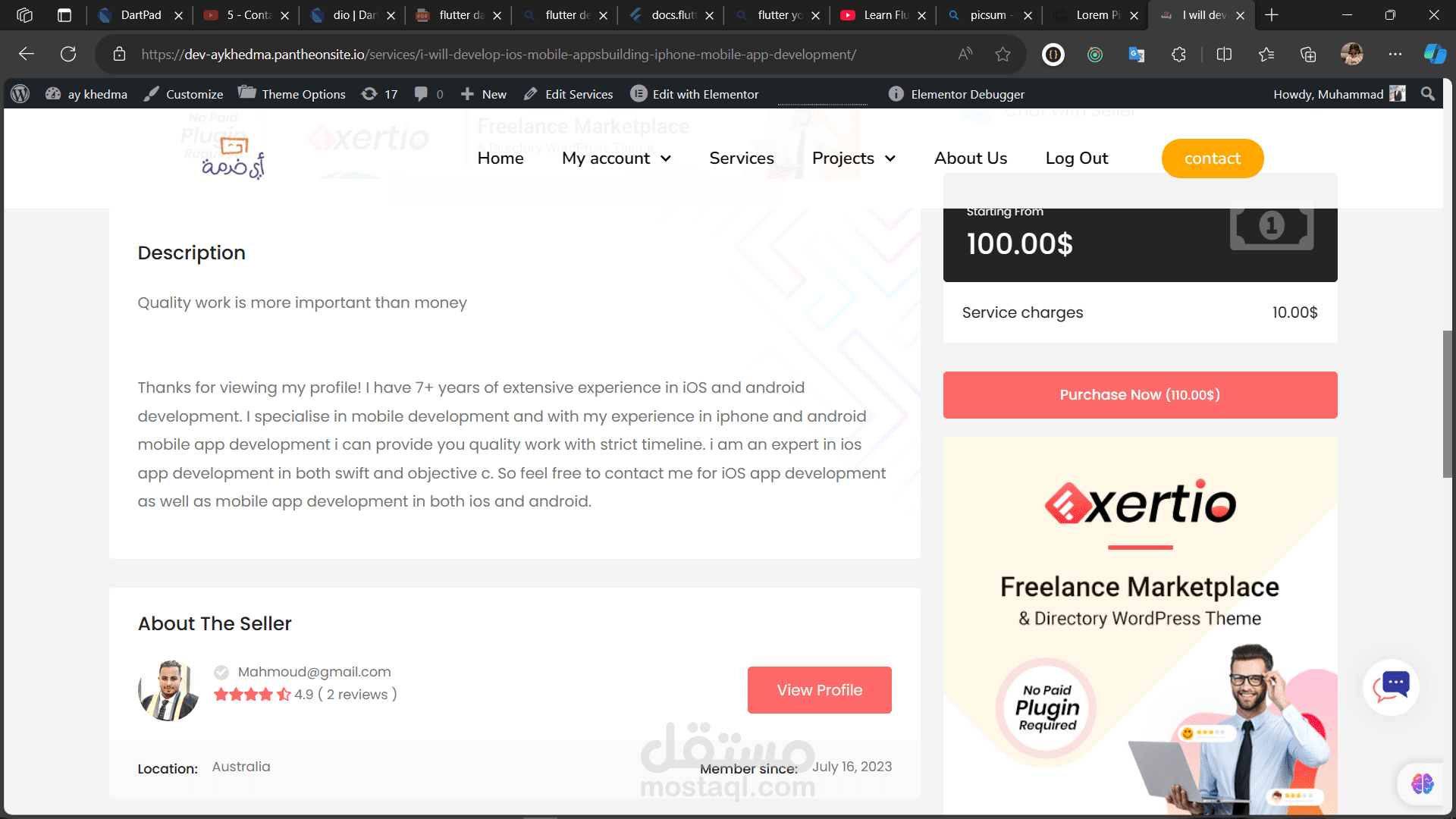 قمت بانشاء موقع مشابه لموقع fiverr بكل ما يحمله الموقع من تفاصيل ووظائف باستخدام wordpress