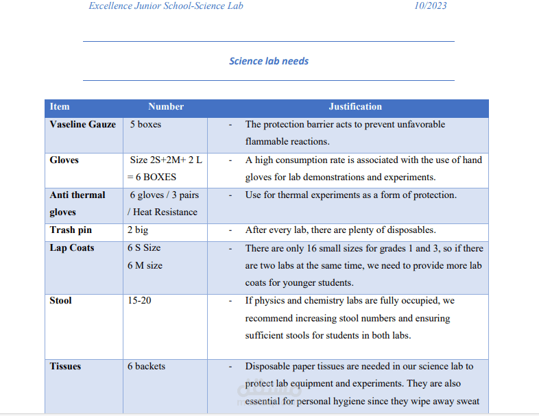 This file was created to be send for the people concerned in order to purchase the requirements in an effective and organized matter.