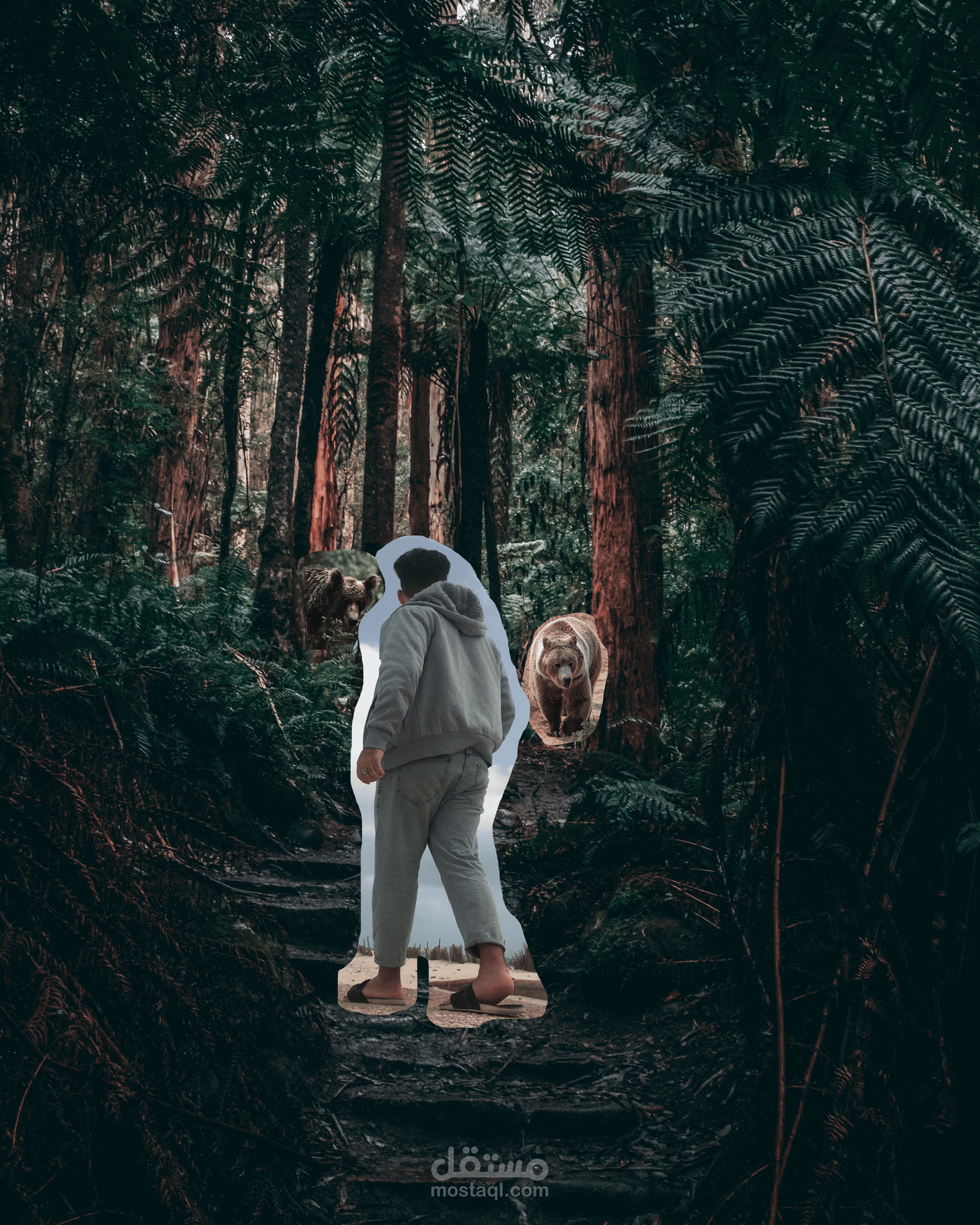 تصميم ابداعي لمعركه بين الصياد والدببه ومحاوله حمايه المعسكر منهم