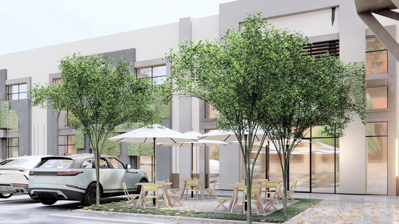 لاند سكيب وجلسات خارجية مع واجهات مول تجاري