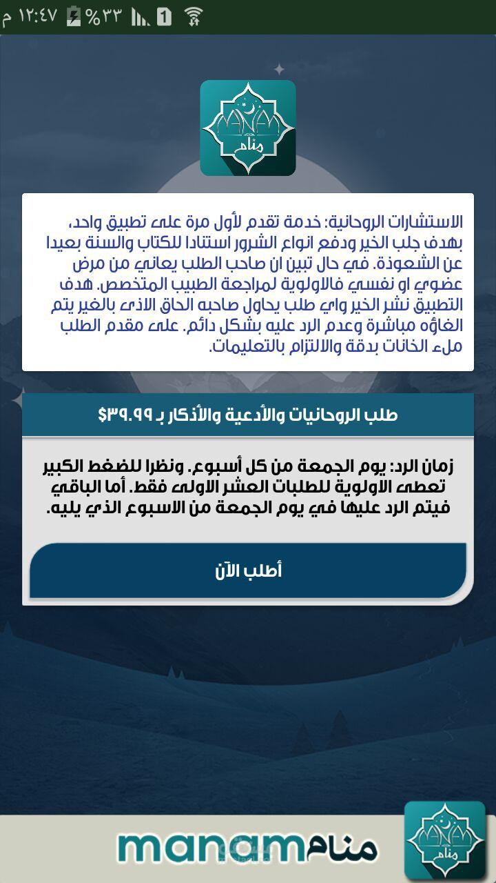 يقوم المستخدم من طلب اما تفسير حلم أو طلب الروحانيات والأدعية اولأذكار