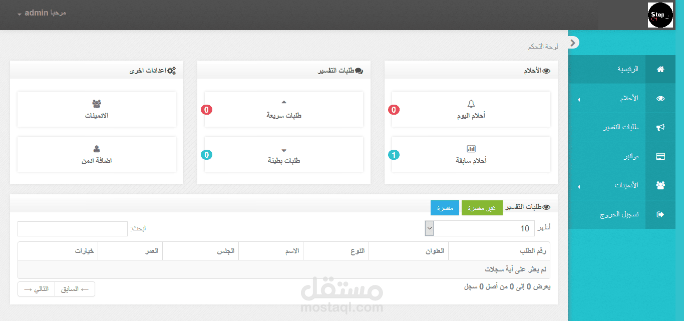 يرسل المستخدم الحلم المراد تفسيره بعد القيام بعملية الدفع وملئ جميع الحقول المطلوبة ، فيصل اشعار فوراً لمدير التطبيق على لوحة التحكم تمكن المدير من متابعة عملية الدفع وتفاصيل المستخدم الطالب للتفسير ويمكن للمدير الرد عليه ويصل حي الرد إشعار للمستخدم على التطبيق ويصبح هذا الرد ظاهراً لجميع المستخدمين.