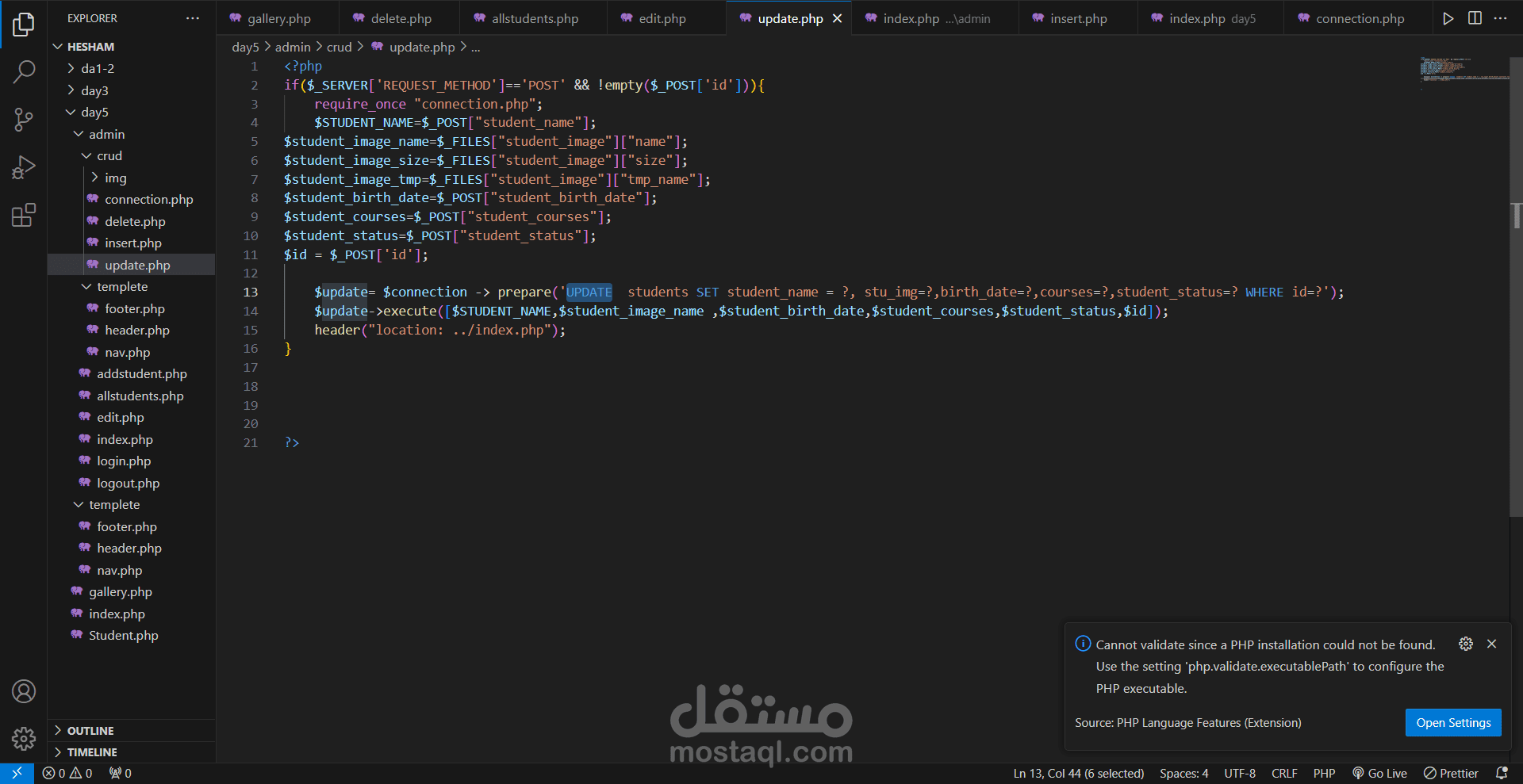 موقع يتيح للادمن اضافة طالب او اكثر بكل تفاصيلة ويتيح للطلبة الدخول لمعرفة تفاصيل كل طالب تم استخدام mysql db and php and html and bootstrap and dynamic implementation for crud operation
