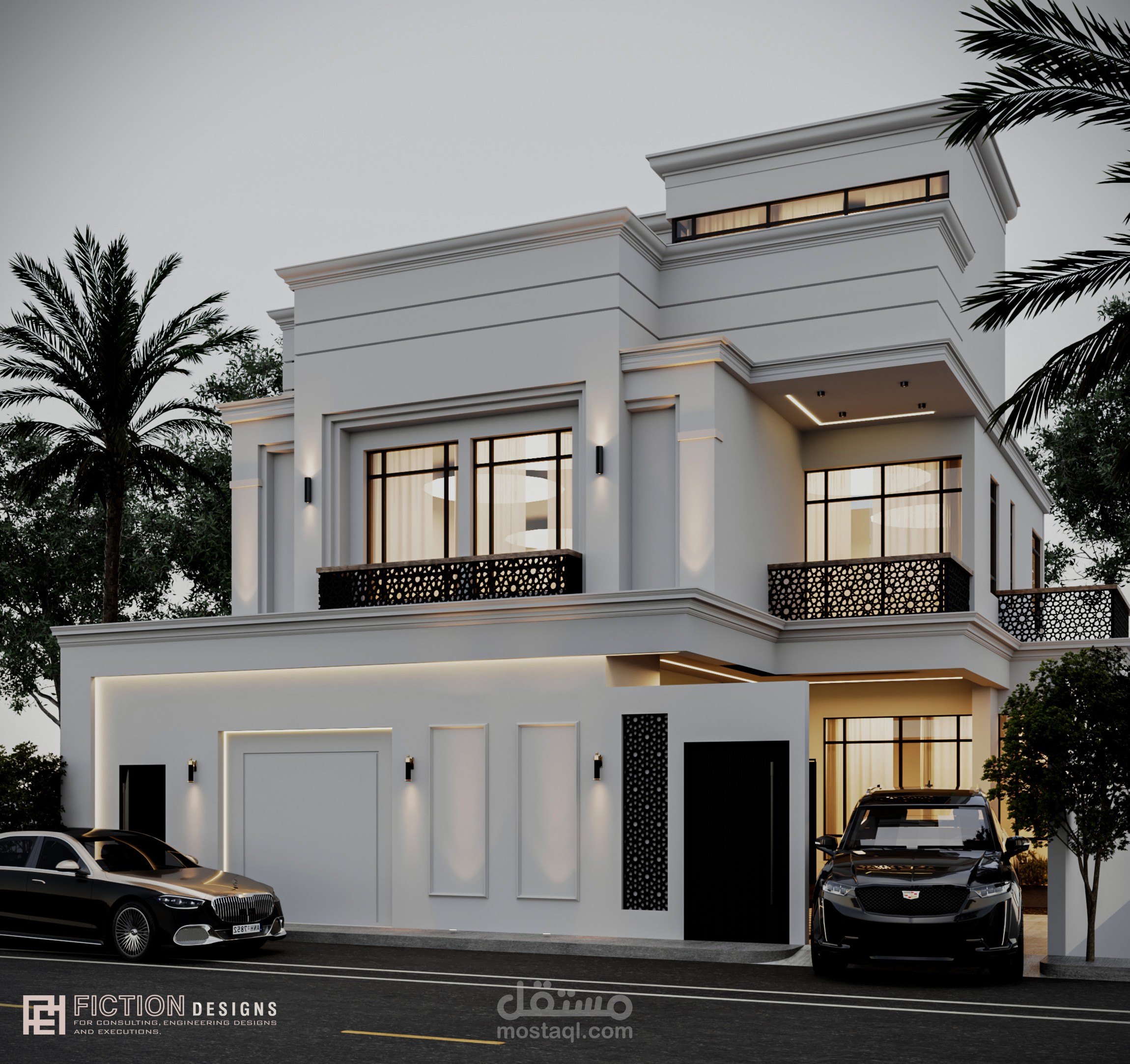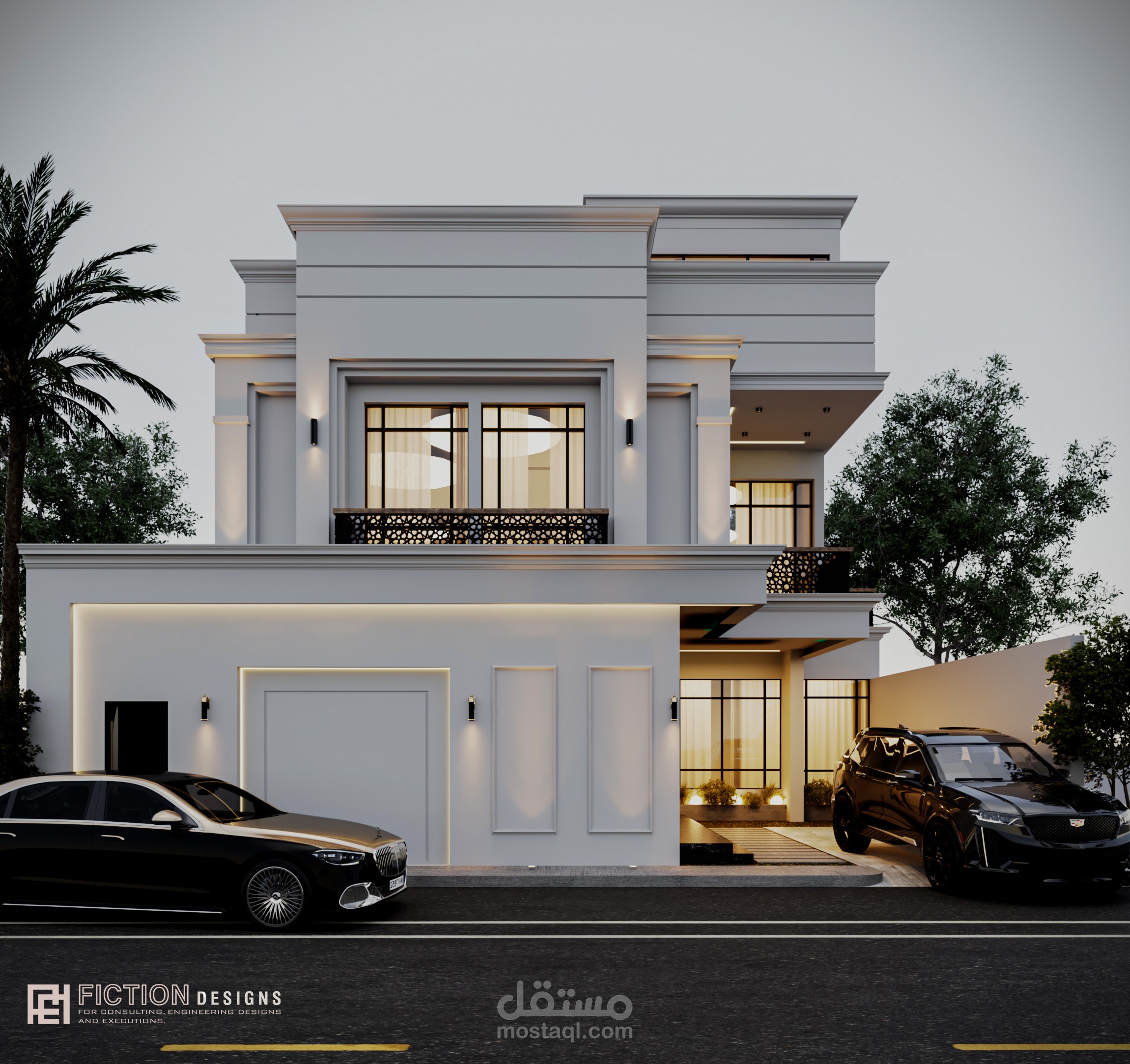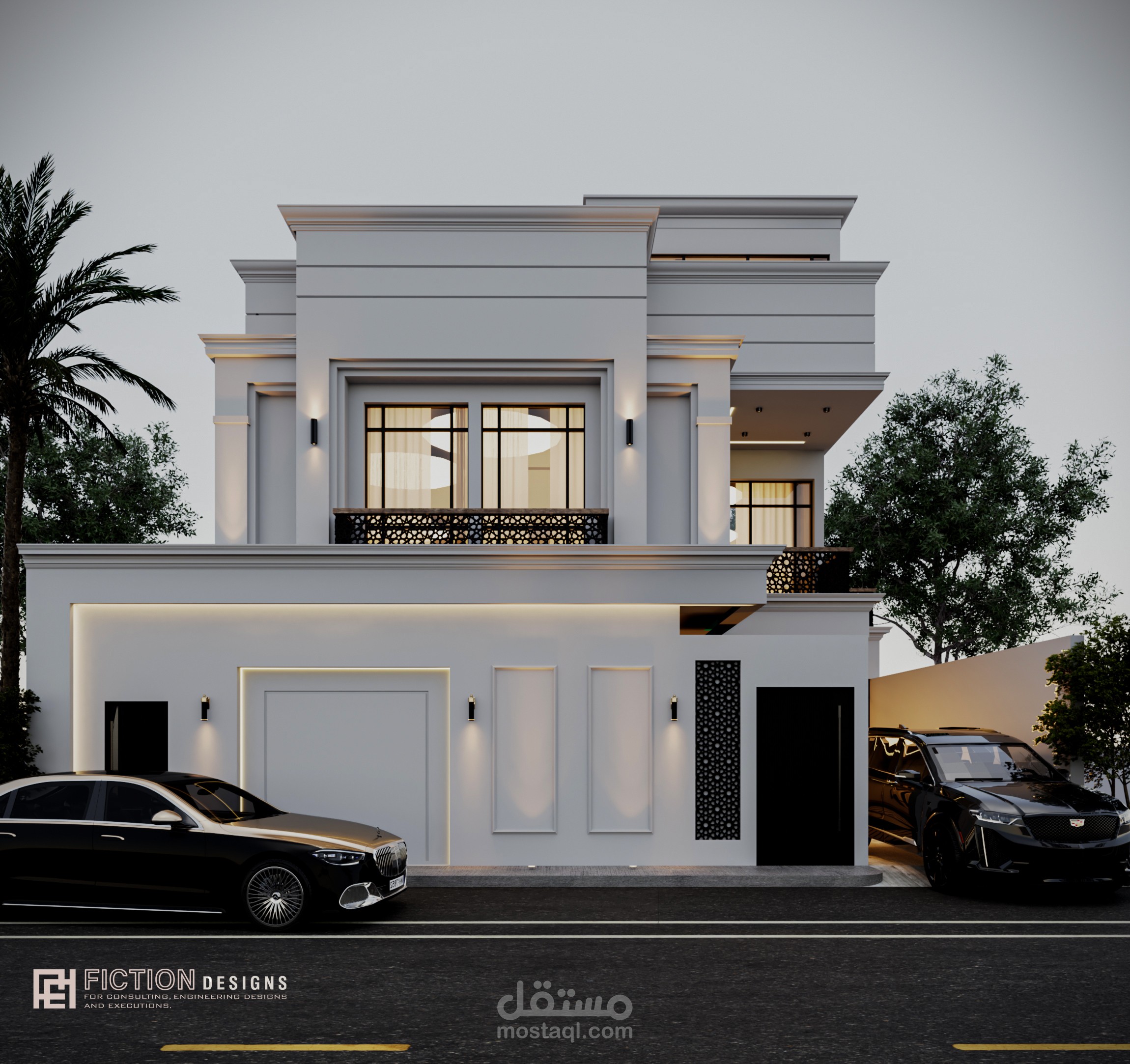 تصميم واجهة فيلا نيو كلاسيك في السعودية