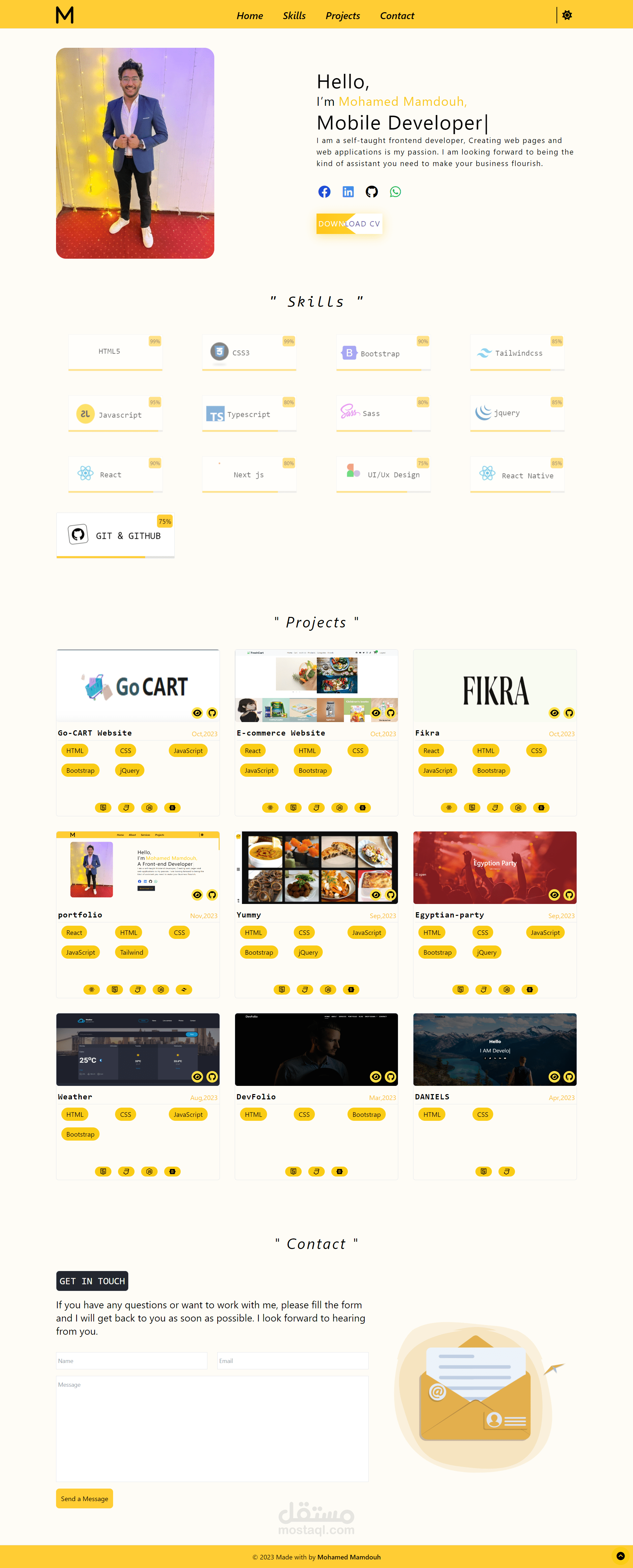 موقع شخصي تعريفي لعرض المهارات والمشاريع