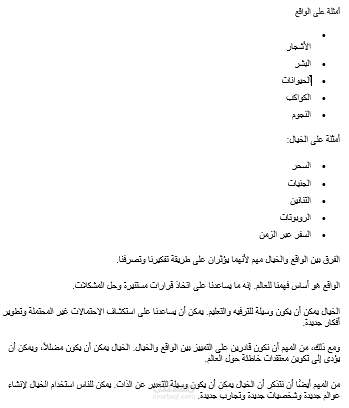 الواقع يمكن التحقق منه، بينما الخيال لا يمكن التحقق منه.