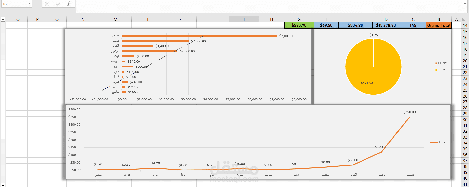 -Dashboard sheet: contains detailed statistics on the portfolio and charts displaying the key figures for the investment.
