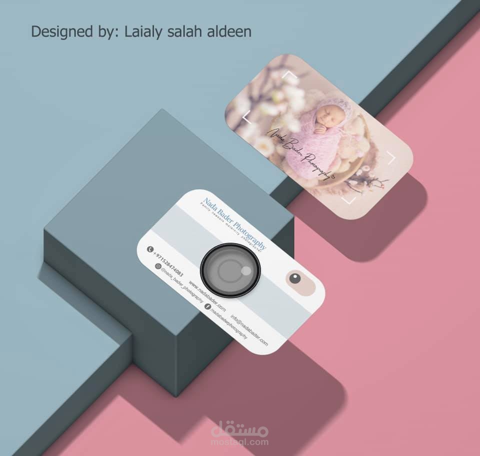تم تصميم هذا الكرت بكل حب لأشهر مصورة أطفال في دبي.. باستخدام ألوان ناعمة مدروسة تبعًا لدلالة الألوان، في علم سايكولوجيا اللون.
