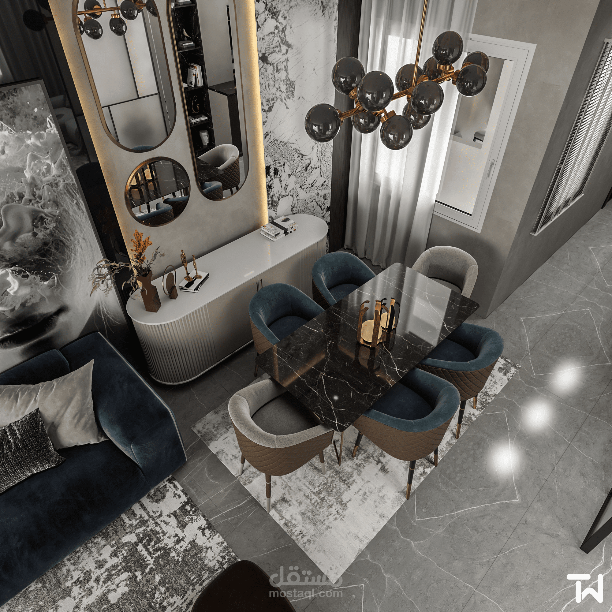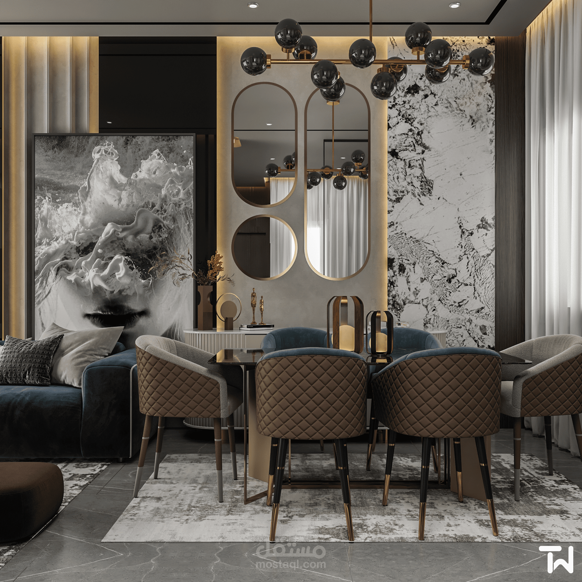 Living Room with Dining Space Design