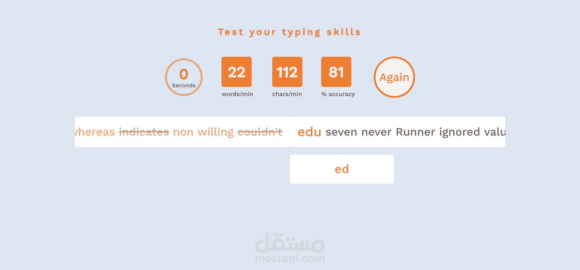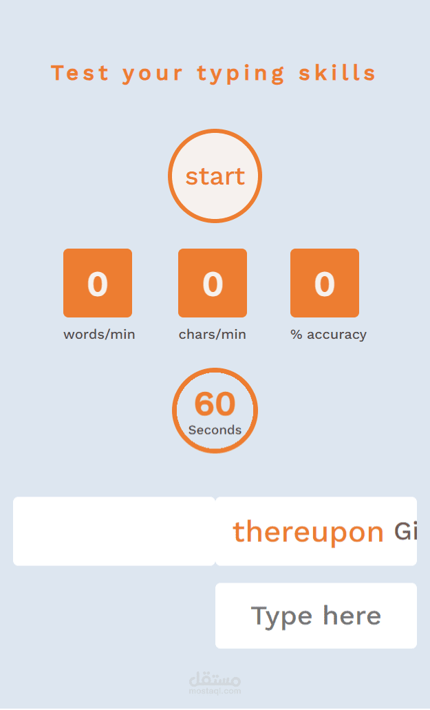عمل تصميم أحترافي لأختبار سرعة الكتابة يفتح علي كل الشاشات ( موبايل - تابلت - لاب توب - شاشات أكبر ) باستخدام :