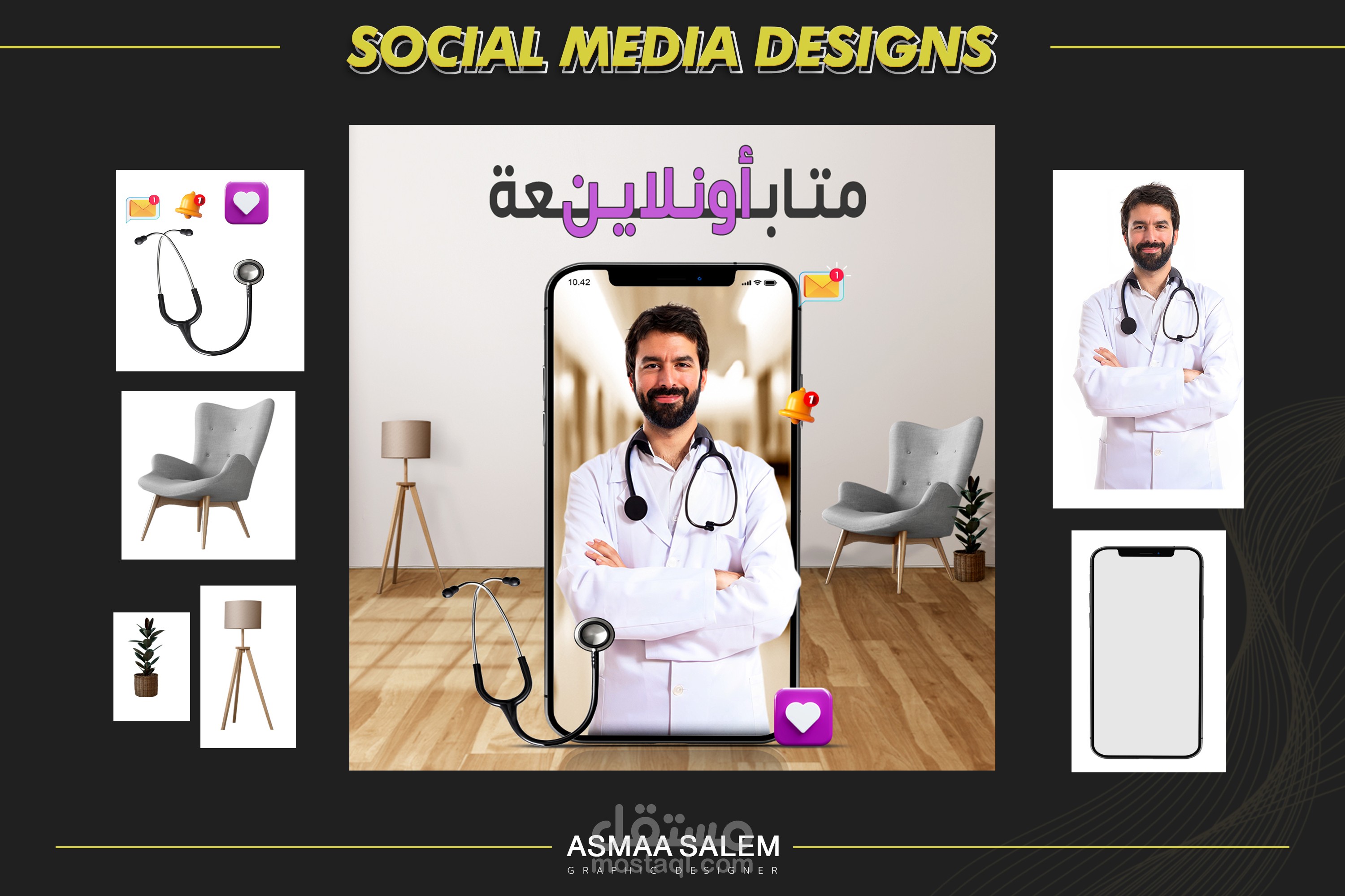 بورتفوليو لمجموعة من تصميمات السوشيال ميديا والمطبوعات