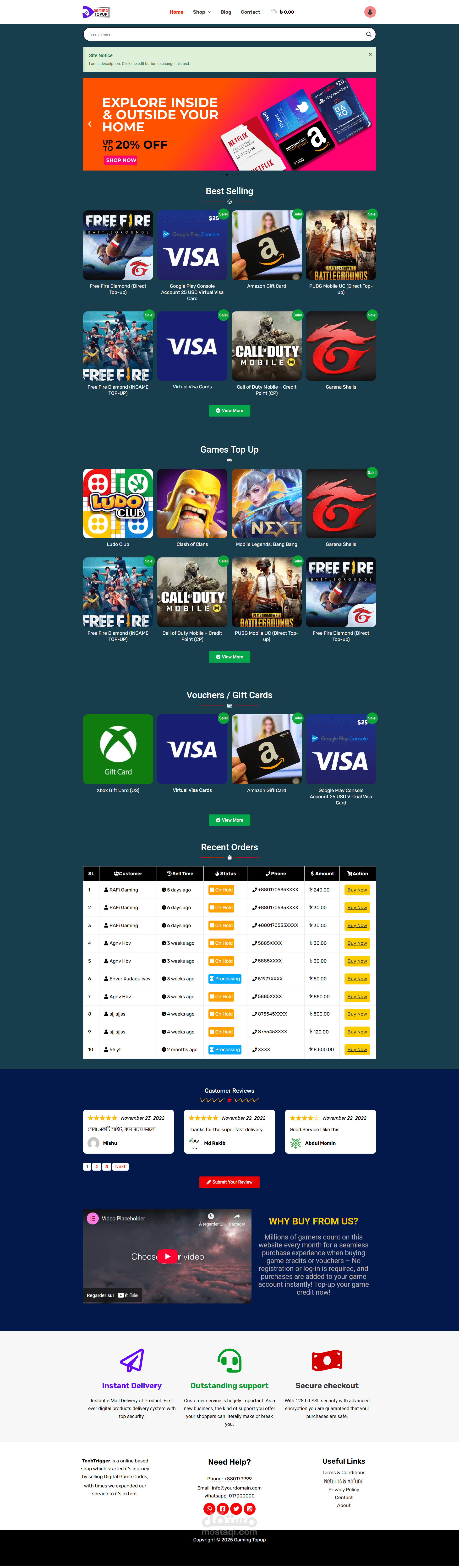 متجر إلكتروني ووردبريس ووكمرس خدمات شحن ألعاب, تطبيقات, رصيد ...