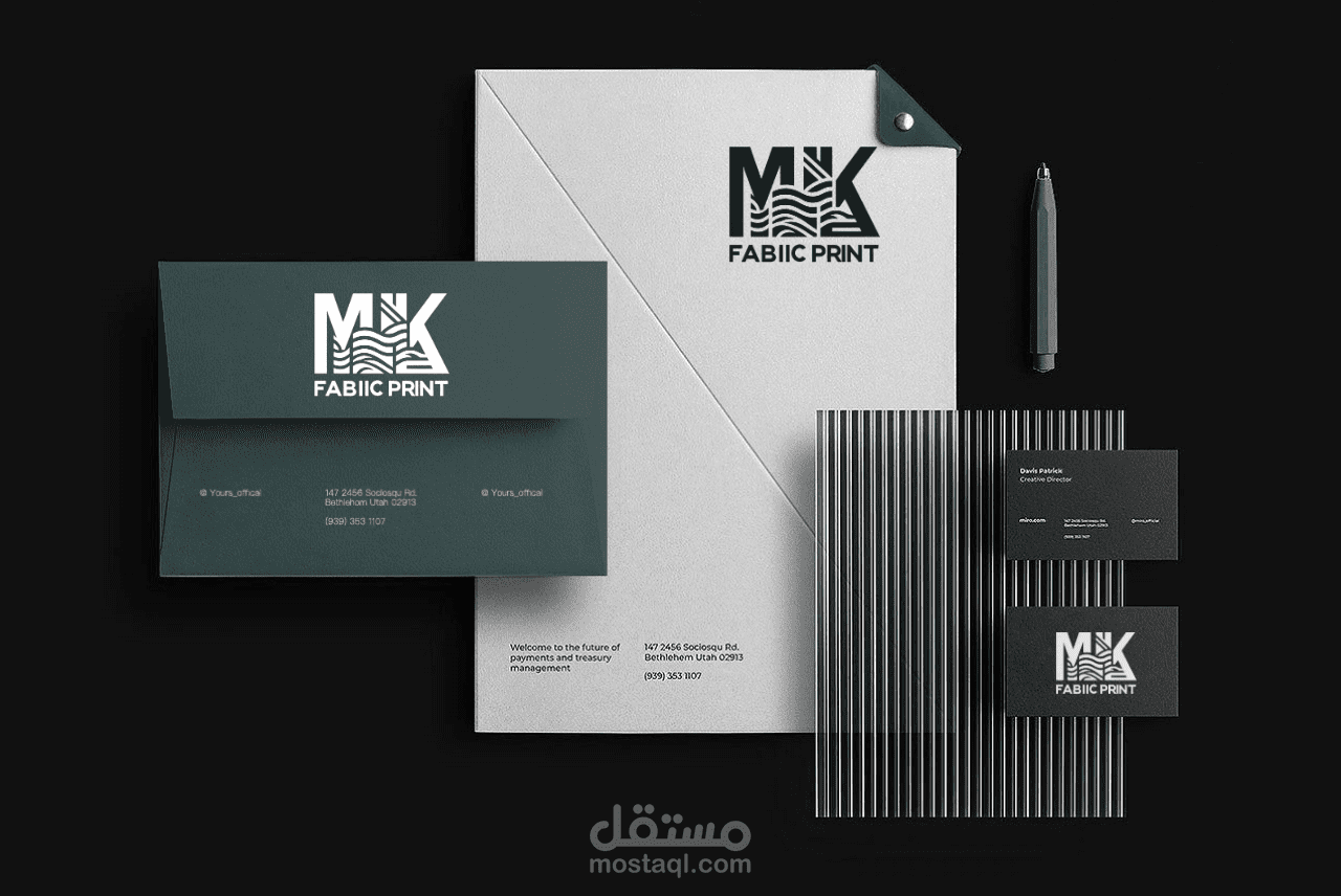 هوية بصرية لشركة طباعة ونسيج وصباغة تدعي Modern Alkhuamsia Fabric print