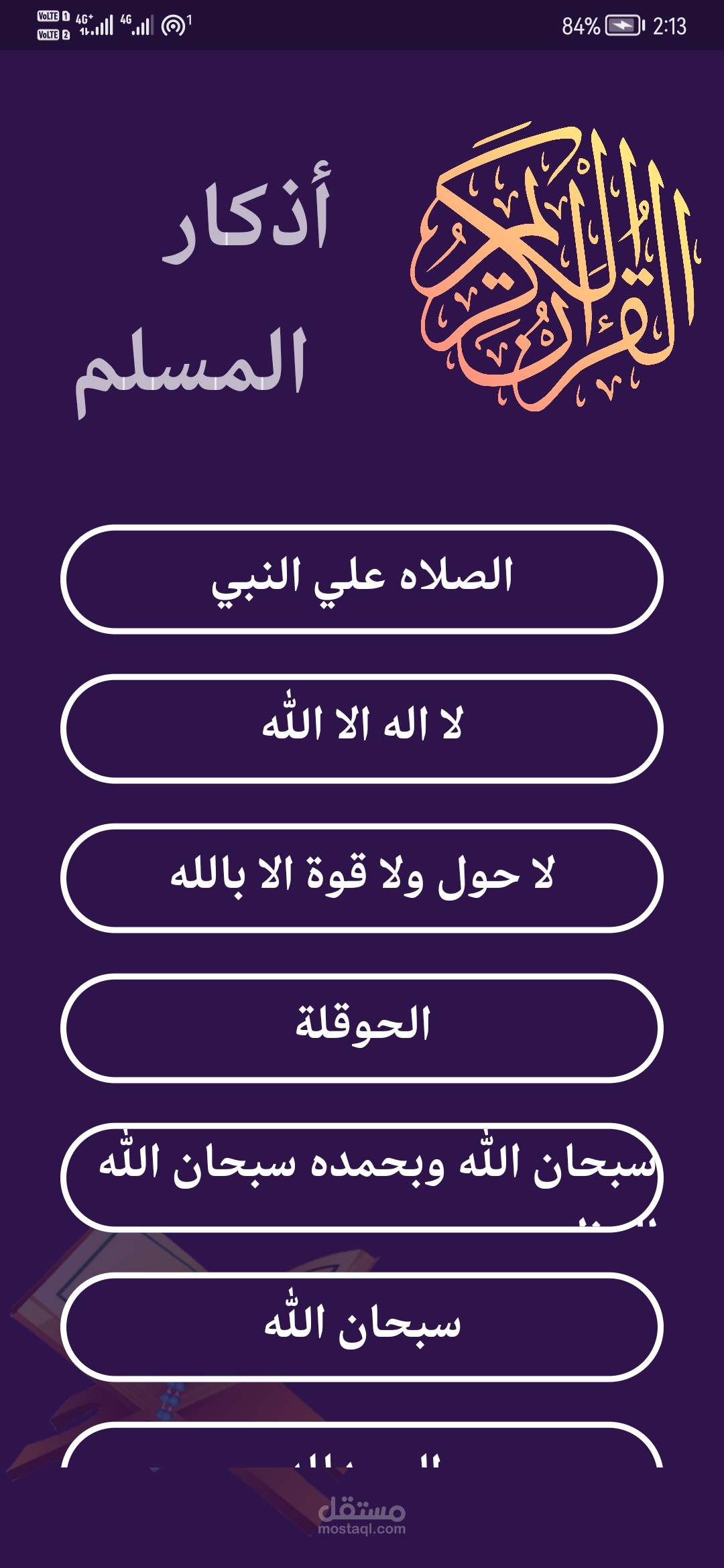 It contains (the Holy Qur’an - an explanation of the surahs of the Holy Quran - the Muslim remembrances - the rosary - the remembrances of praise with explanation)