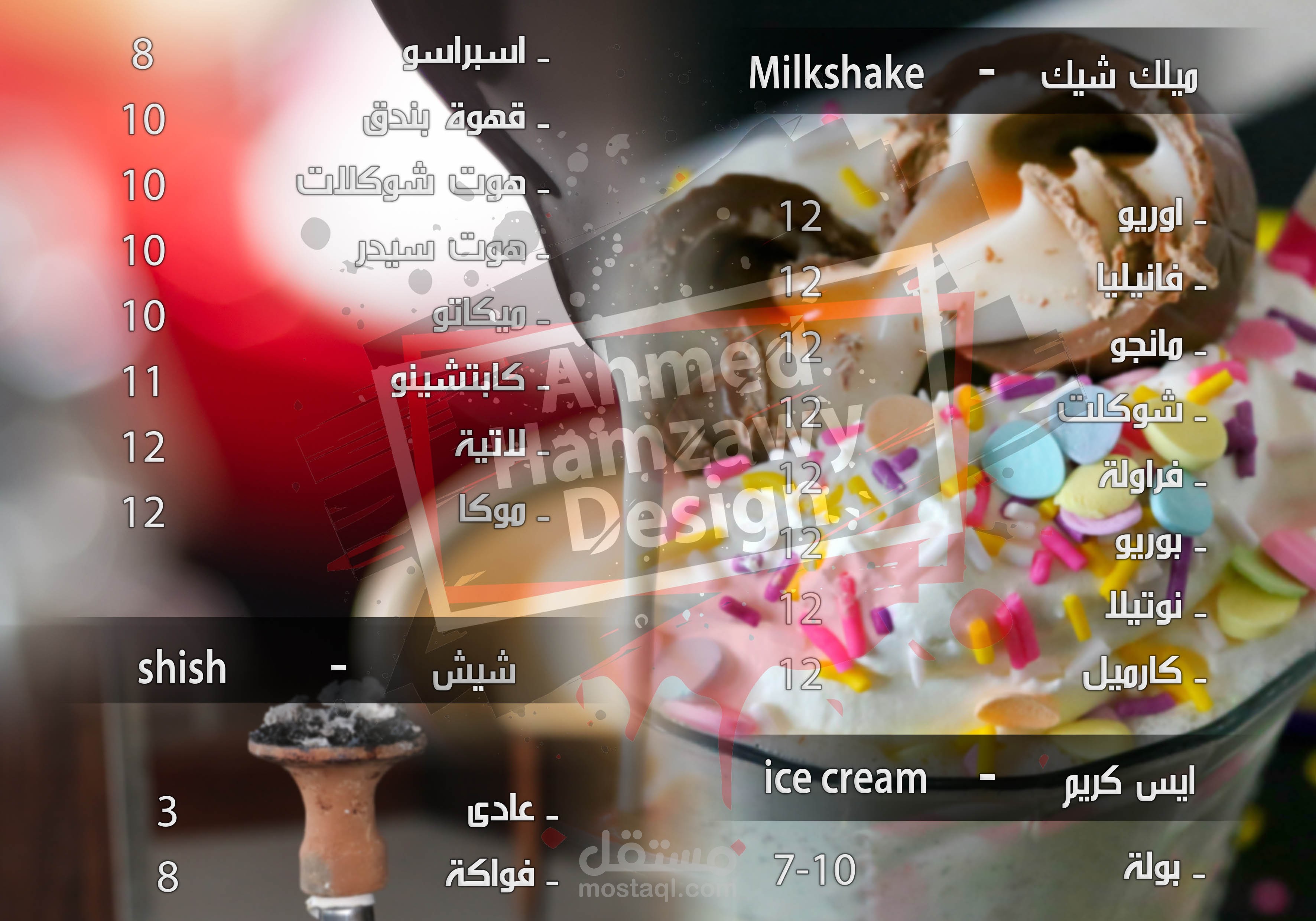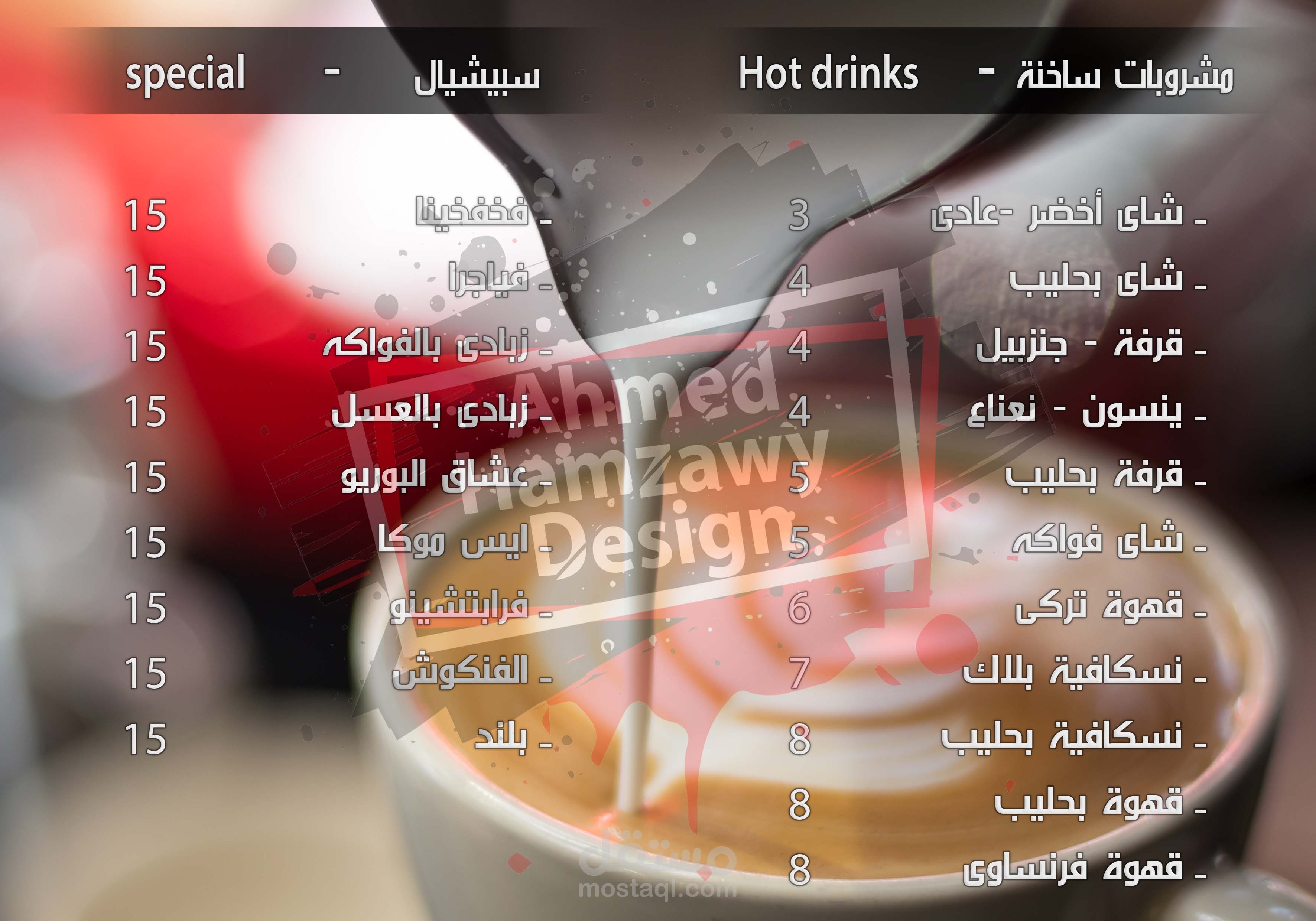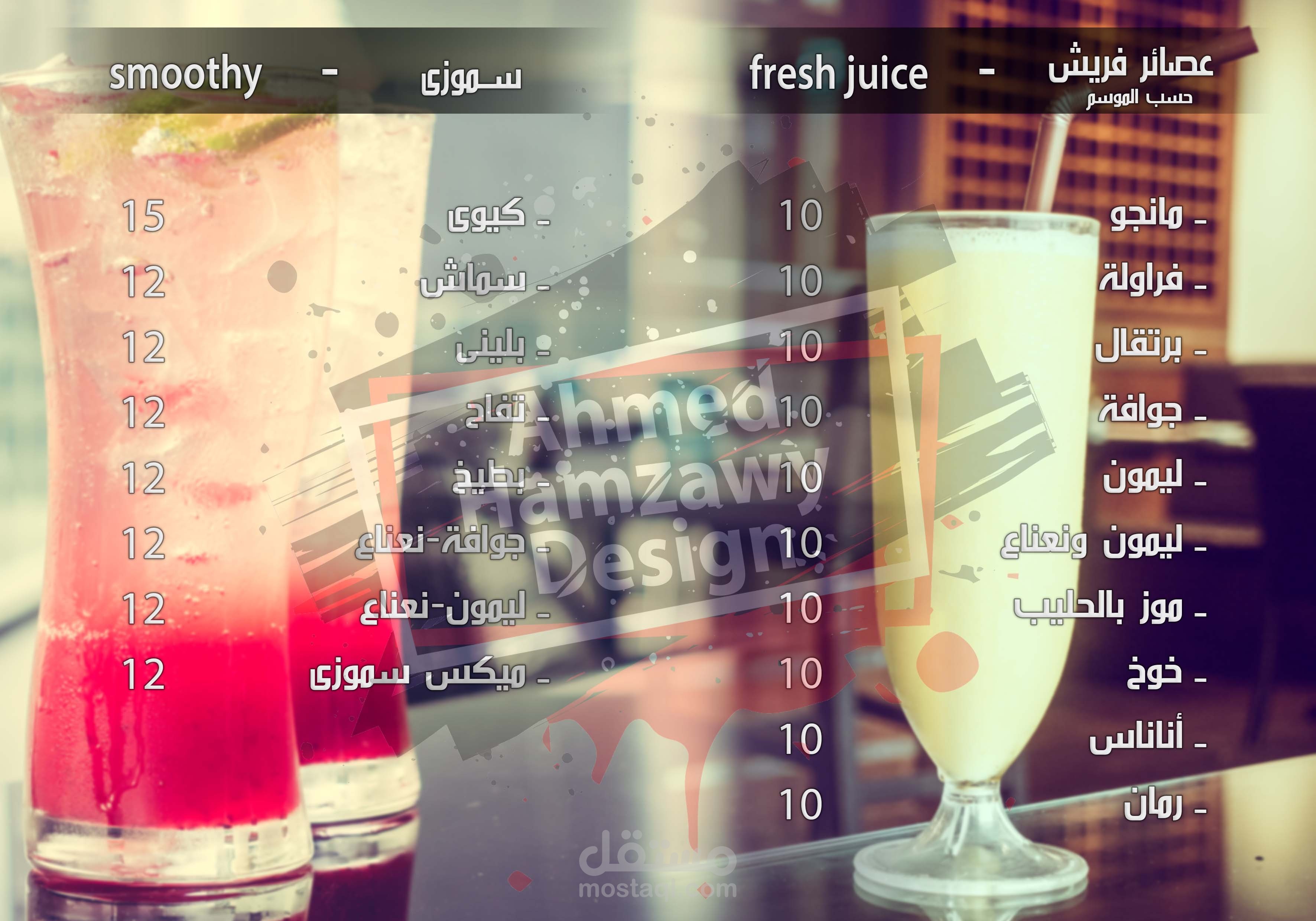 كتيب مكون من اربع ورقات موضح بيه اسماء المشروبات والاسعار