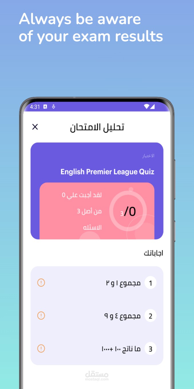 Examify هو التطبيق النهائي للإعداد للاختبار وتتبعه للطلاب. اختر مدرسك ، وحدد المواد ، واستقبل الاختبارات مباشرة من تطبيق المعلم. بدء الاختبارات ، وعرض الاختبارات النهائية ، والوصول إلى الواجبات والمراجعات. احصل على نتائج فورية عند الانتهاء. قم بزيادة أداء الاختبار إلى الحد الأقصى وتتبع تقدمك مع Examify. التحميل الان!