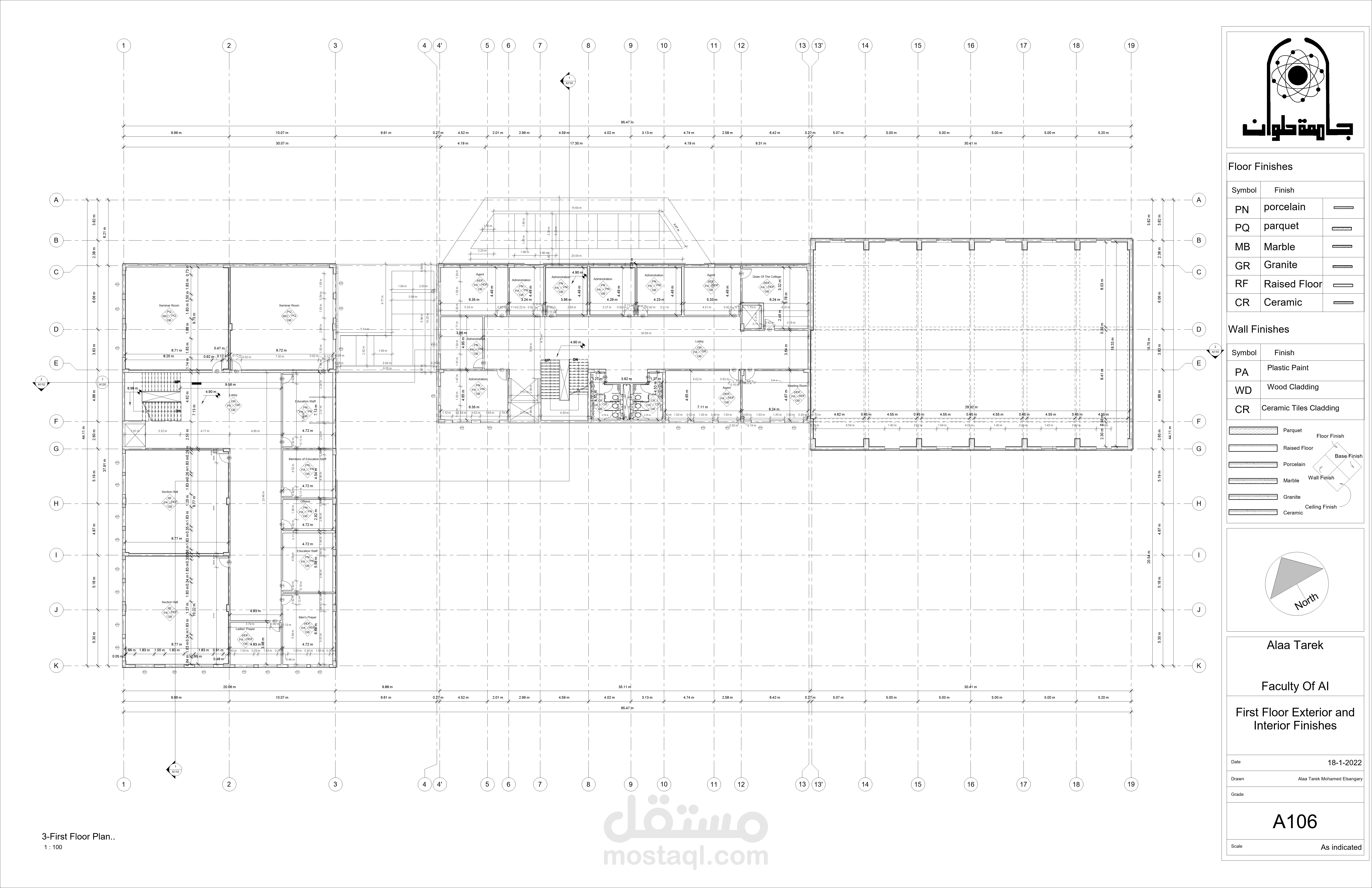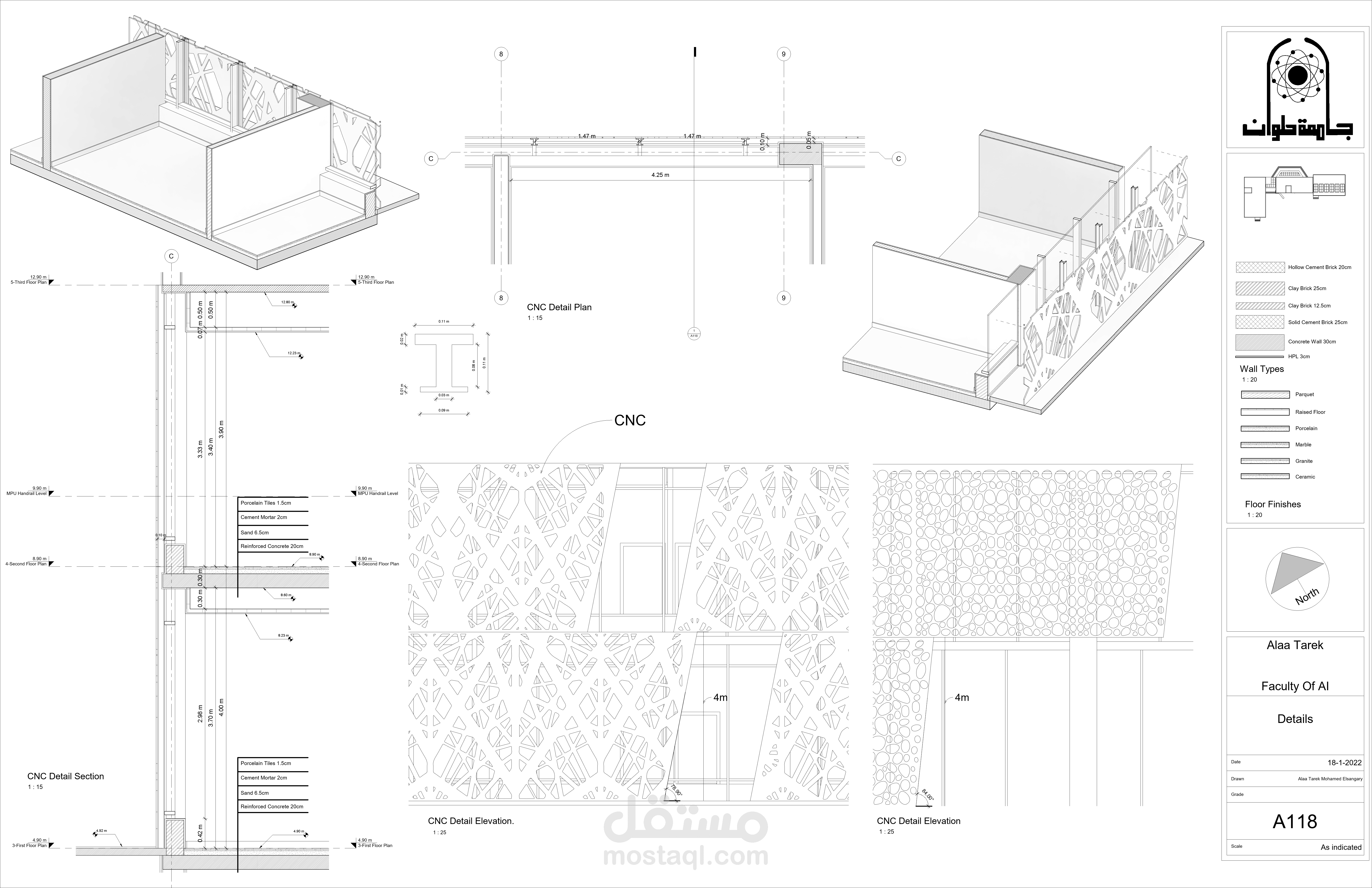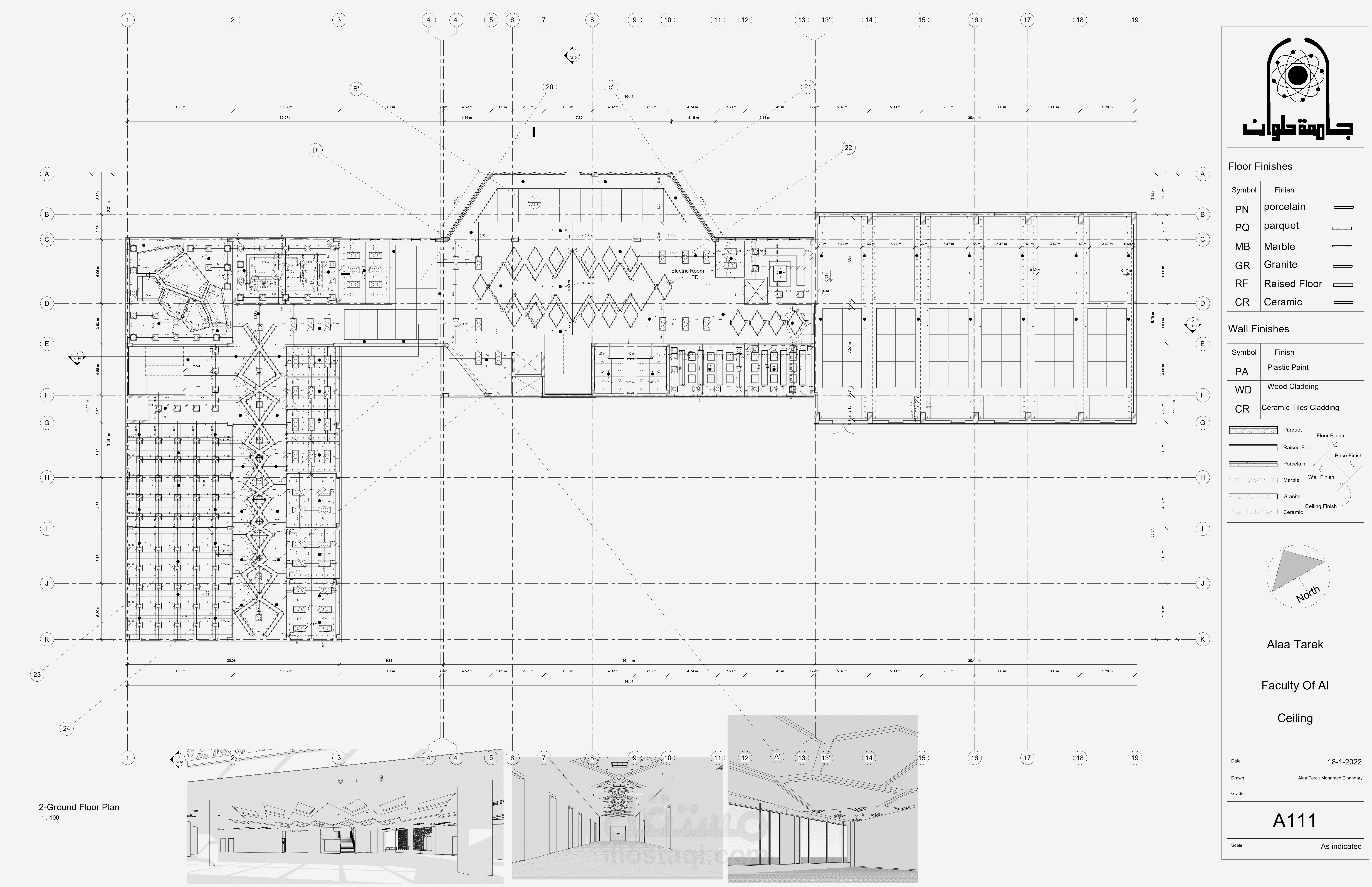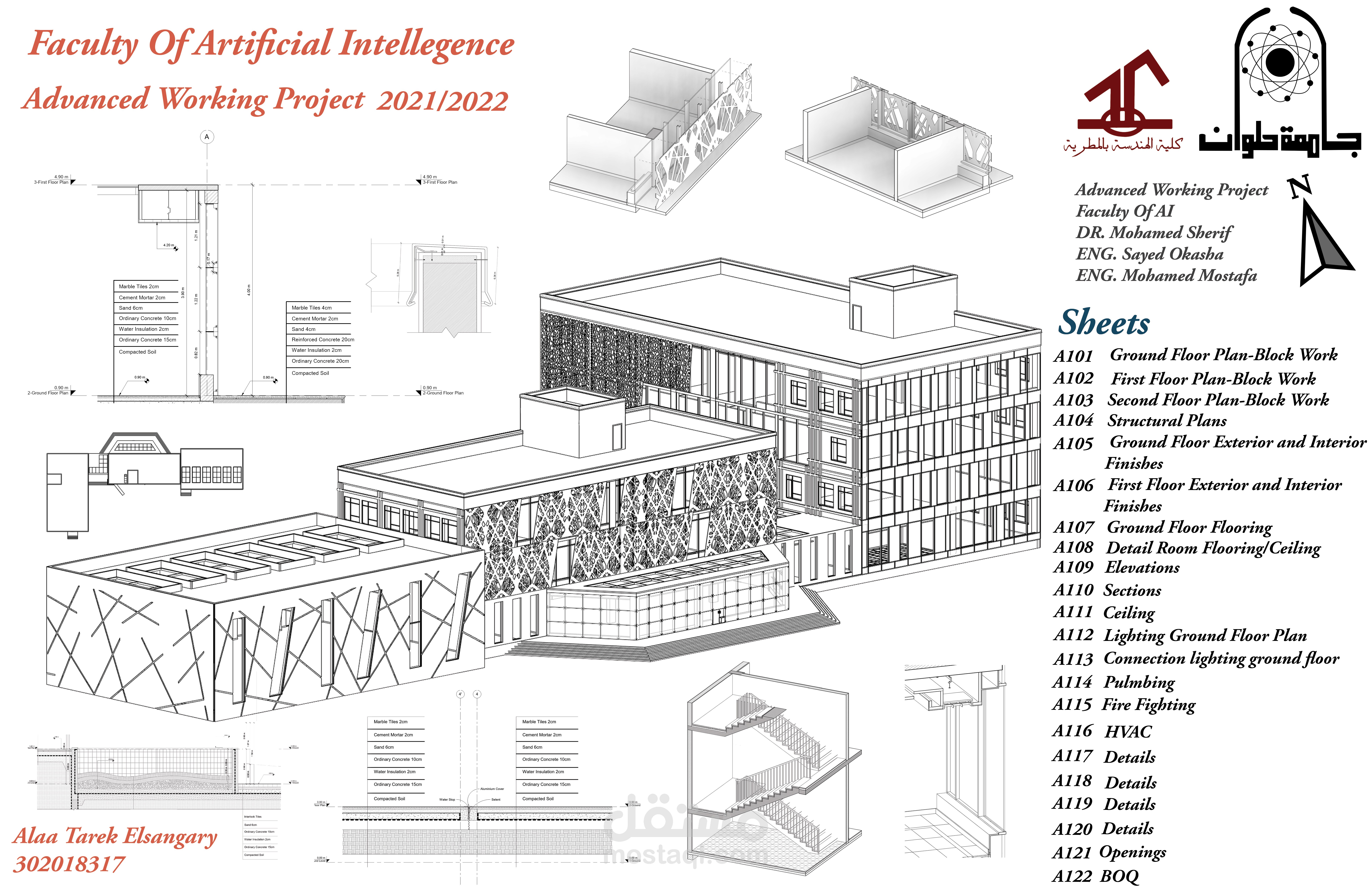 Working drawings of faculty of artificial intelligence done by BIM system using Revit from block works to BOQ
