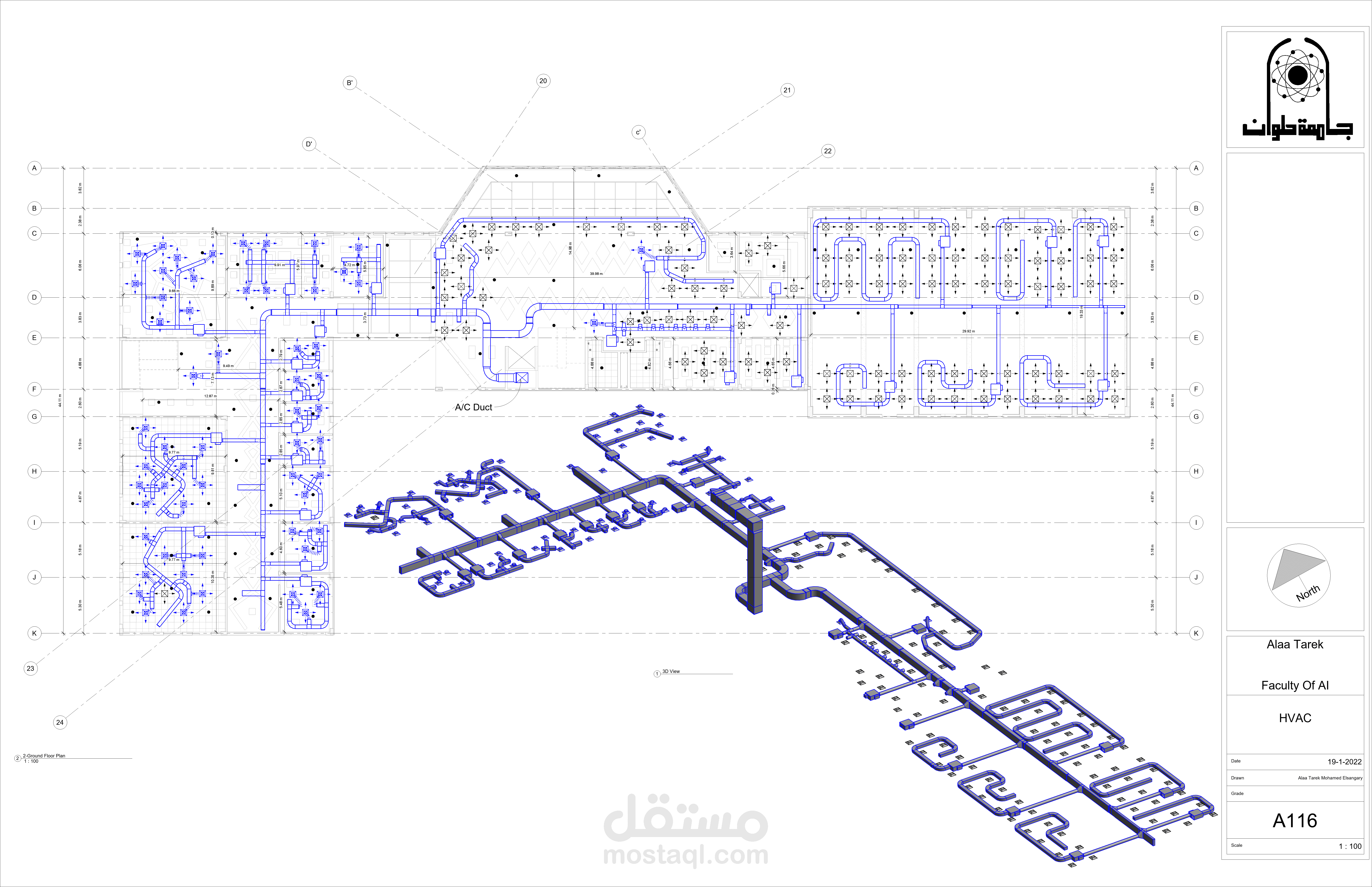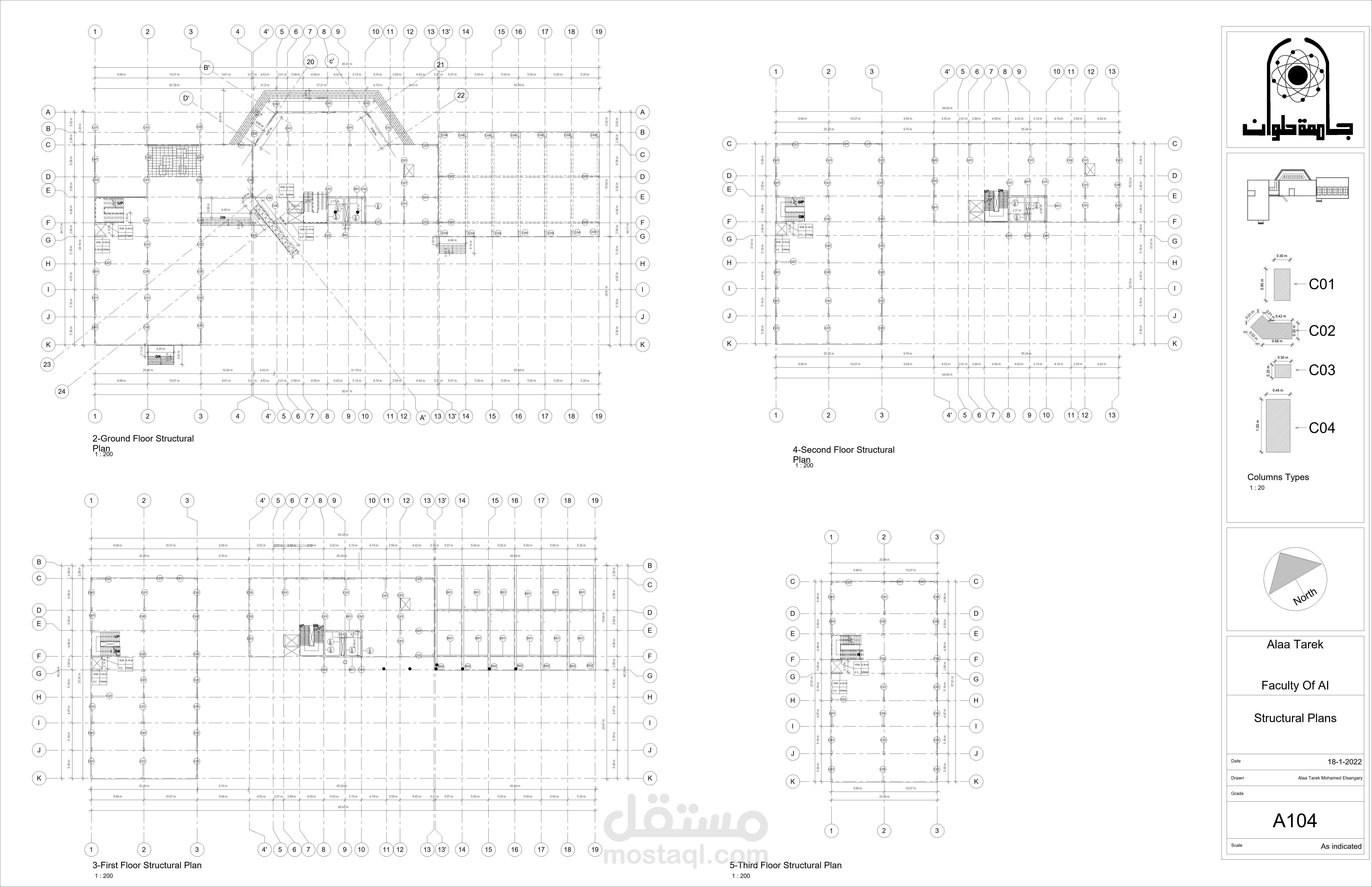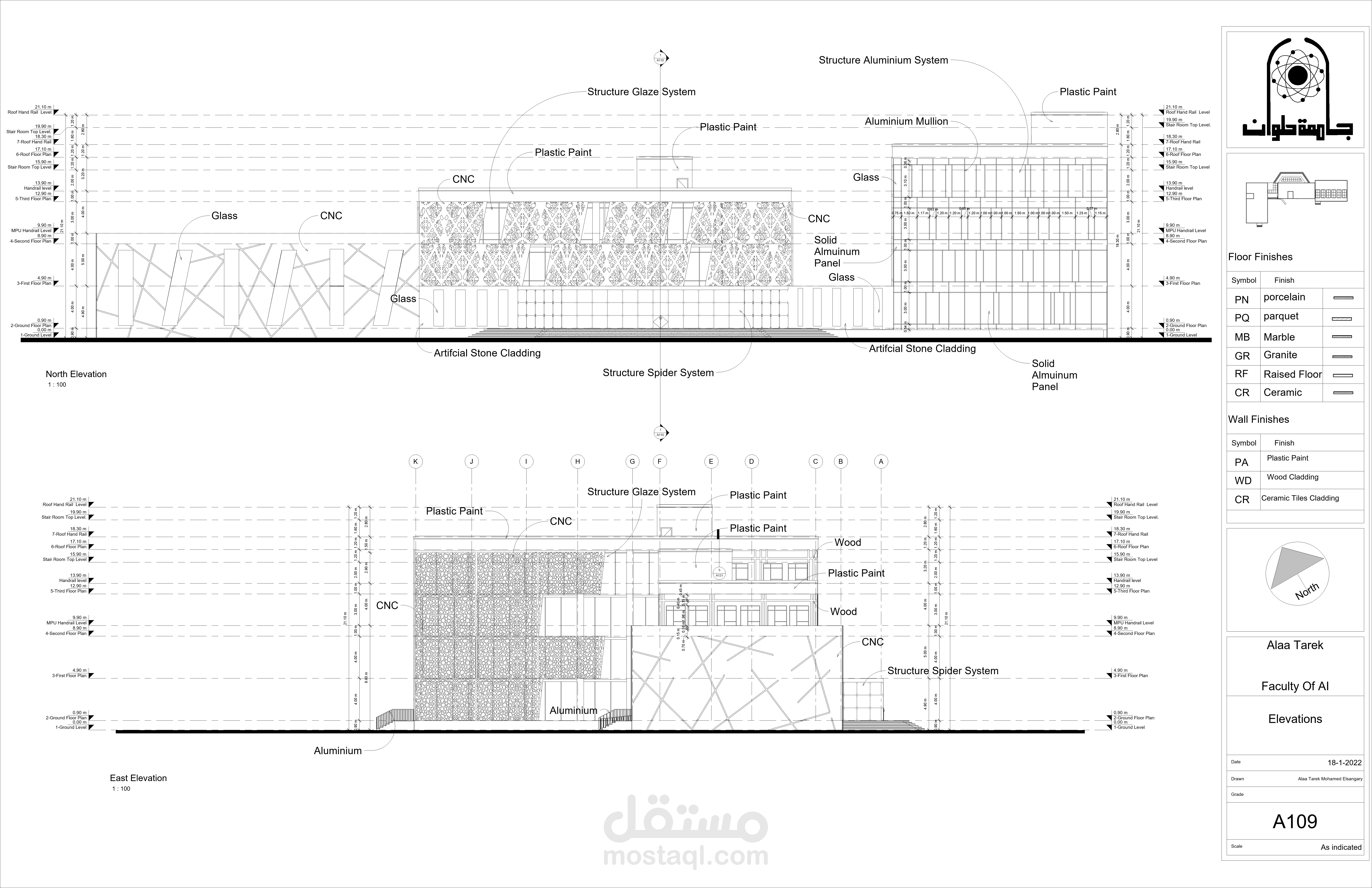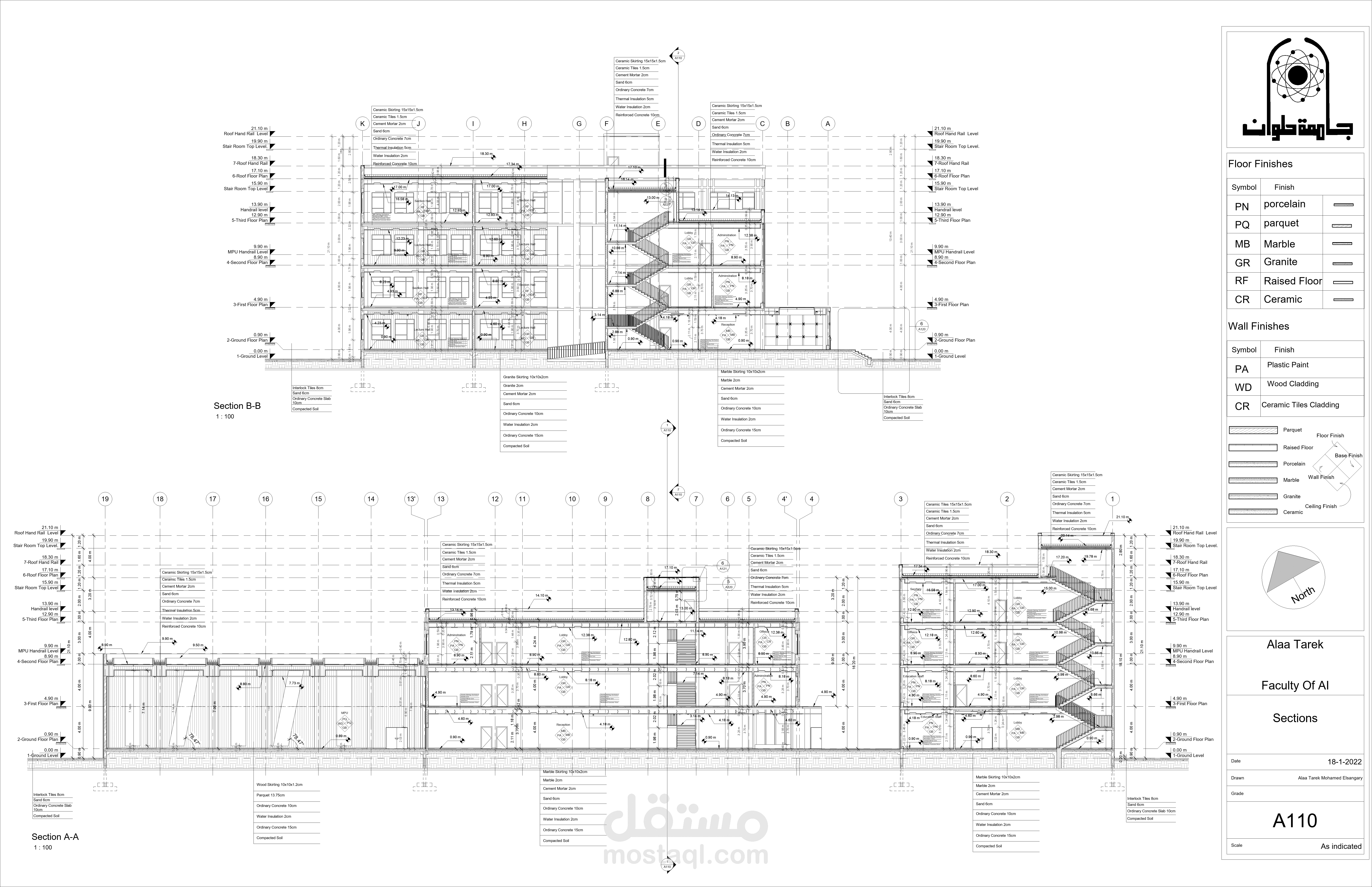 Working drawings of faculty of artificial intelligence done by BIM system using Revit from block works to BOQ