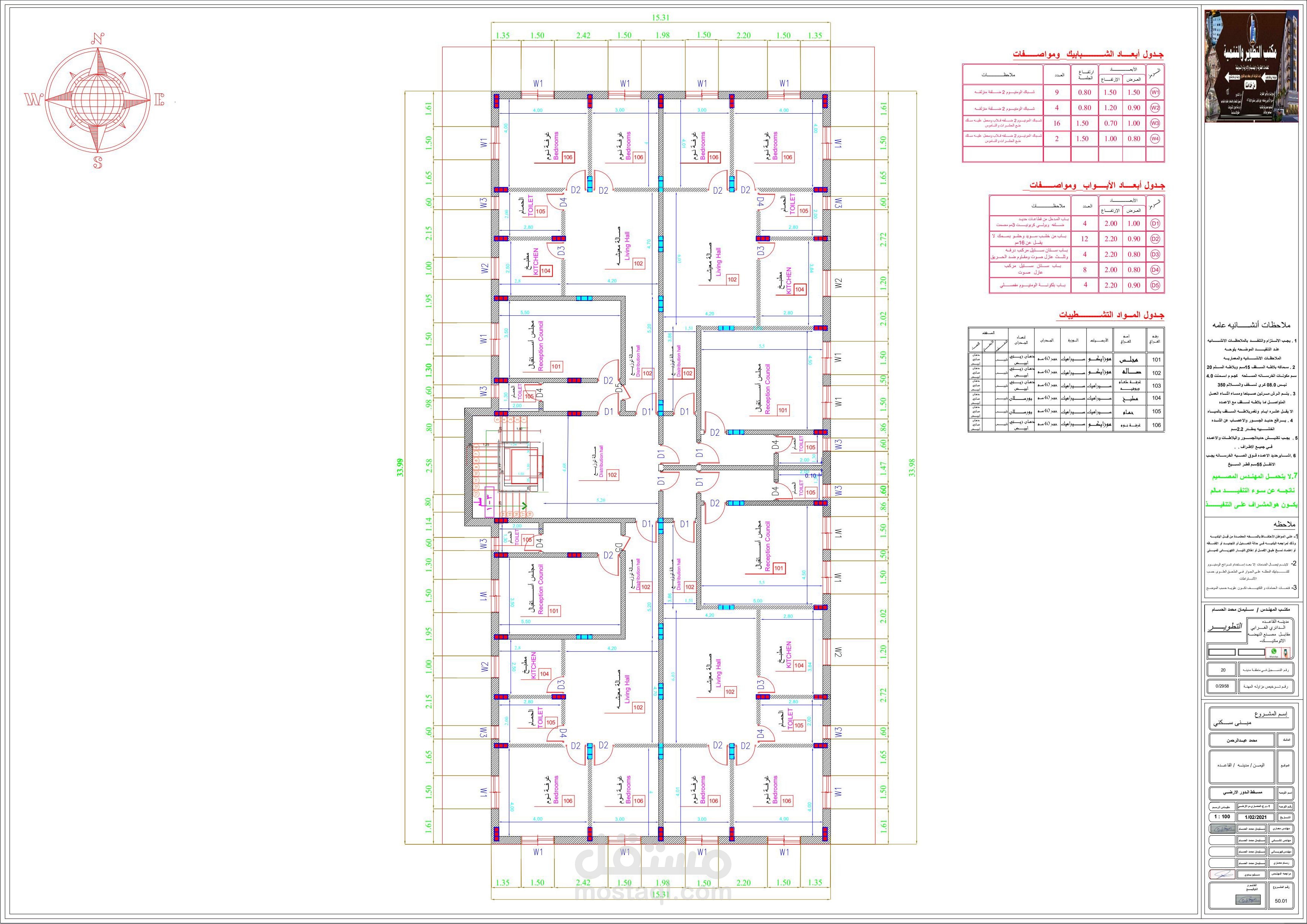 تصميم مخطاط عماره سكنيه أربع شقائق معماريه بمجلس منعزله حسب الذوق اليمني المحافظ autocad