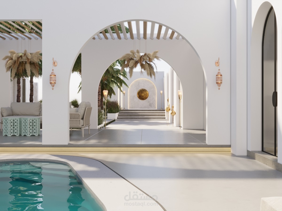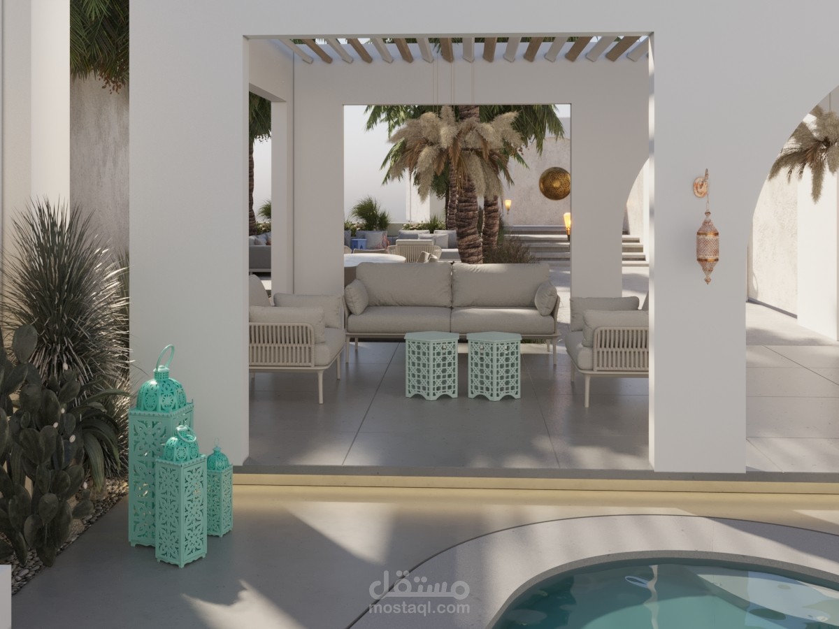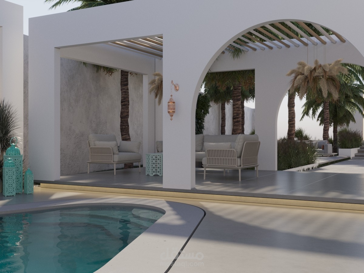 مسبح وجلسات على الطراز المغربي