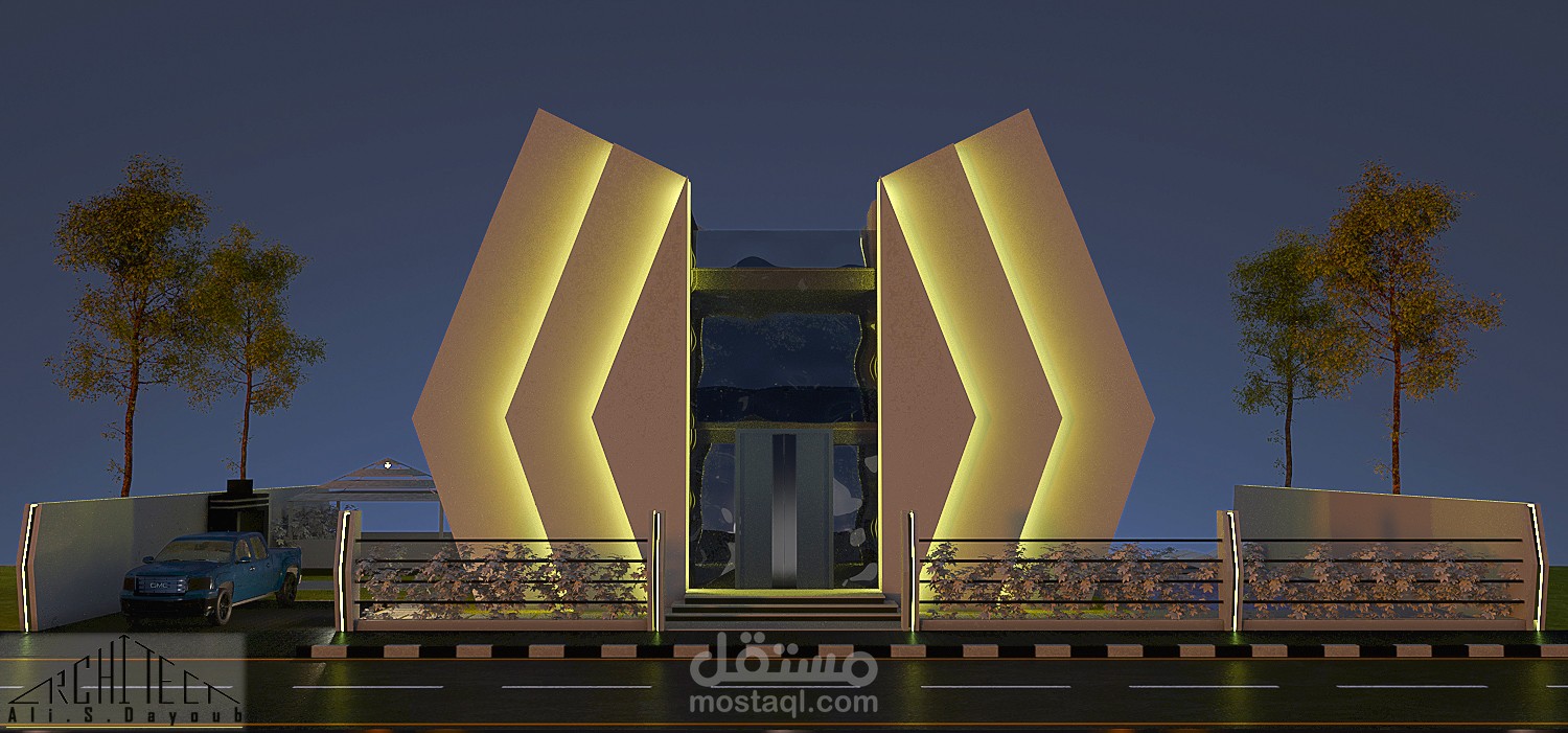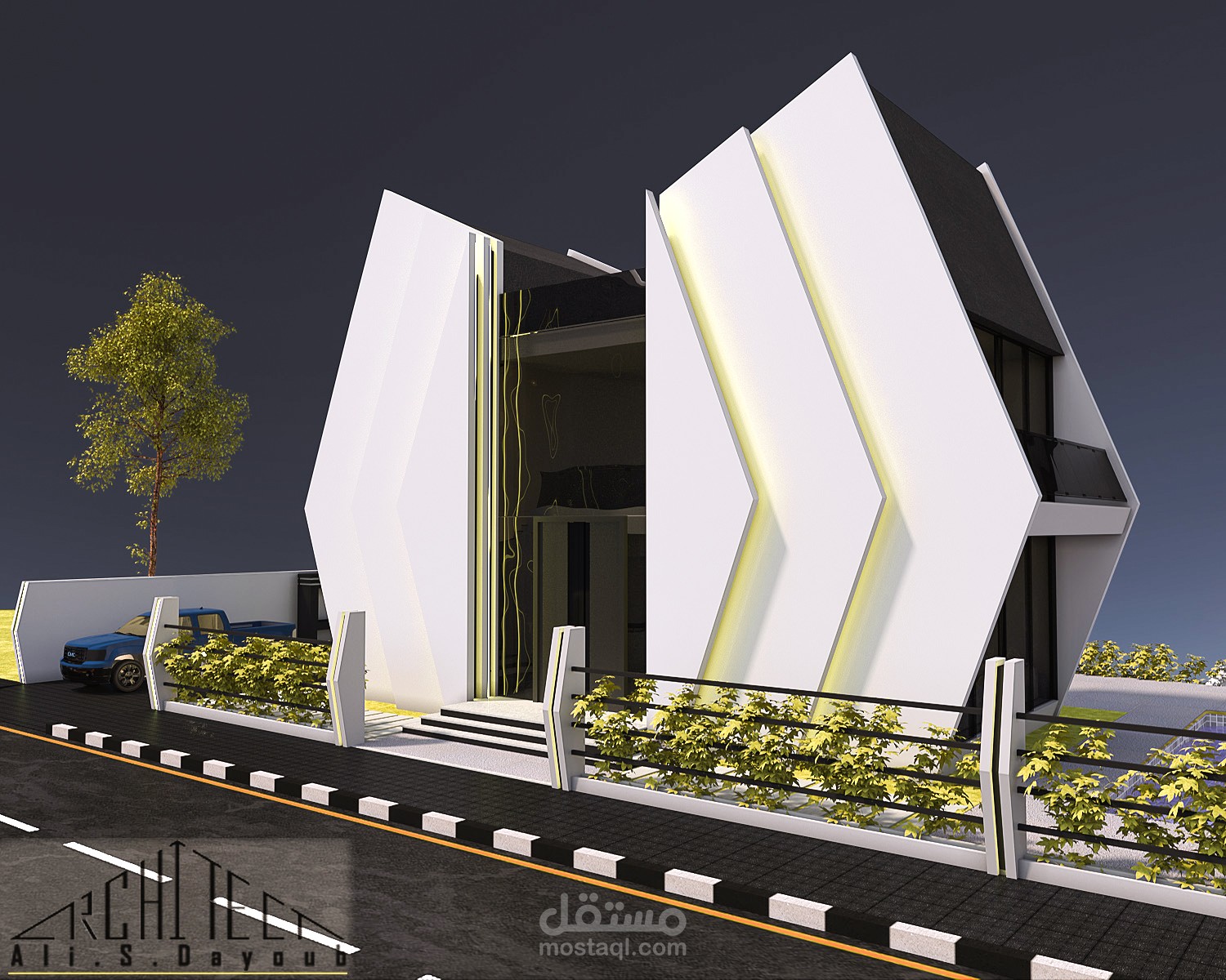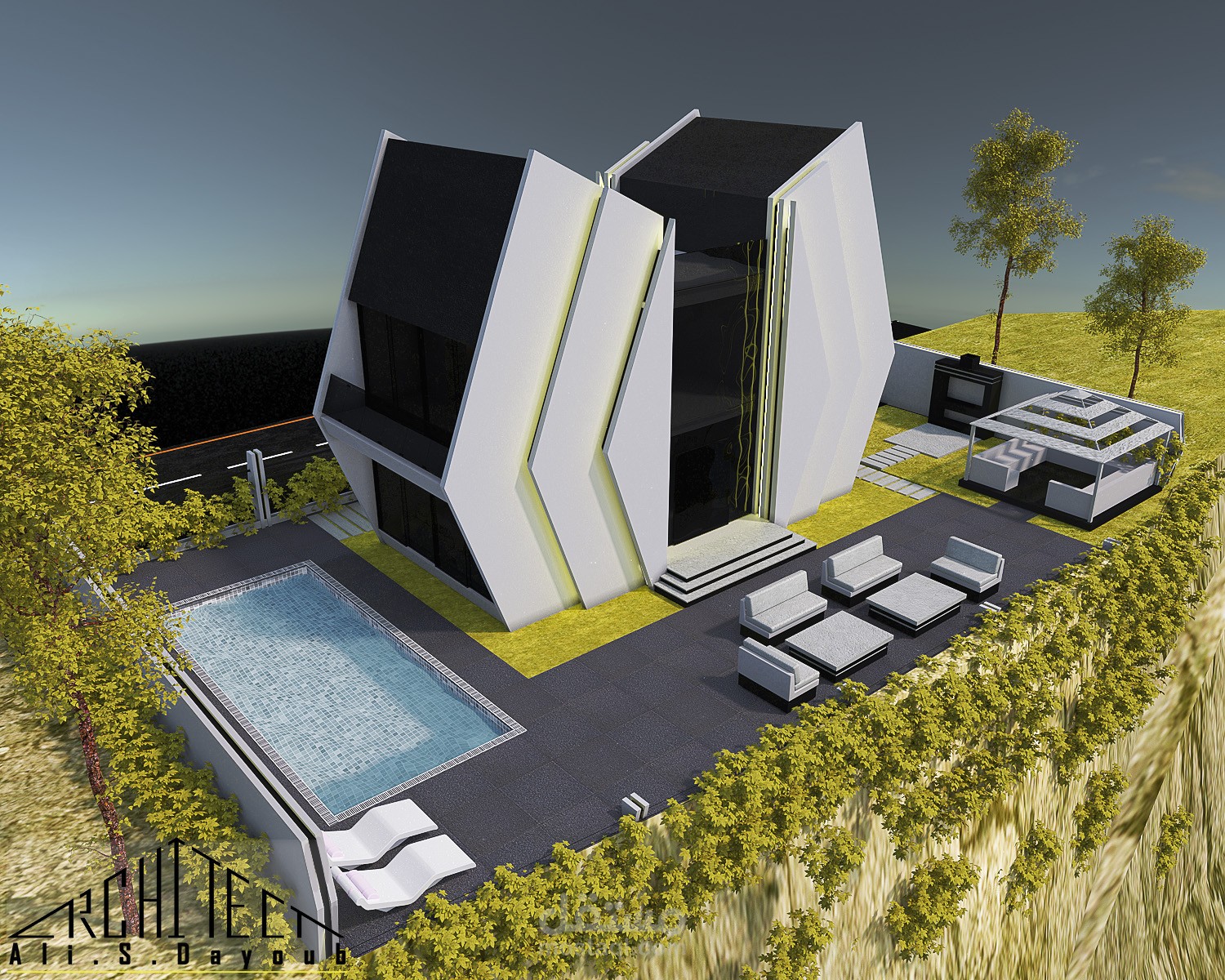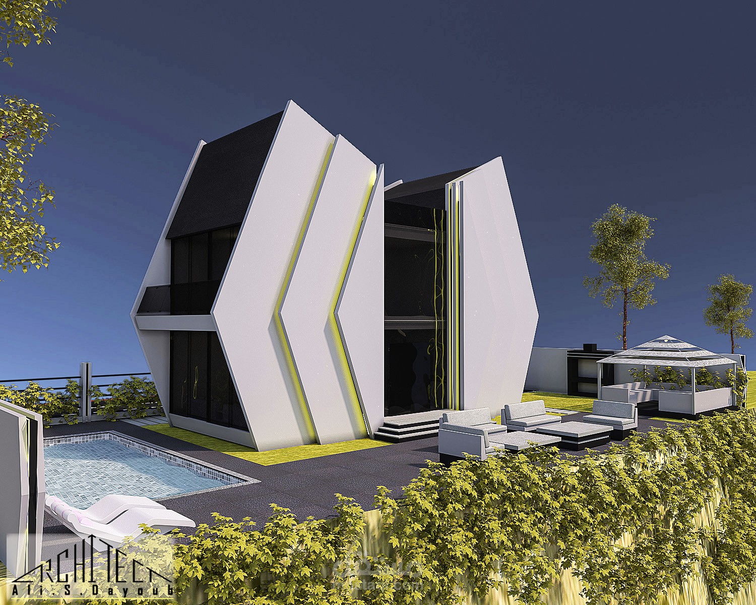 فيللا مودرن، خطوطها تحاكي البيئة التي تنتمي لها، صممتها وفق أسلوب ال Deconstruction style, مساحة 180 متر مربع موزعة على طابقين، الطابق الأرضي يضم غرفة معيشة و ركن طعام و مطبخ و خدمات، و الطابق الثاني يضم غرفتي نوم و خدمات