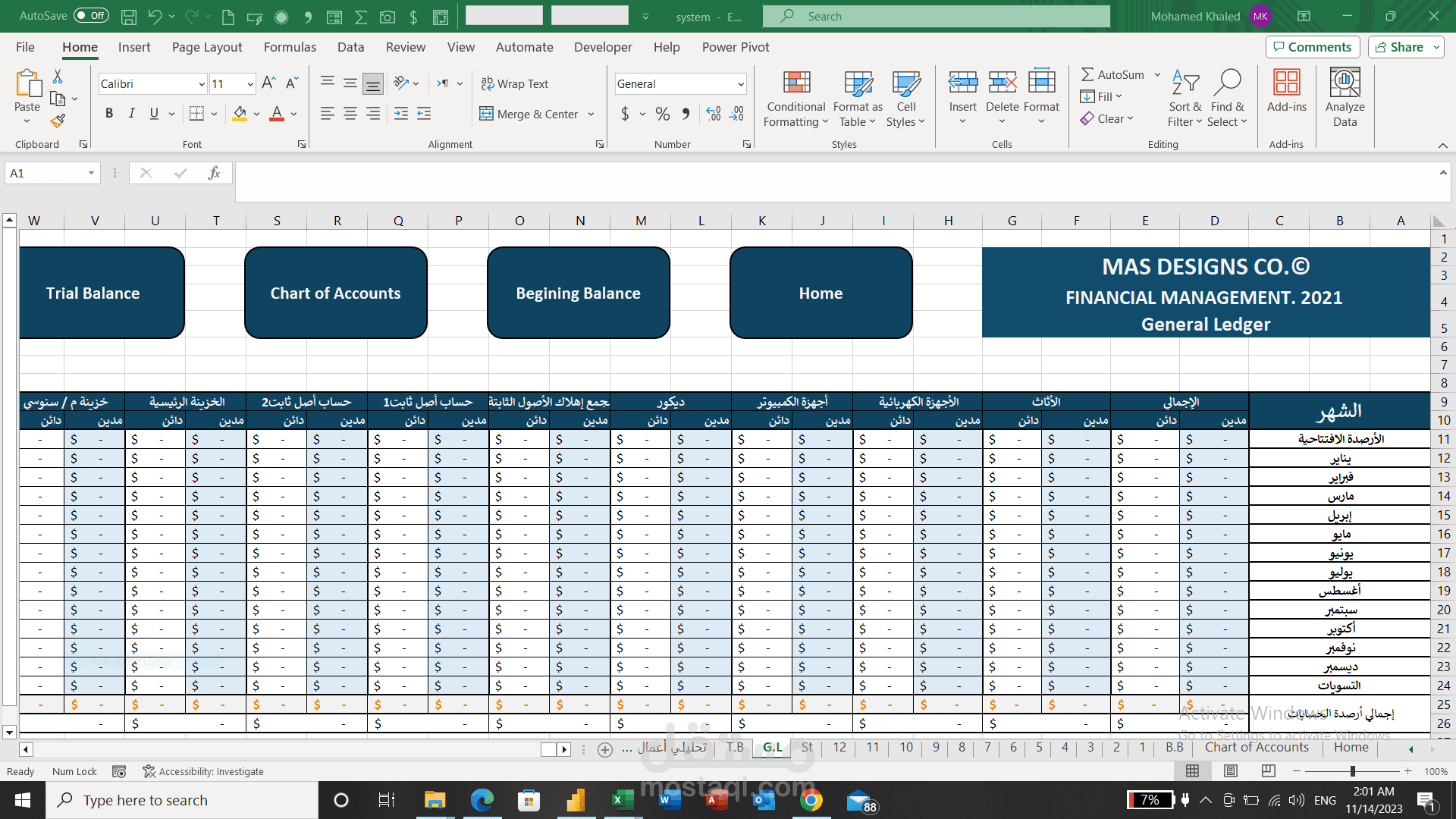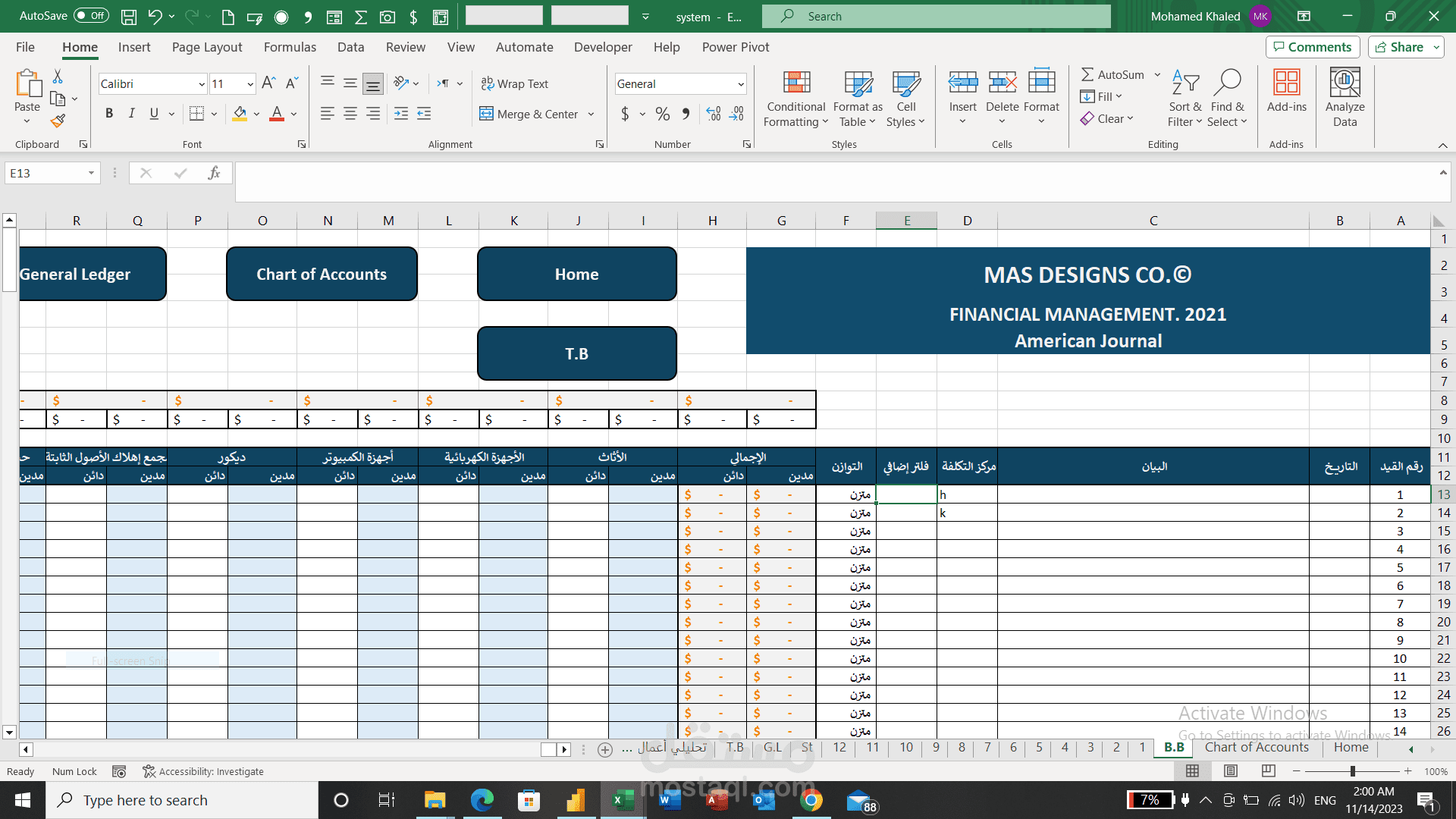 برنامج محاسبي بإستخدام الإكسيل والمعادلات