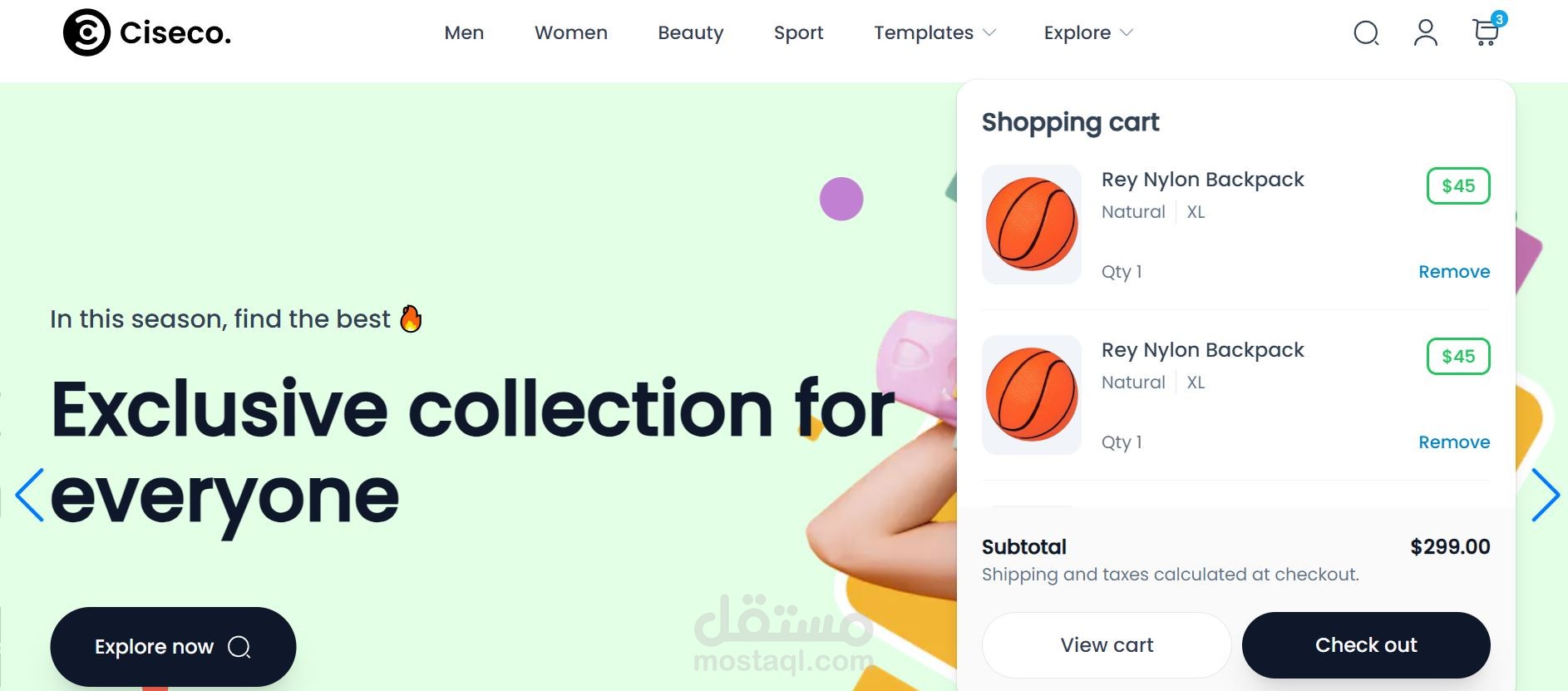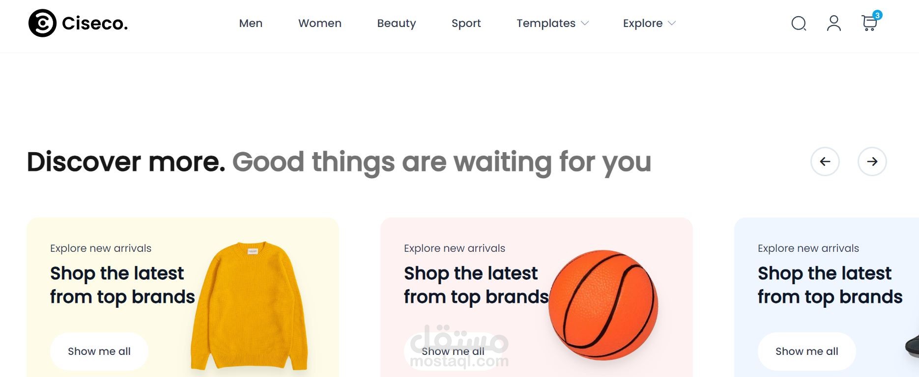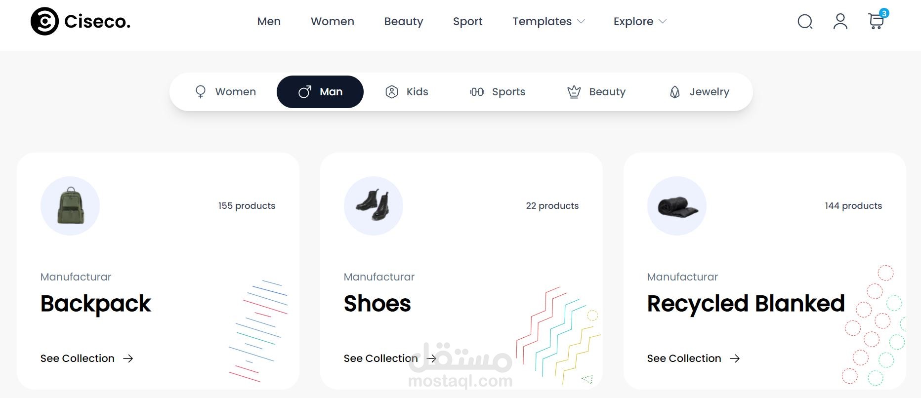 e-commerce ويب سايت متكامل يحتوي علي منتجات متنوعة ومختلفه تم العمل عليه بواسطة React js HTML CSS Tailwind typescript