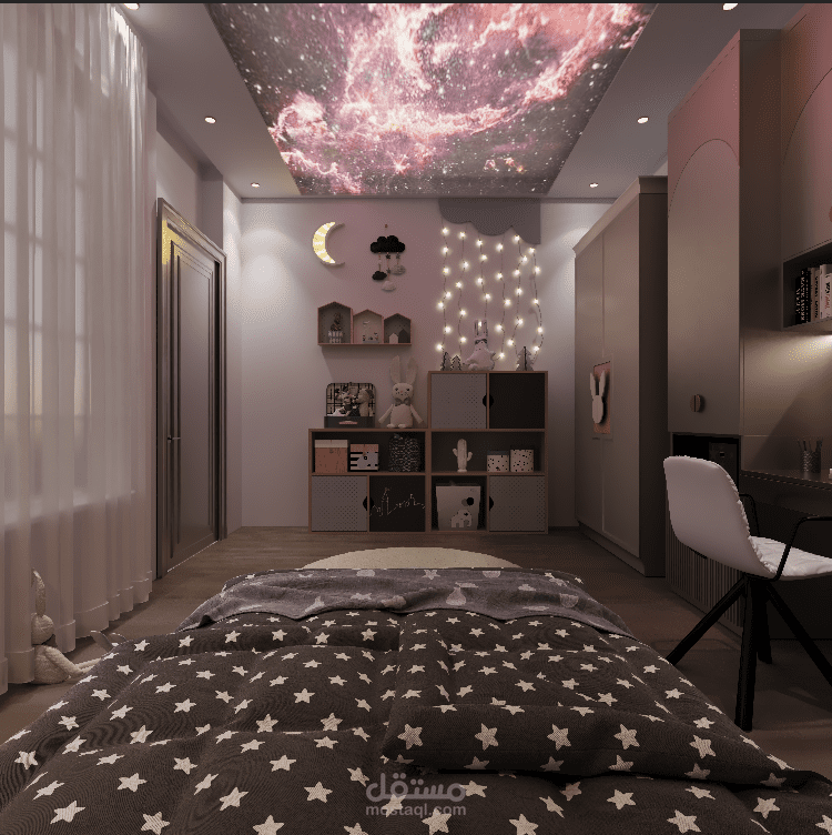 تم طلب تصميم غرفة نوم ل بنت صغيرة و تمكنت من تسليم المشروع في الوقت المحدد حسب متطلبات العميل مع اضافة بعض اللمسات الخاصة بي
