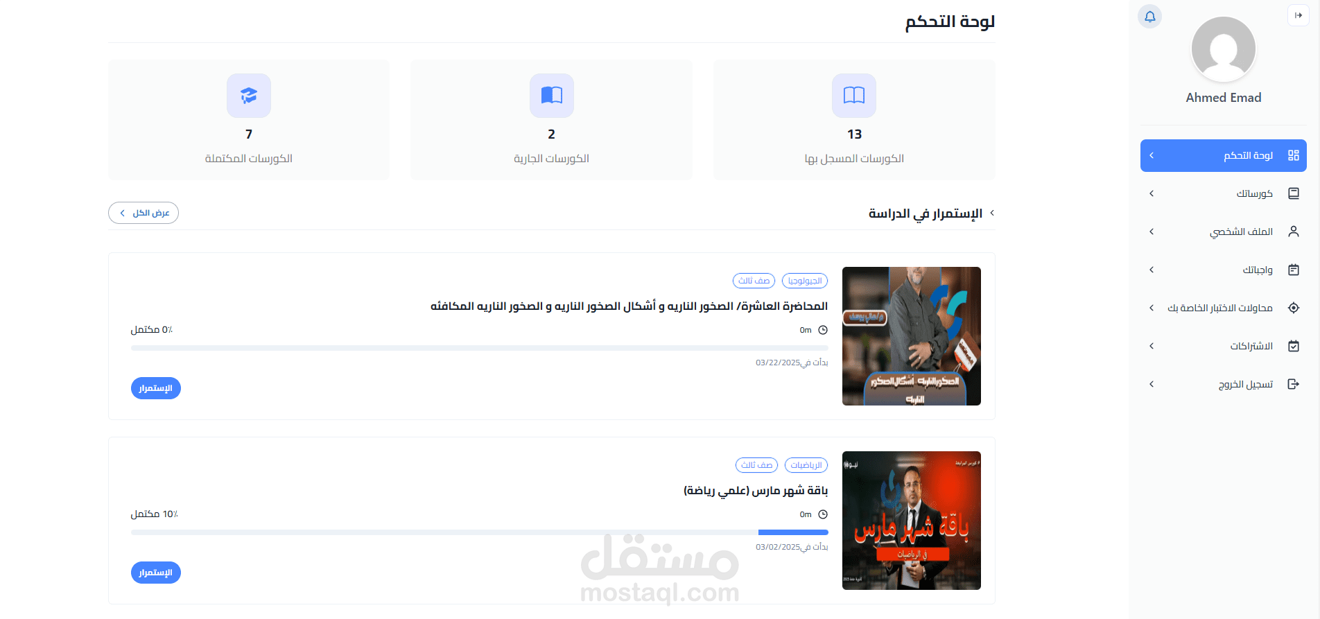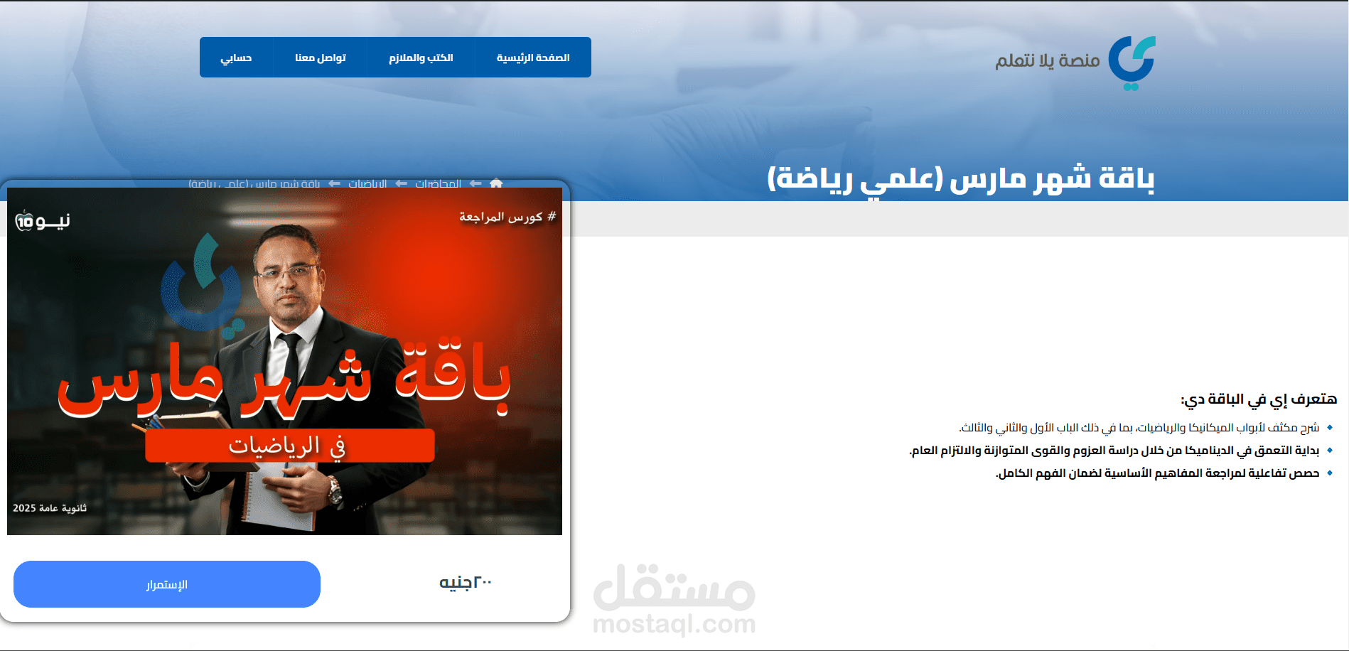 ×× تحديث للمنصه : المنصه اتطورت كمان قدرنا نوفر للمنصة انها تبيع من خلال لوحة تحكمها منصات اخري وكمان طورنا UI/UX الخاص بالمنصه ولكن نظام عمل المنصه غير انظمة العمل الحديثة التي تم تطويرها من خلالنا كما في mrmohamedahmed.com حيث تم تطويره ليكون اكثر ثباتا وسرعه وسهولة للطلاب.