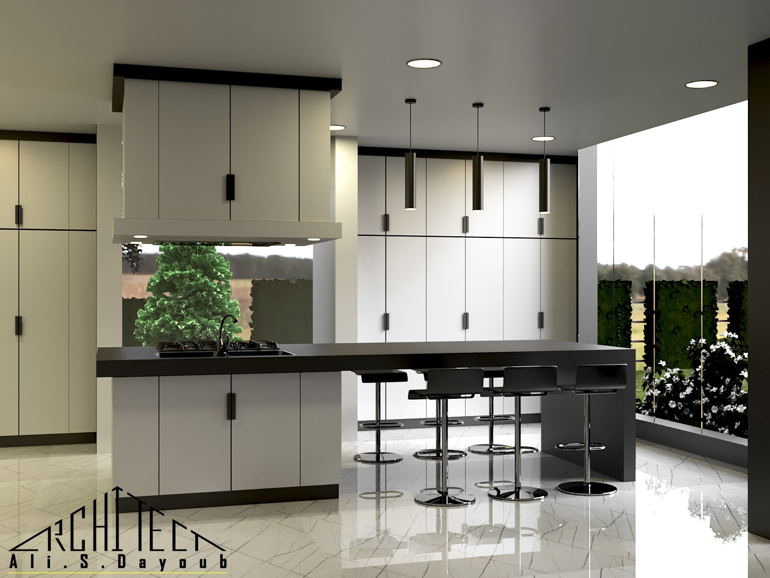 مطبخ مودرن ضمن فيللا باستخدام الكوريون