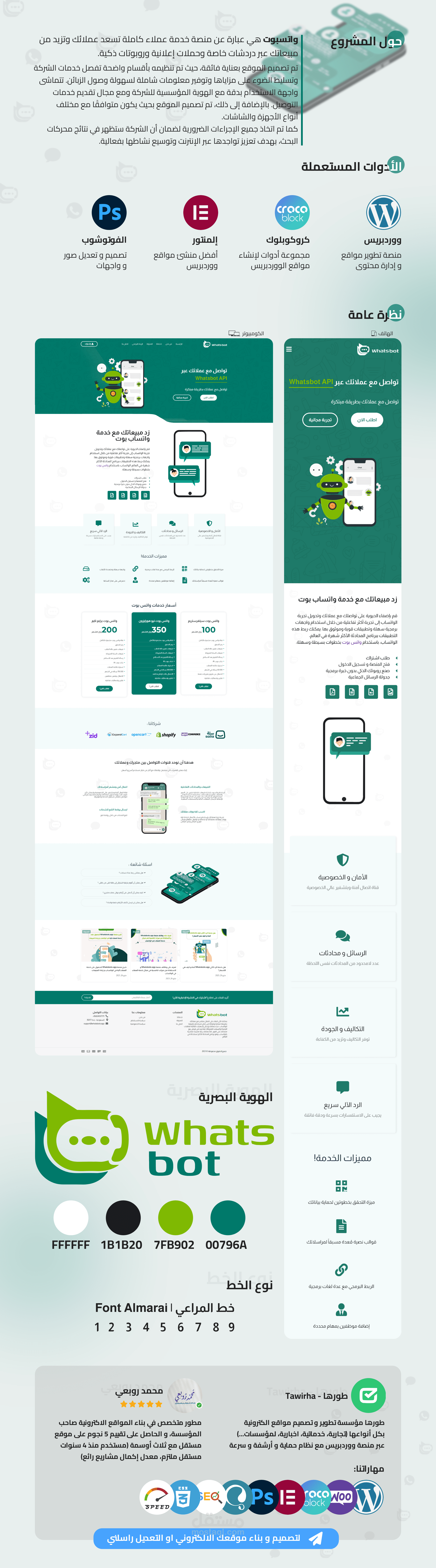 الموقع يحتوي 8 صفحات و 3 اشتراك باللغة عربية بالاضافة الى ربطه مع سيرفر whatsapp bot لمنصة خدمة عملاء عبر الدردشة الخاصة و روبوتات ذكية و التحكم التام في القالب و الموقع بالكامل مع التناسق و تجاوب مع كل الاجهزة.