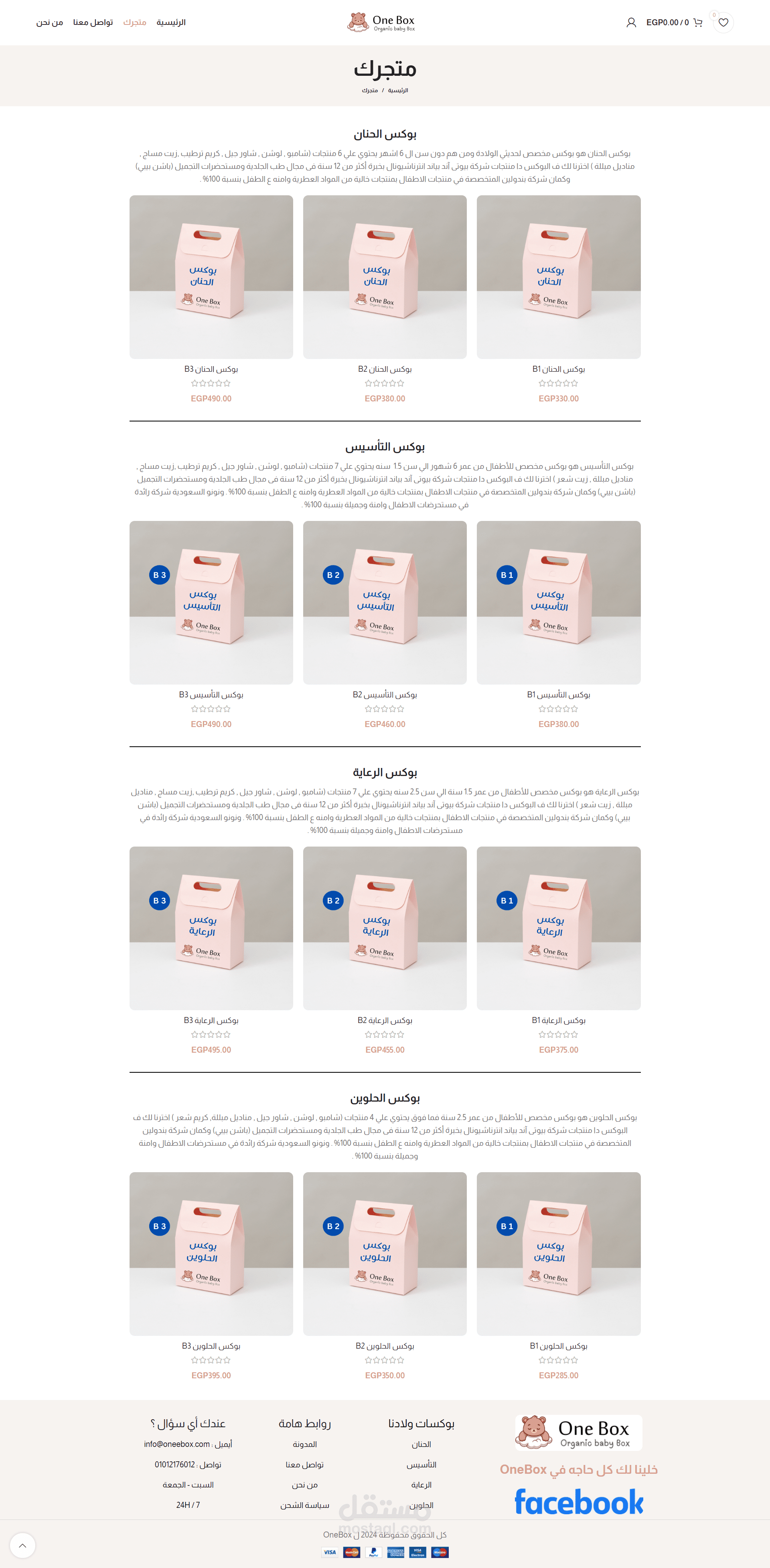 احنا بنقدم لك بوكس فيه كل الي بيحتاجه طفلك خلال الشهر من عمر يوم واحد , وكمان لو حبيتي بنوصلة لك كل شهر بطريقة دورية , كل المنتجات الي بنقدمها طبيعيه وأمنه علي الطفل بنسبة 100%