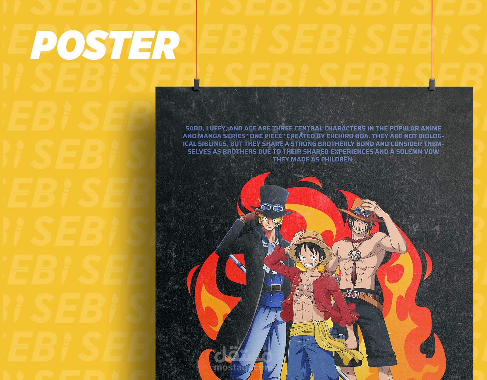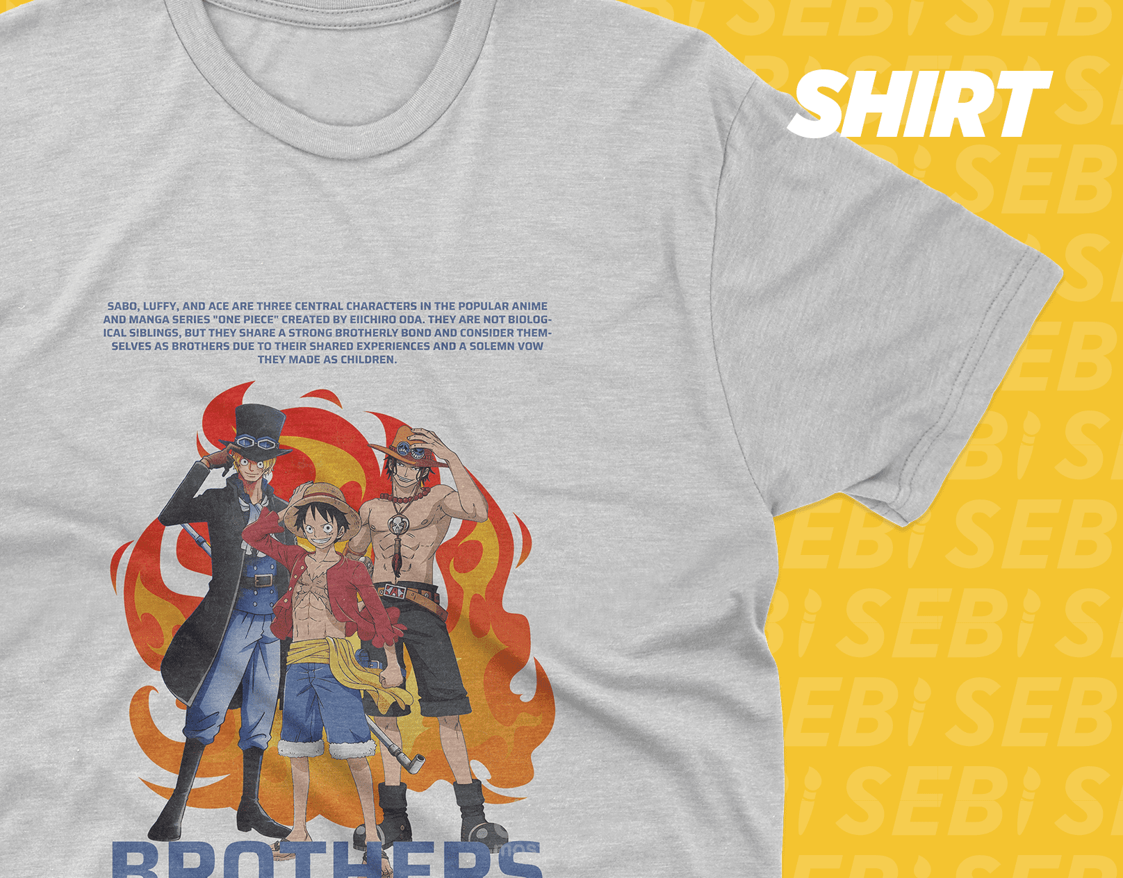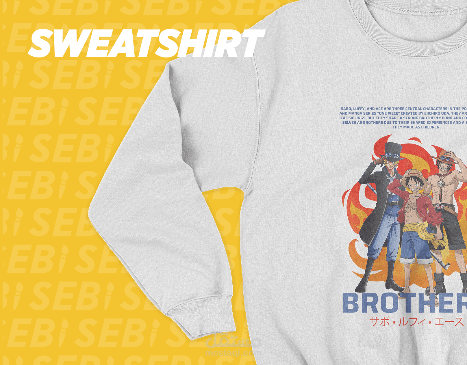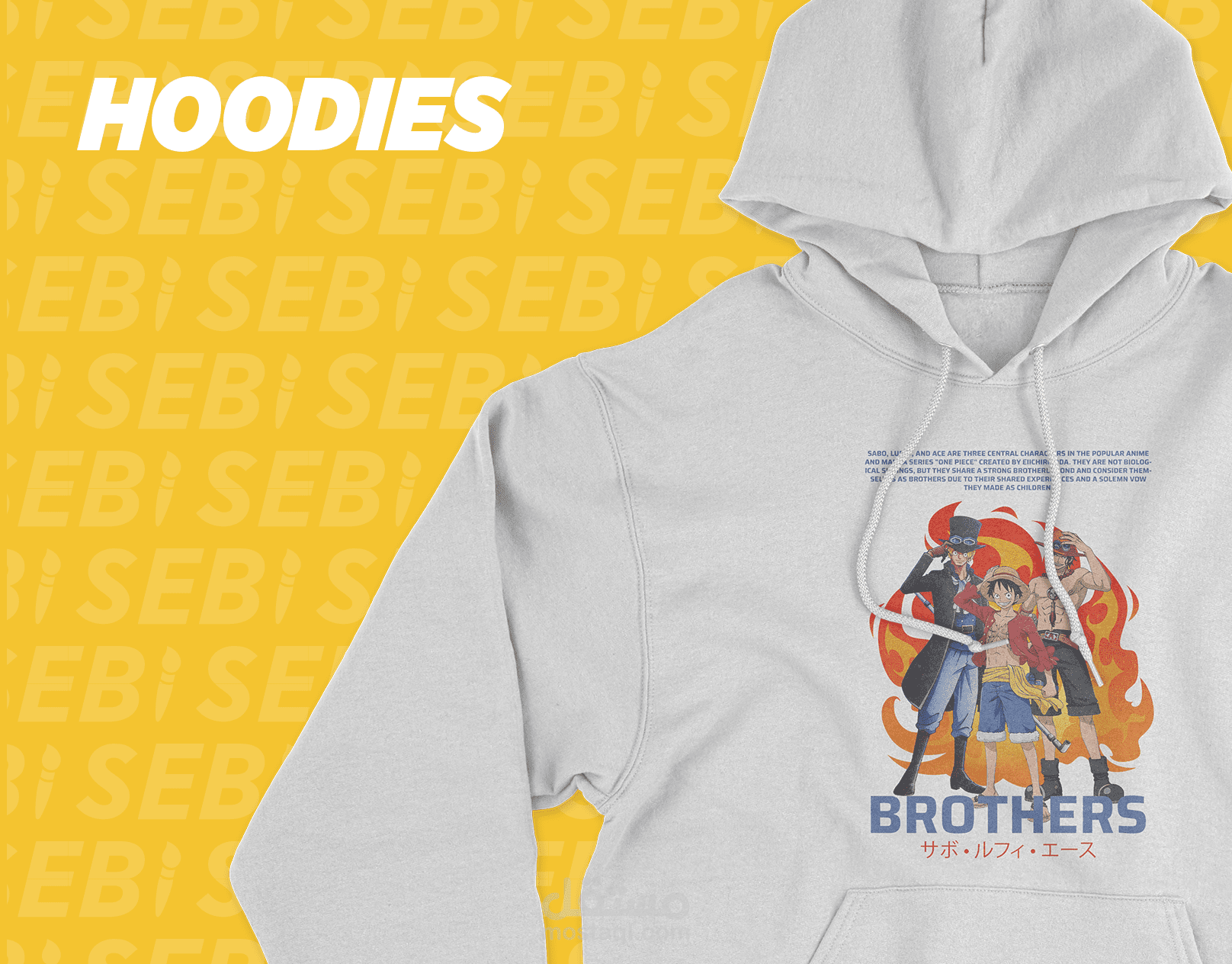 ابدأ رحلتك مع تصميم One Piece الحصري الخاص بنا والذي يظهر الثلاثي الأيقوني: لوفي، صابو، وإيس! ️ انغمس في عالم القراصنة من خلال سلعنا المصممة بعناية، التي تحتفل بروح المغامرة لهؤلاء الأخوة الأسطوريين. هل أنتم جاهزون للإبحار؟ دعونا استكشف تصميم One Piece!