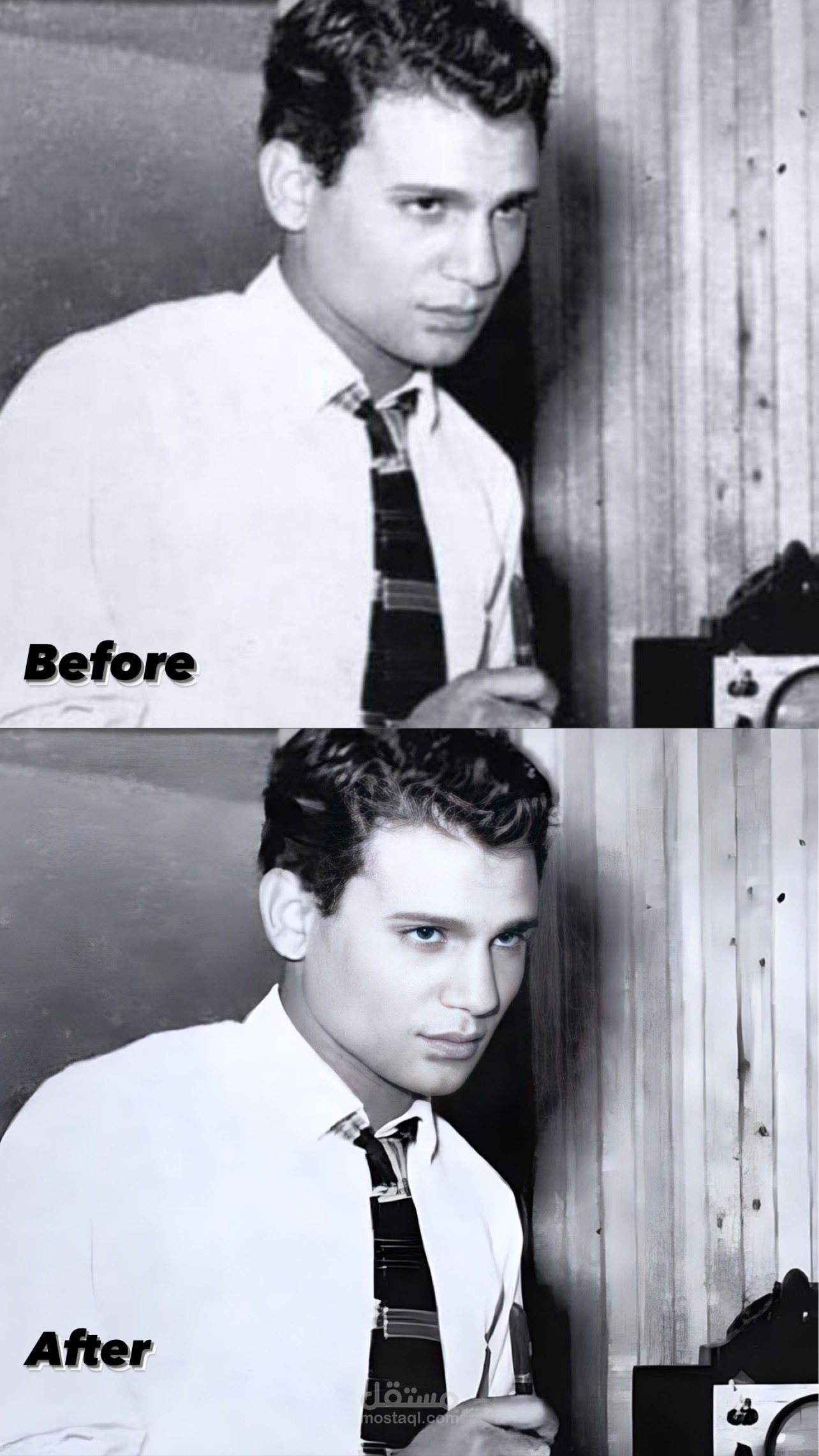 لقد قمت في هذا العمل بتوضيح الصوره حيث كانت الصوره غير واضحه وبدقة سيئه وقمت بتوضيحها وجعل ملامح الشخص واضحه ودقيقة