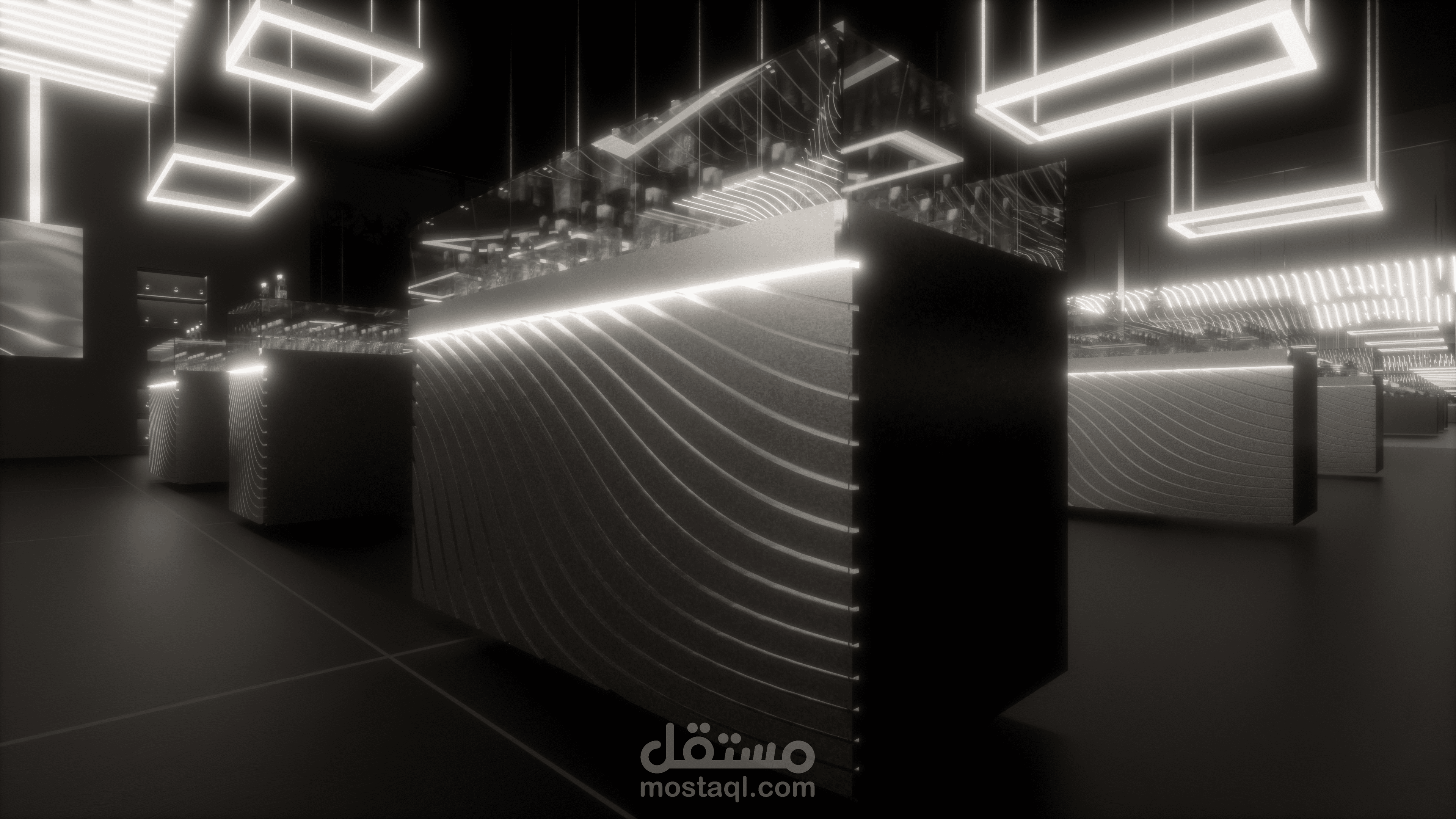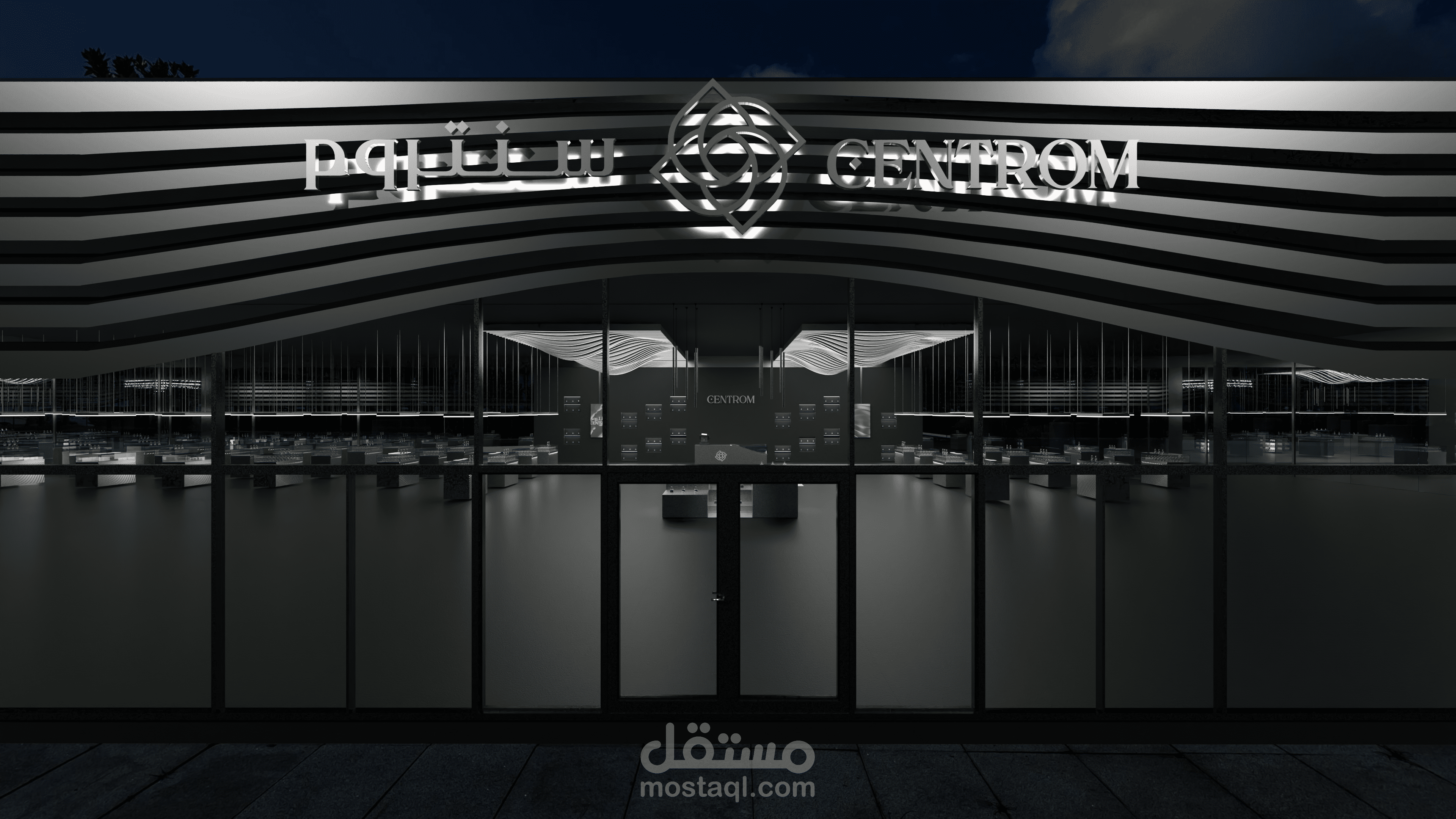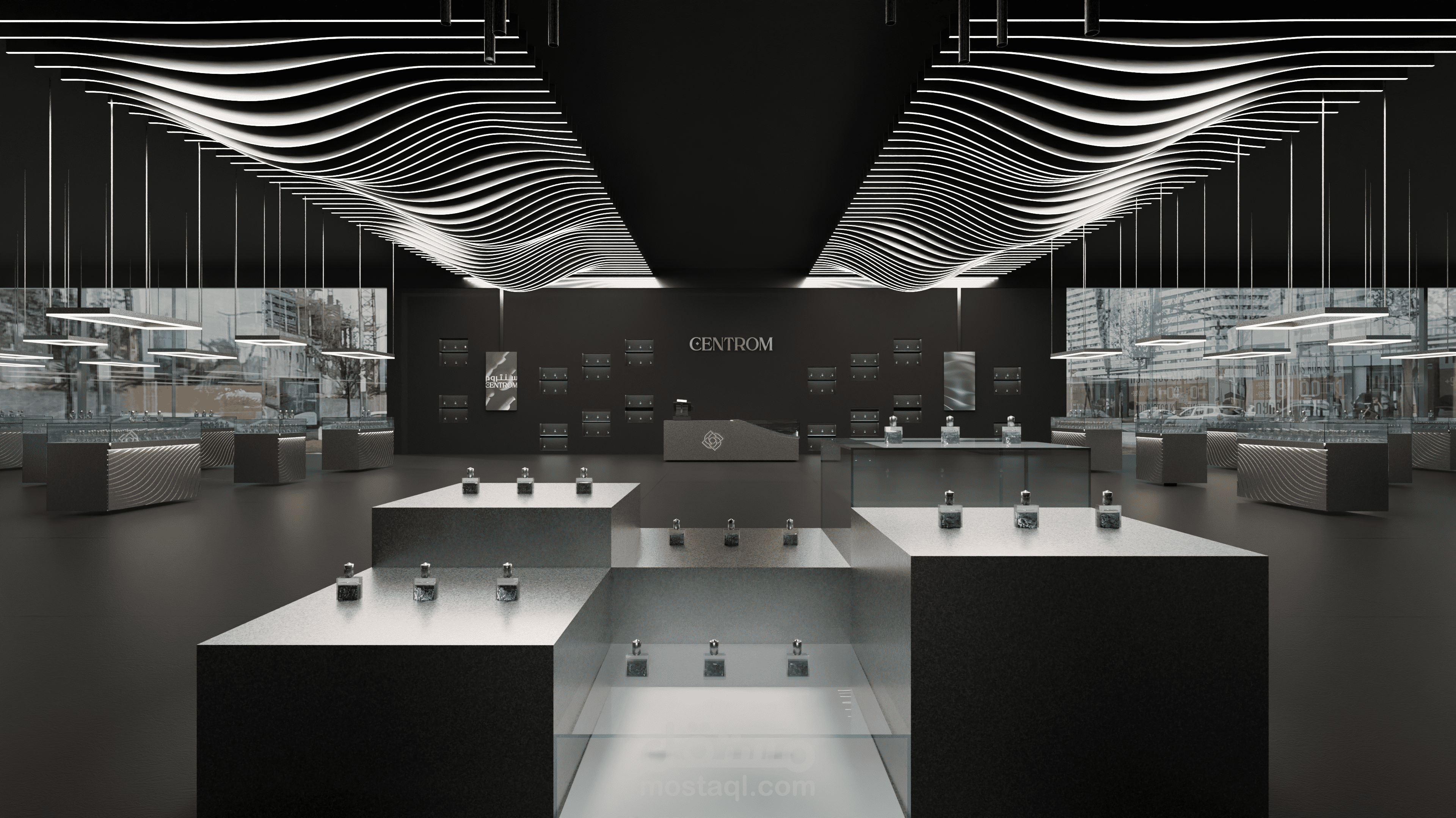 سينتروم - مركز العطور الفاخرة: سينتروم، مفهوم معرض ثوري يقدم مجموعة مختارة من العطور الفريدة والفاخرة من مجموعة متنوعة من العلامات التجارية، كل ذلك تحت سقف واحد. تم تصميم هذا المفهوم لرفع تجربة السوق الحرة التقليدية، وتوفير جو أنيق وراقٍ أكثر لا يقتصر على المطارات. في هذا المشروع، تم تكليفي بالعمل على الجزء الداخلي وتأثيث المنطقة، بالإضافة إلى تصميم واجهة/مدخل لها. بدأت المشروع برسومات يدوية تحولت إلى رسومات فنية ثنائية الأبعاد على أوتوكاد، ثم نمذجة على سكتش أب، وأخيرًا عمل على الرندر باستخدام برنامج بليندر.