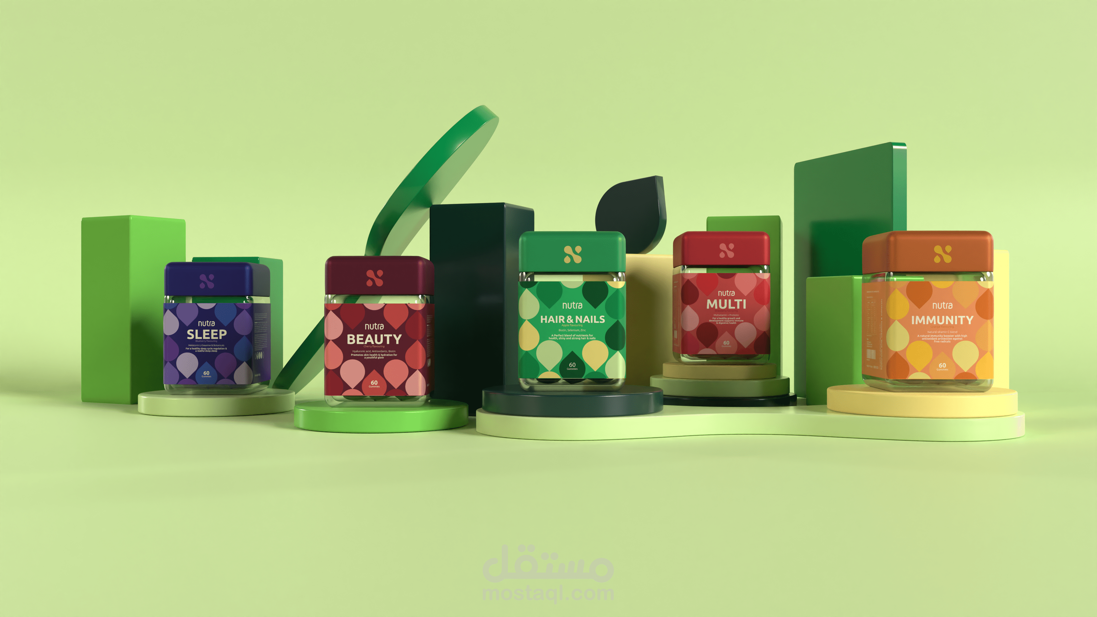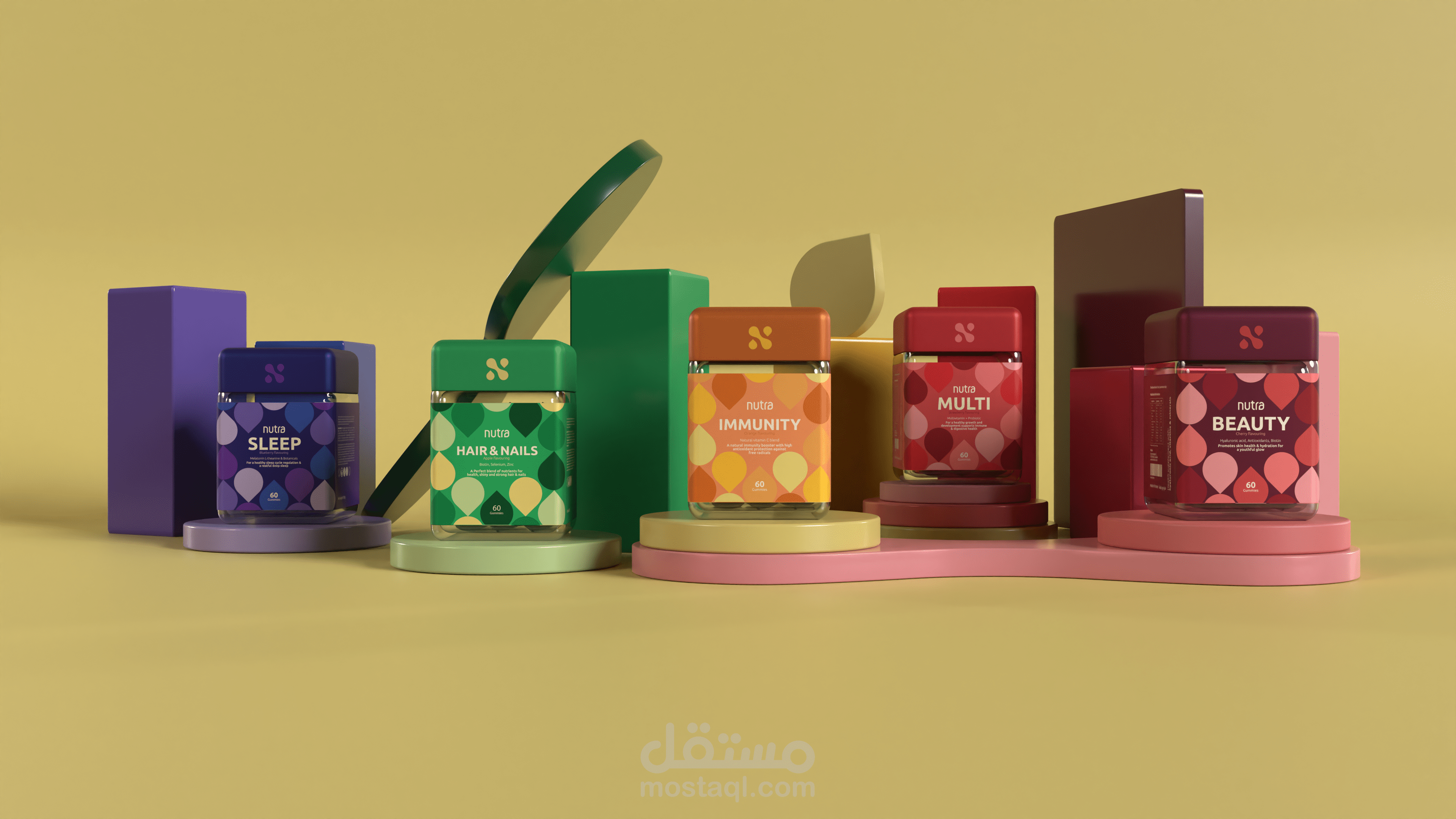 تم تكليفي بتصميم عبوات ثلاثية الأبعاد وإنشاء رسومات تظهر هوية العلامة التجارية. لقد استخدمت برنامج بليندر لتصميم وإنشاء الرندرات.