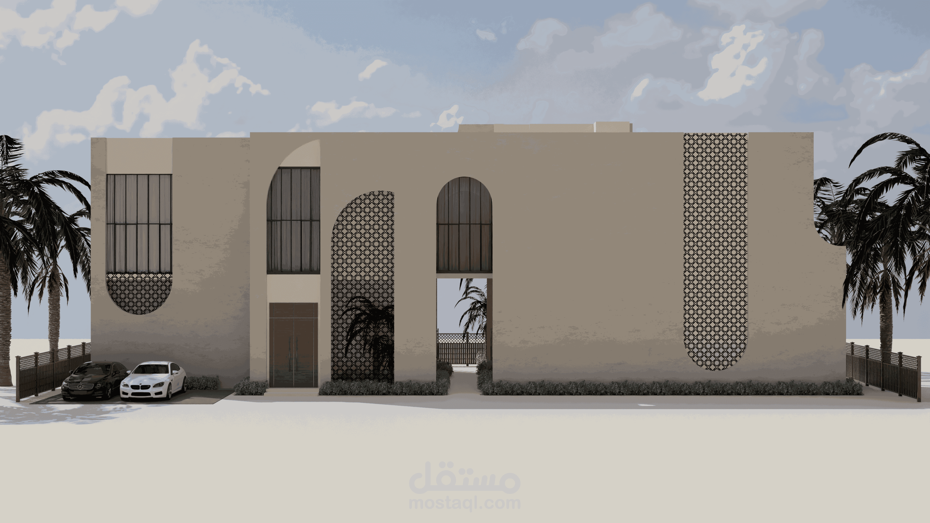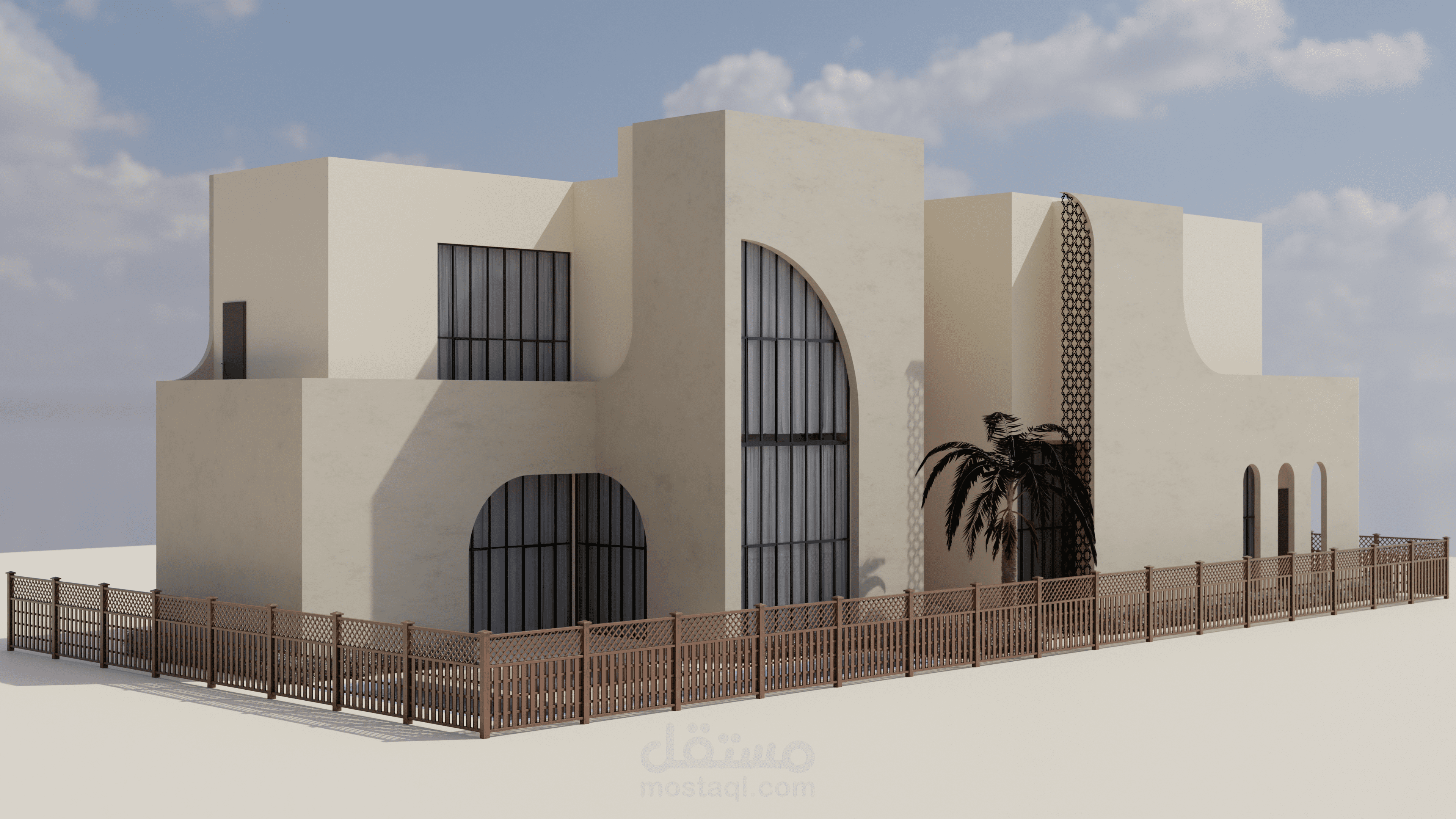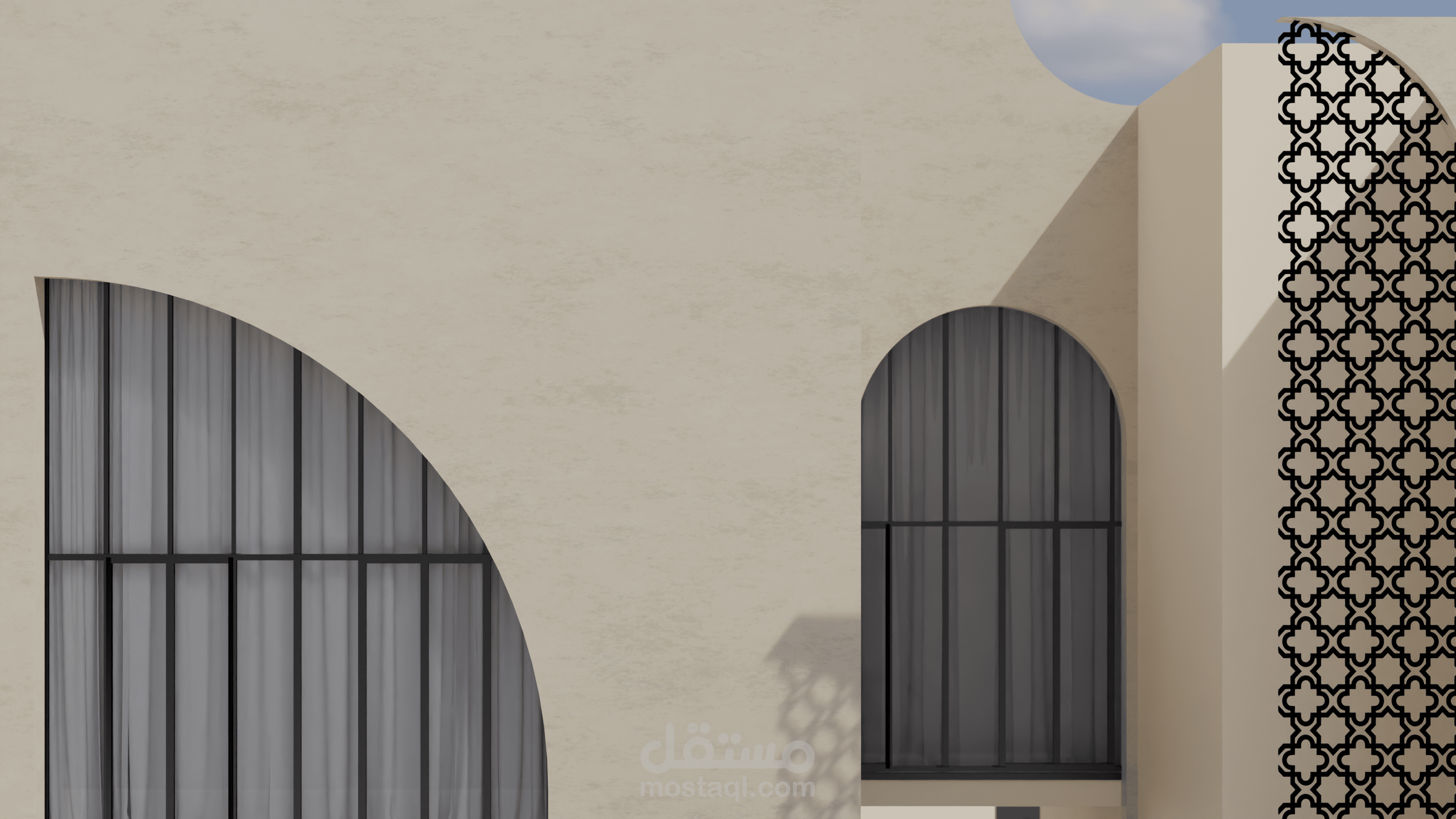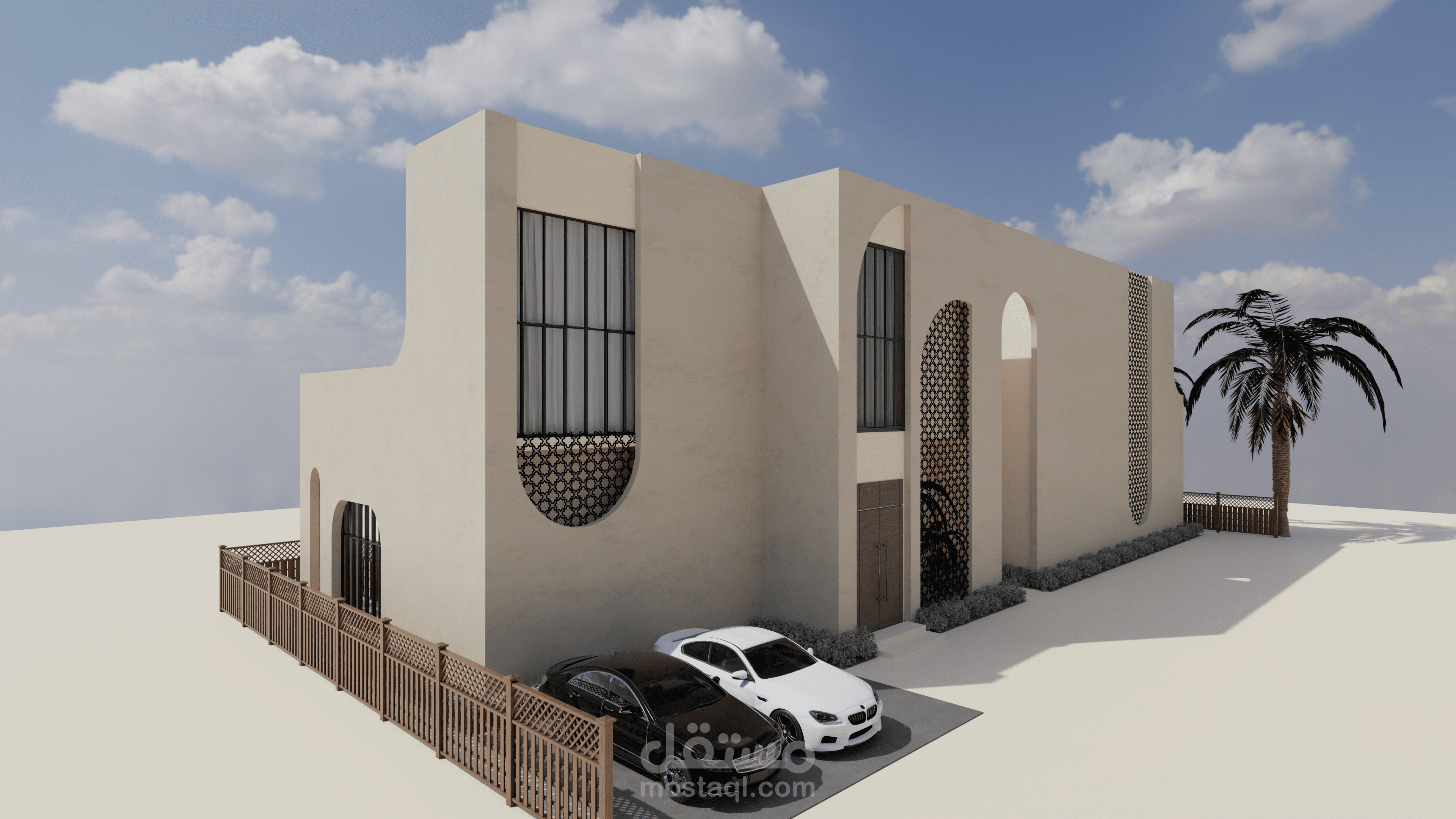 منزل المستقبل هو مشروع يهدف إلى توفير منزل لعائلة إماراتية نموذجية يلبي جميع احتياجاتها ويكون مستدامًا أيضًا. يستند التصميم إلى الهياكل الإسلامية والبيوت العربية بطريقة حديثة لمنح شعورًا دافئًا ولعكس التقاليد في المبنى. قمت بإعداد رسومات يدوية للحصول على التصاميم الأولية، ثم استخدمت أوتوكاد لرسم الخطط التقنية، وبعد ذلك استخدمت سكتش أب للنمذجة وبليندر لتصدير الرندرات. ثم قمت بتصميم الملصقات باستخدام فوتوشوب.