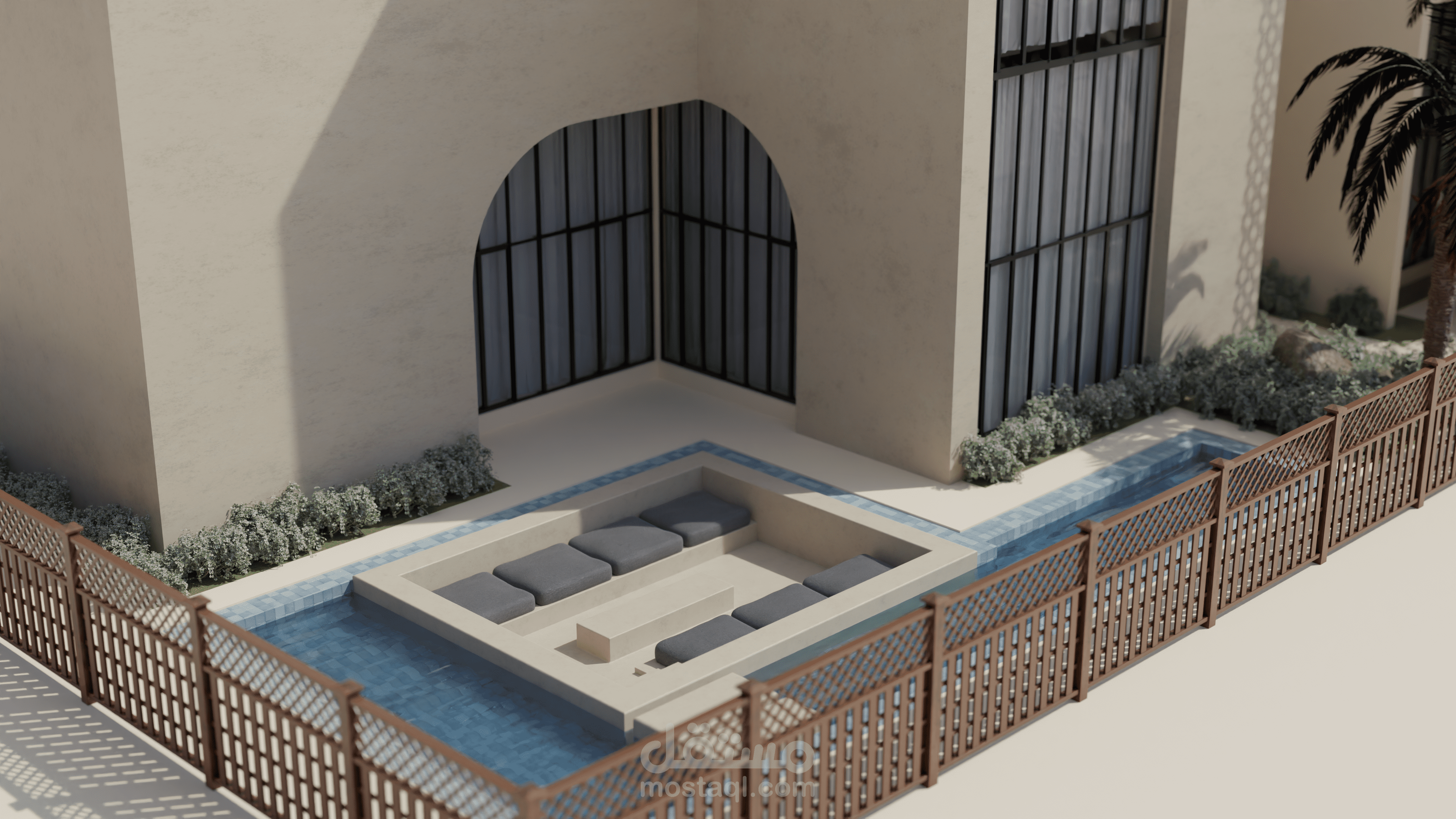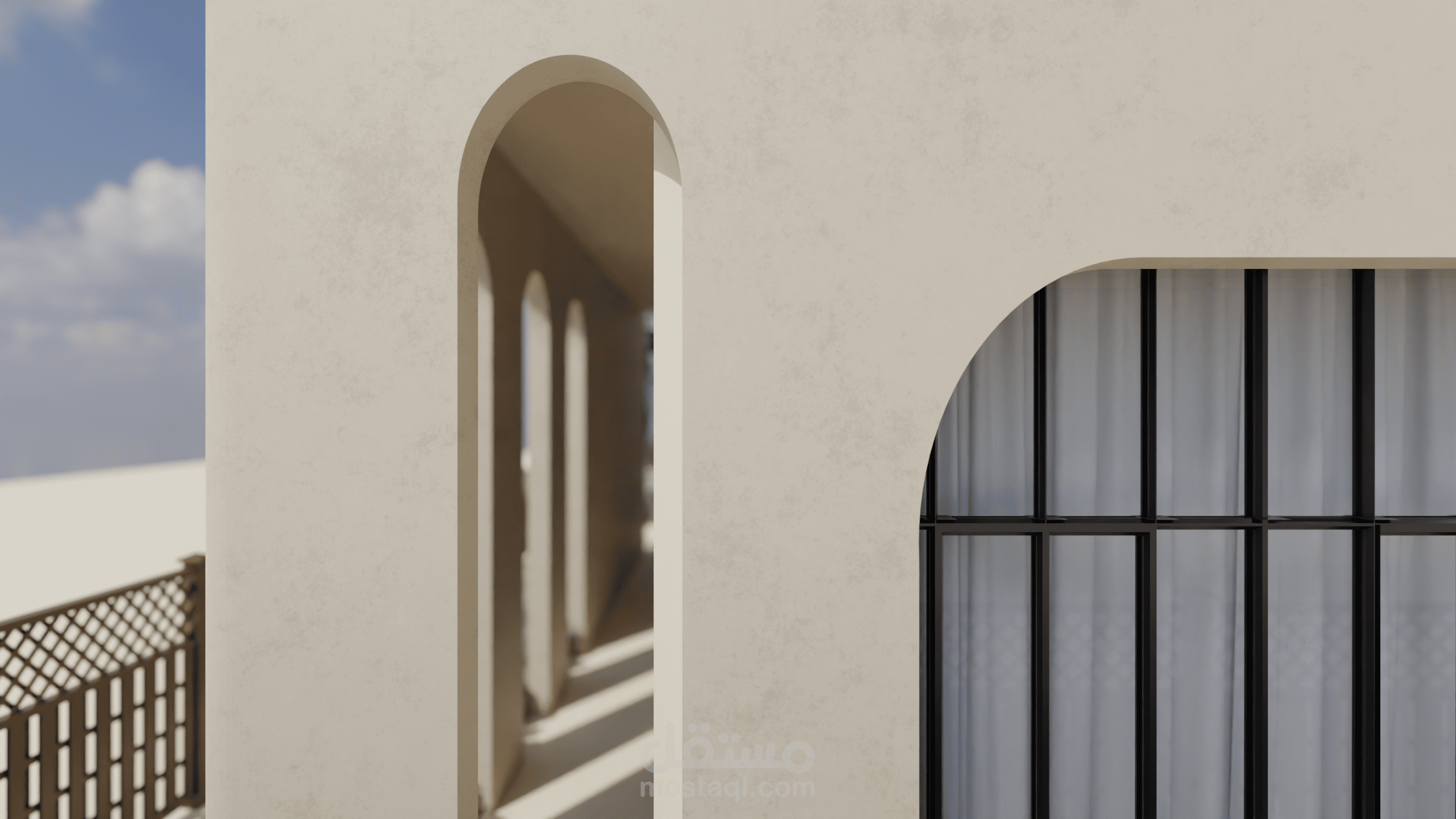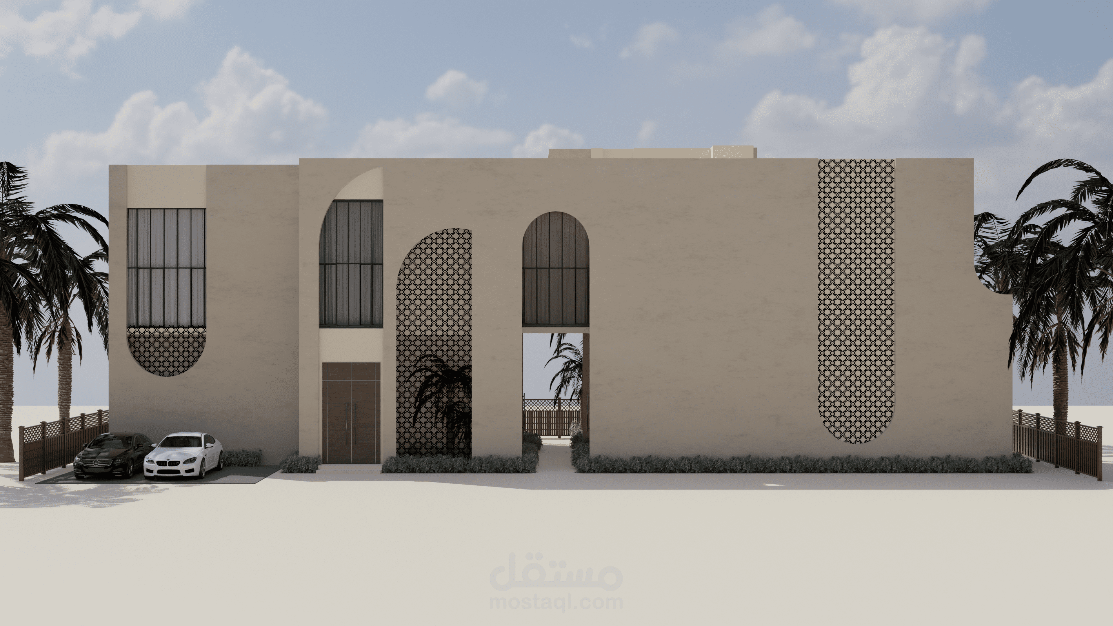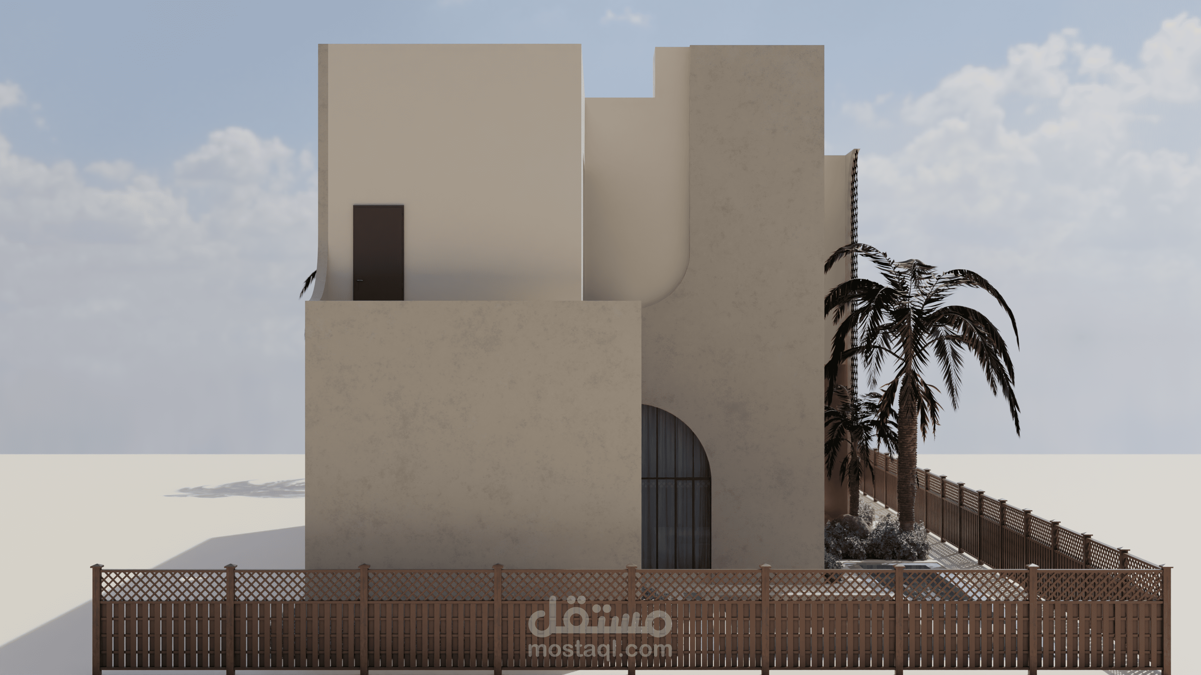 منزل المستقبل هو مشروع يهدف إلى توفير منزل لعائلة إماراتية نموذجية يلبي جميع احتياجاتها ويكون مستدامًا أيضًا. يستند التصميم إلى الهياكل الإسلامية والبيوت العربية بطريقة حديثة لمنح شعورًا دافئًا ولعكس التقاليد في المبنى. قمت بإعداد رسومات يدوية للحصول على التصاميم الأولية، ثم استخدمت أوتوكاد لرسم الخطط التقنية، وبعد ذلك استخدمت سكتش أب للنمذجة وبليندر لتصدير الرندرات. ثم قمت بتصميم الملصقات باستخدام فوتوشوب.