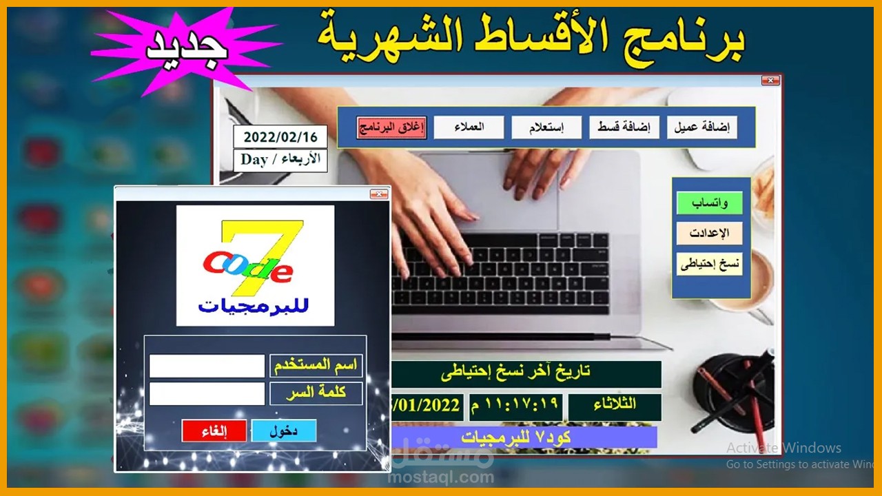 1-شاشة إدخال بيانات العملاء و إضافة قسط جديد