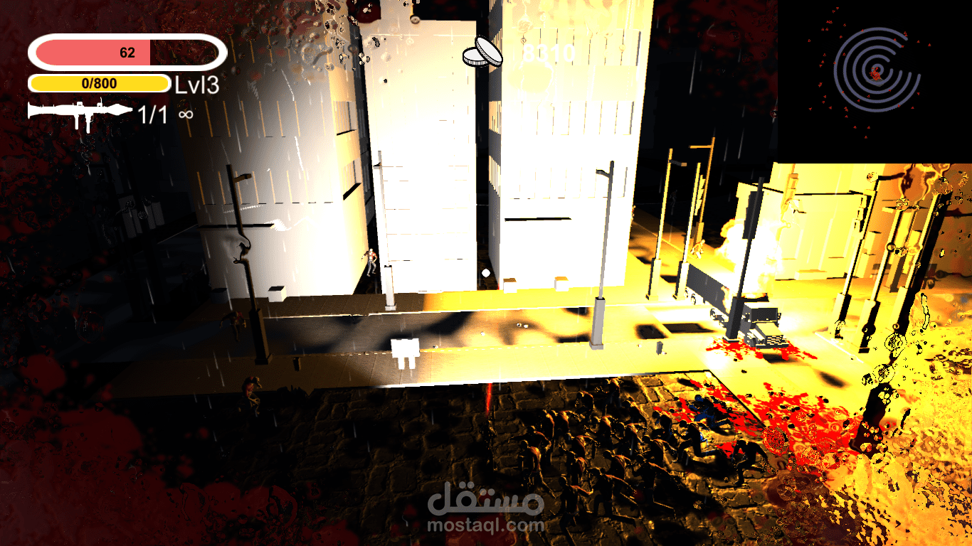 APOZOMBIE هي لعبى Top Down Shooter وهي أول لعبة قمت ببنائها من الصفر وتتضمن: