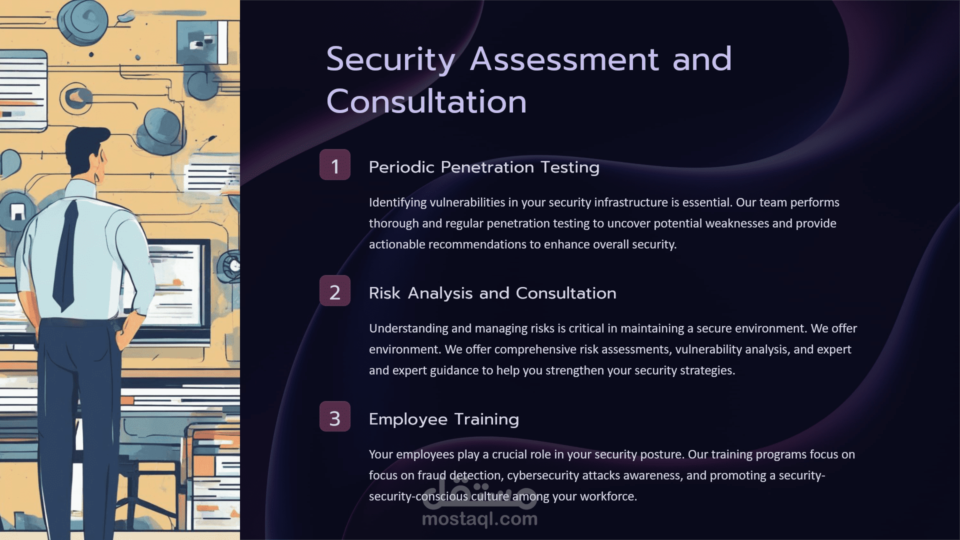 •تعاون استراتيجي: نعمل بشكل وثيق مع عملائنا لتقديم حلول أمان مستدامة.